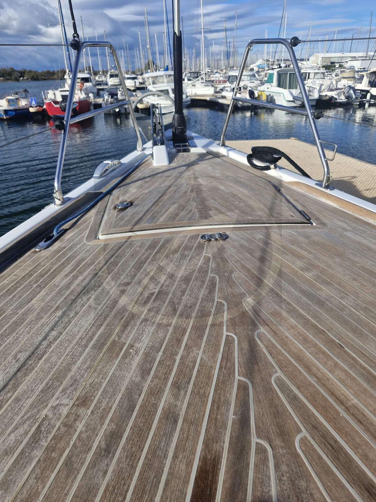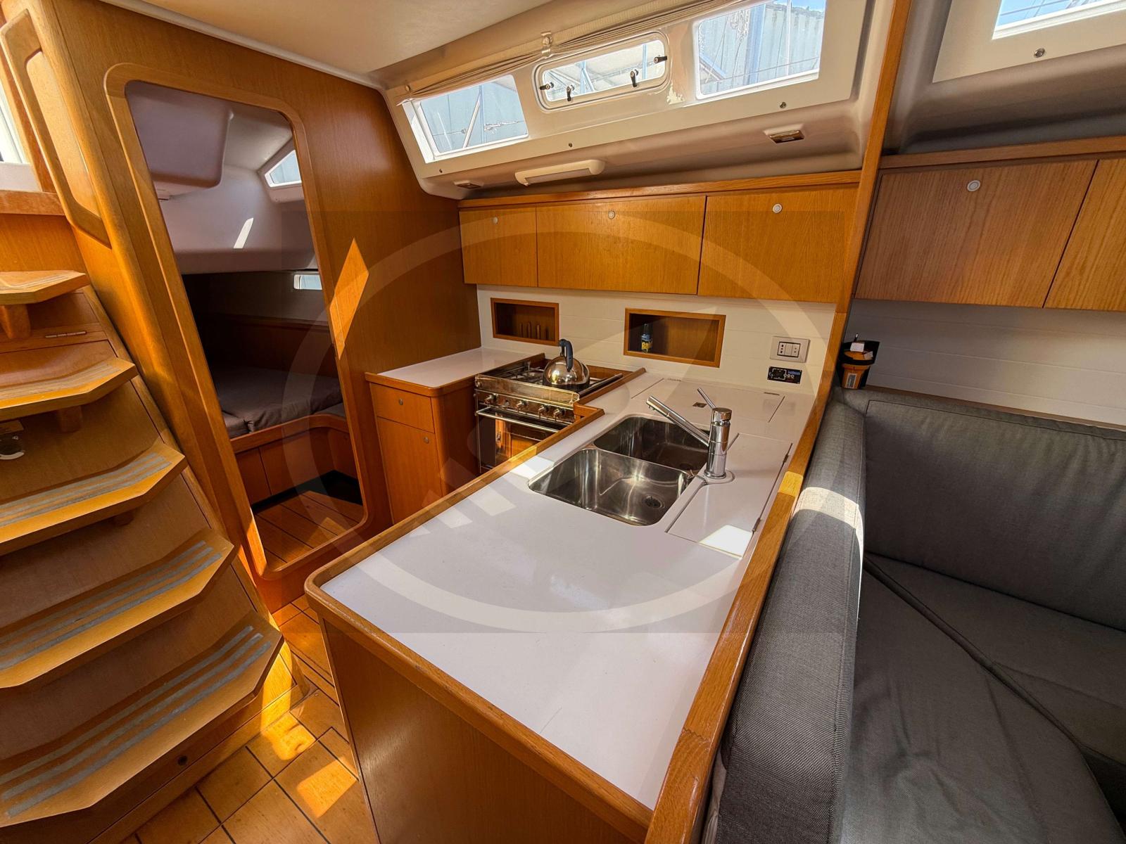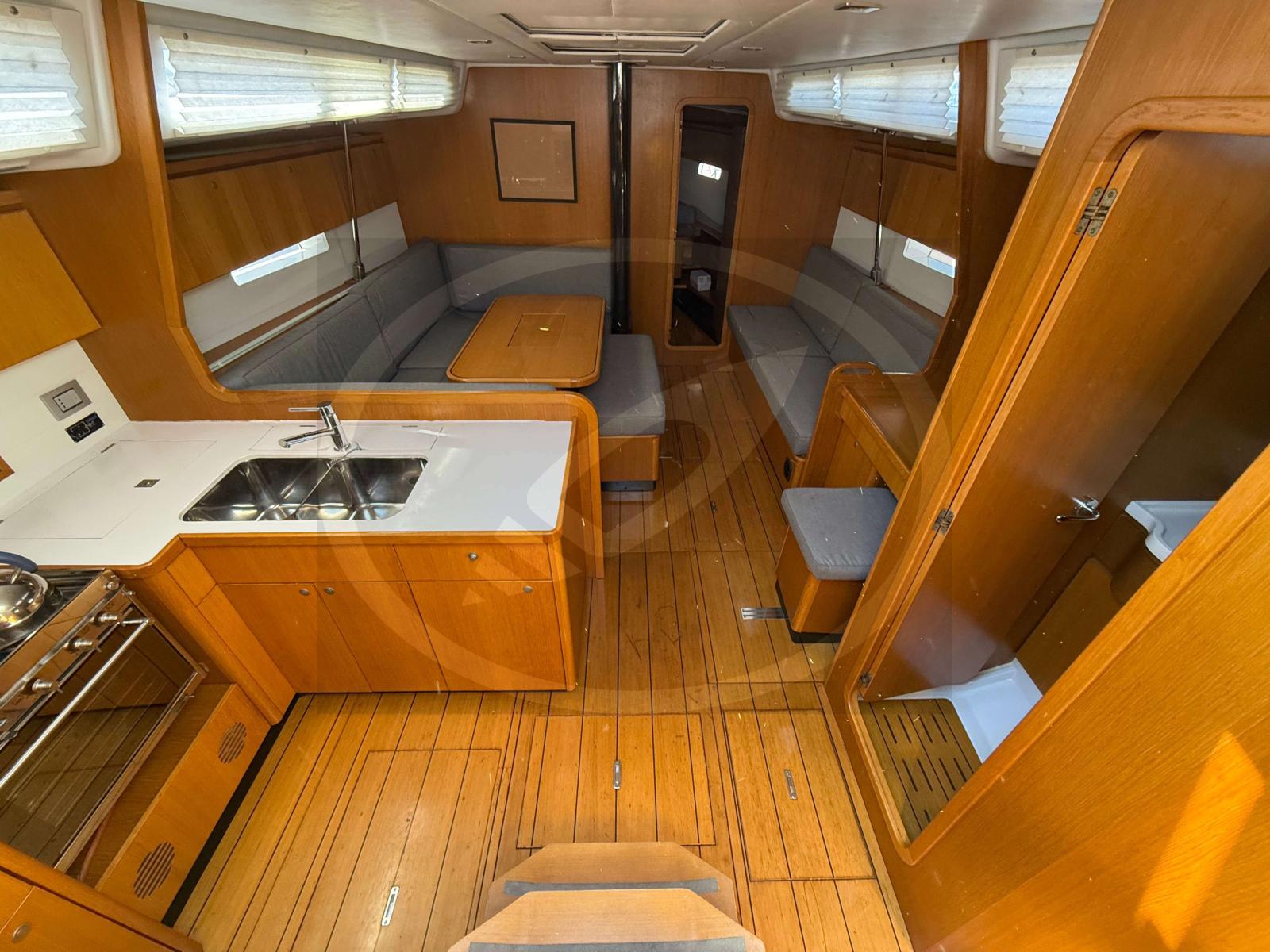 À l’intérieur, les finitions haut de gamme et la luminosité naturelle créent une atmosphère chaleureuse et accueillante. Les aménagements, pensés avec soin, offrent de vastes espaces de vie : une grande cabine propriétaire, une cuisine fonctionnelle, un carré convivial et des rangements généreux pour de longues croisières en toute sérénité.