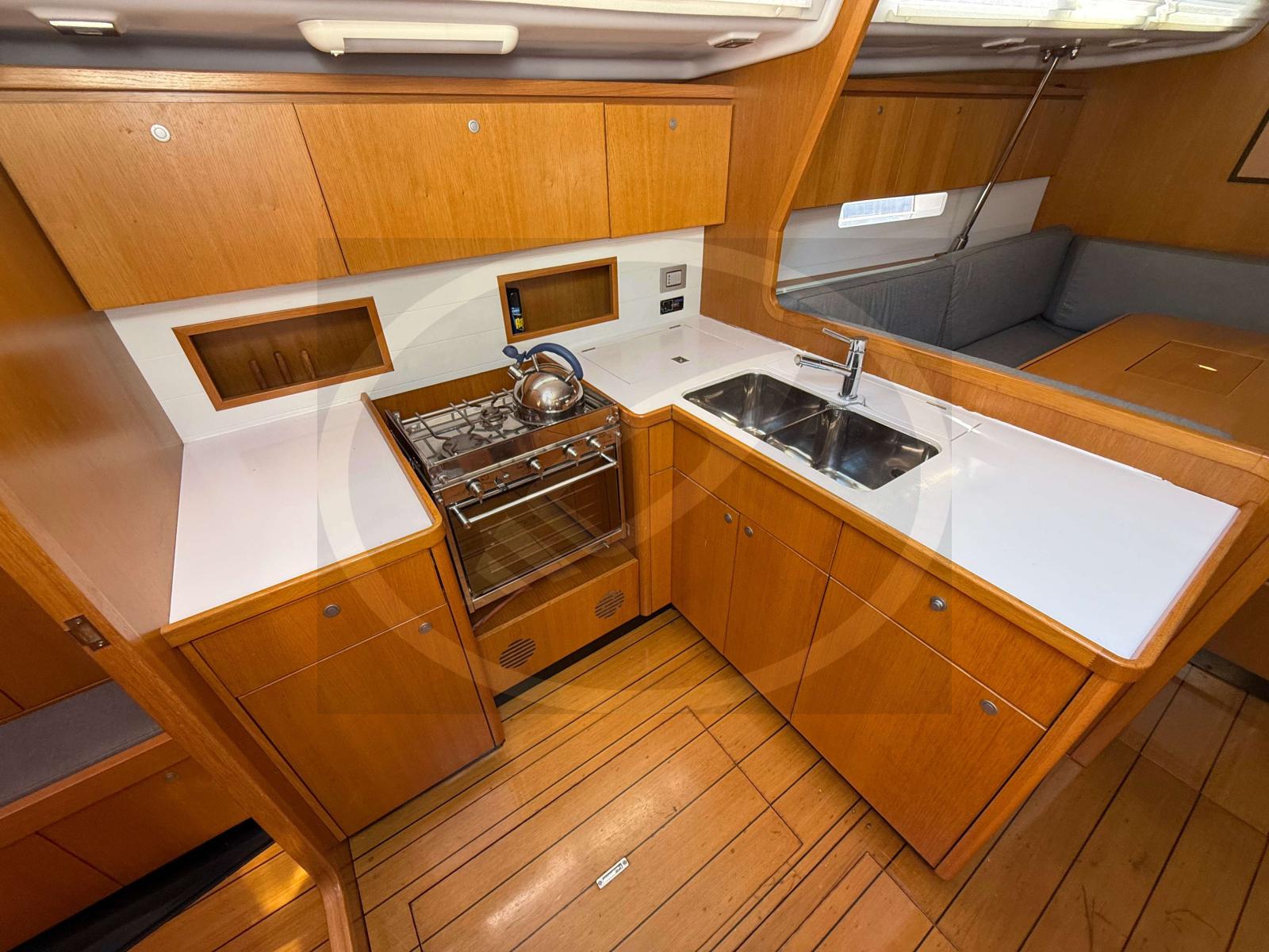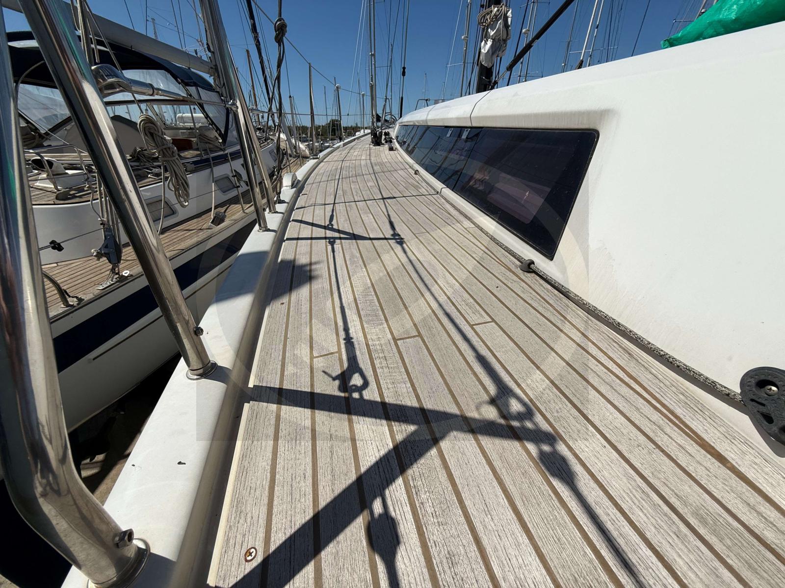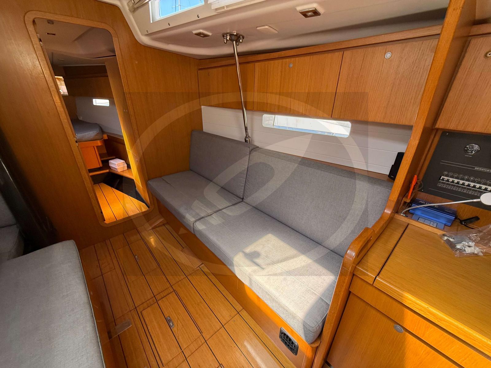 À l’intérieur, les finitions haut de gamme et la luminosité naturelle créent une atmosphère chaleureuse et accueillante. Les aménagements, pensés avec soin, offrent de vastes espaces de vie : une grande cabine propriétaire, une cuisine fonctionnelle, un carré convivial et des rangements généreux pour de longues croisières en toute sérénité.