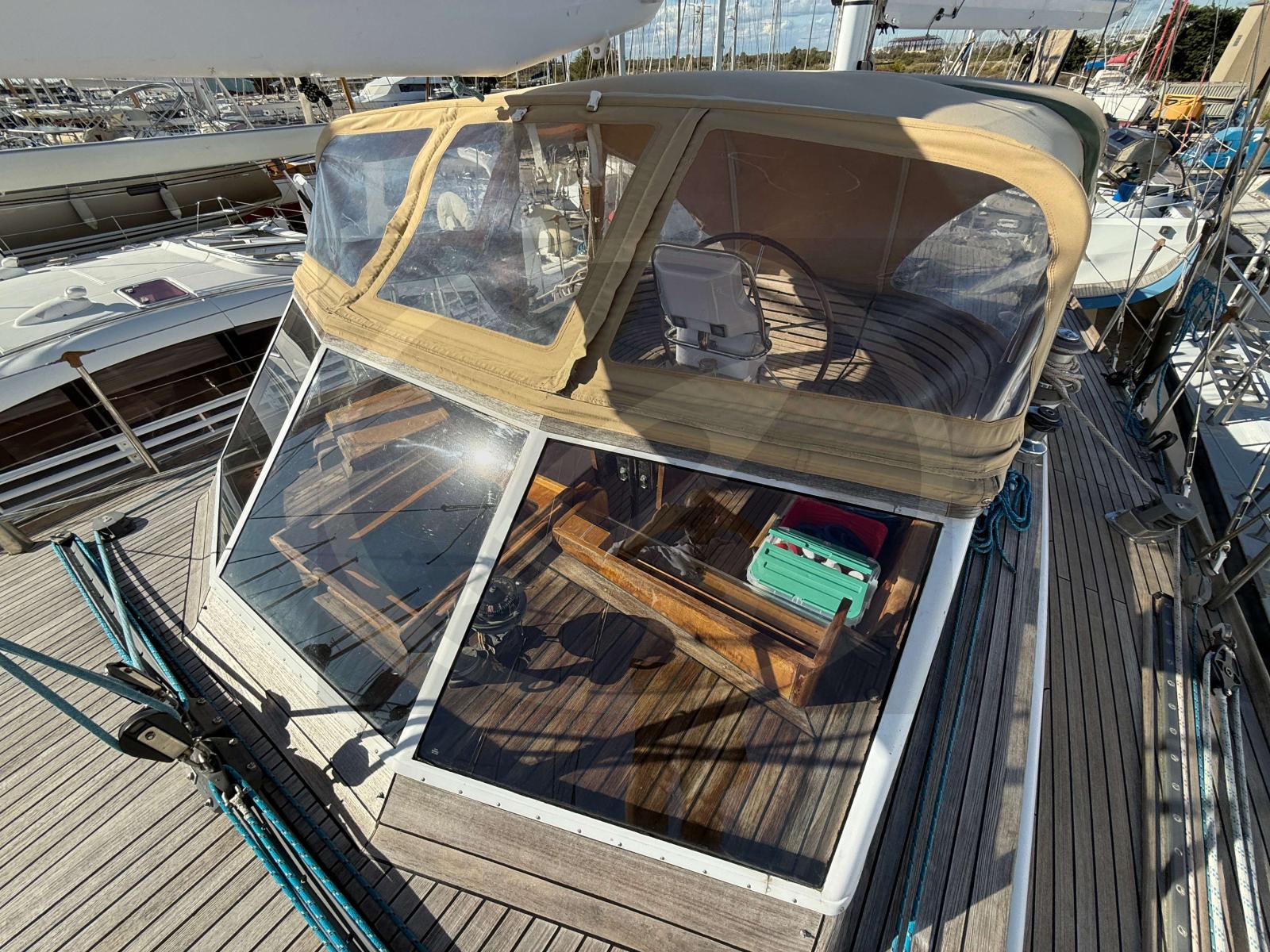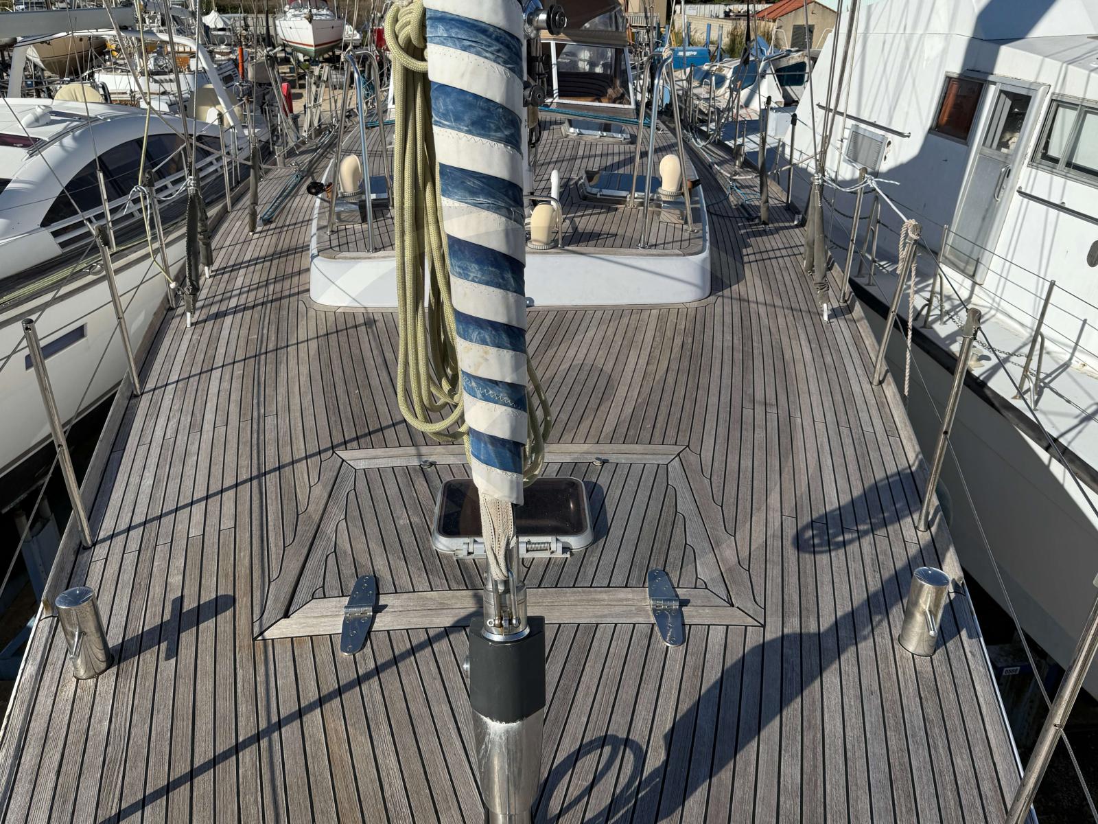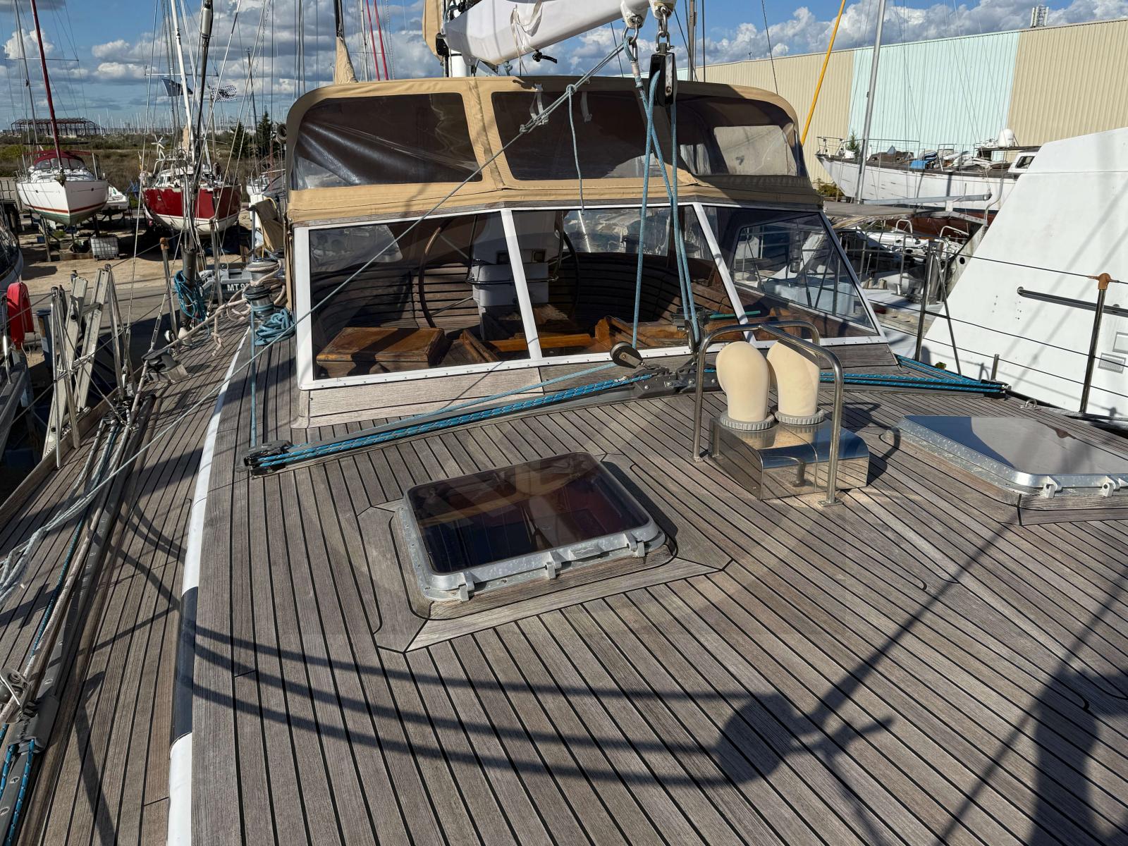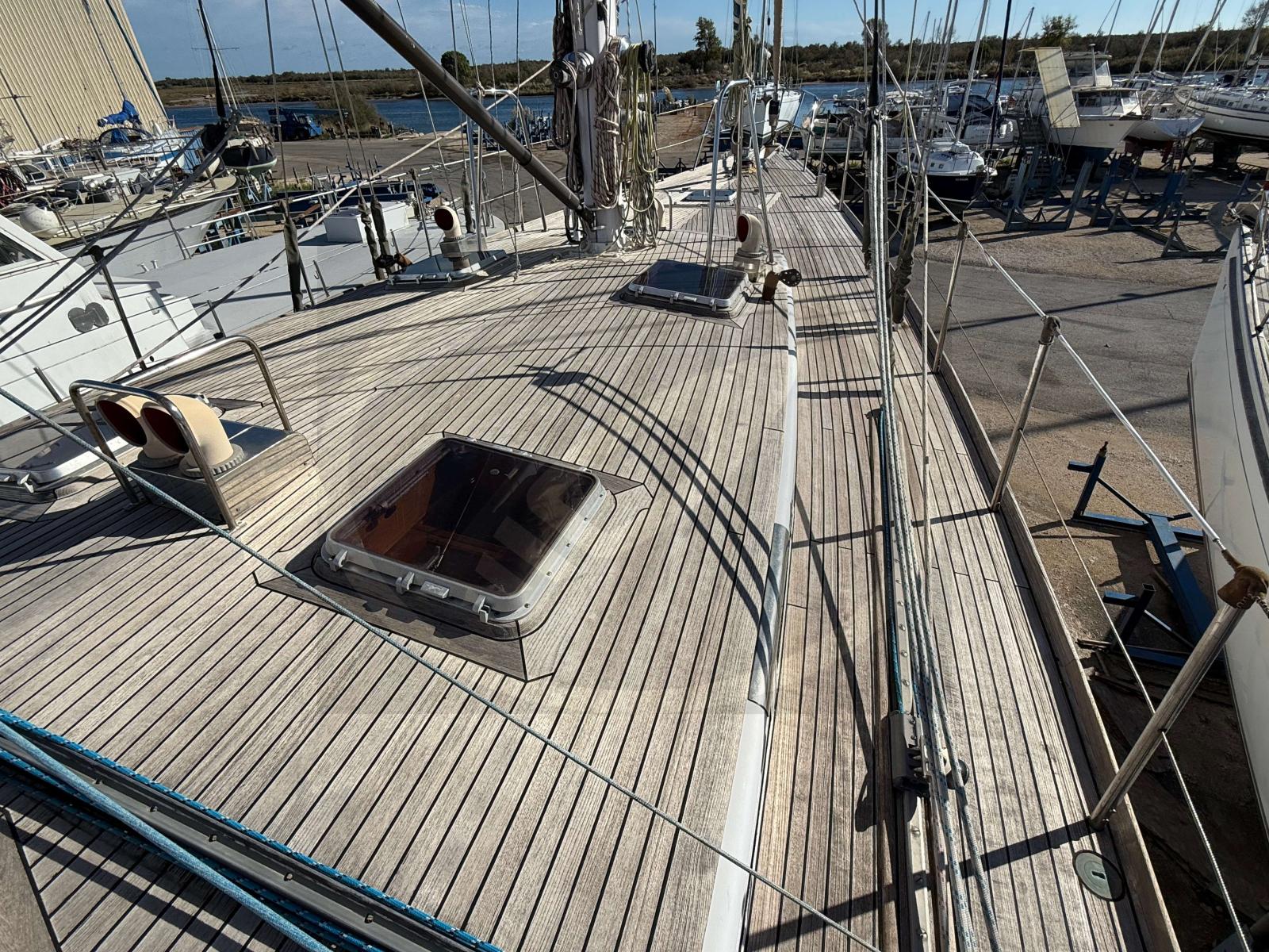 Grâce à son gréement en ketch, il offre une navigation souple et équilibrée, permettant de parcourir les mers en toute sérénité. Sa coque et son pont en acier apportent une rigidité exceptionnelle, idéale pour les navigations hauturières. L'espace extérieur s'organise autour d'un cockpit très protégé, facilitant les manœuvres même en équipage réduit.