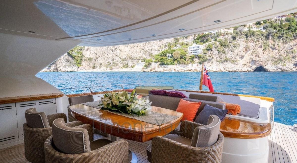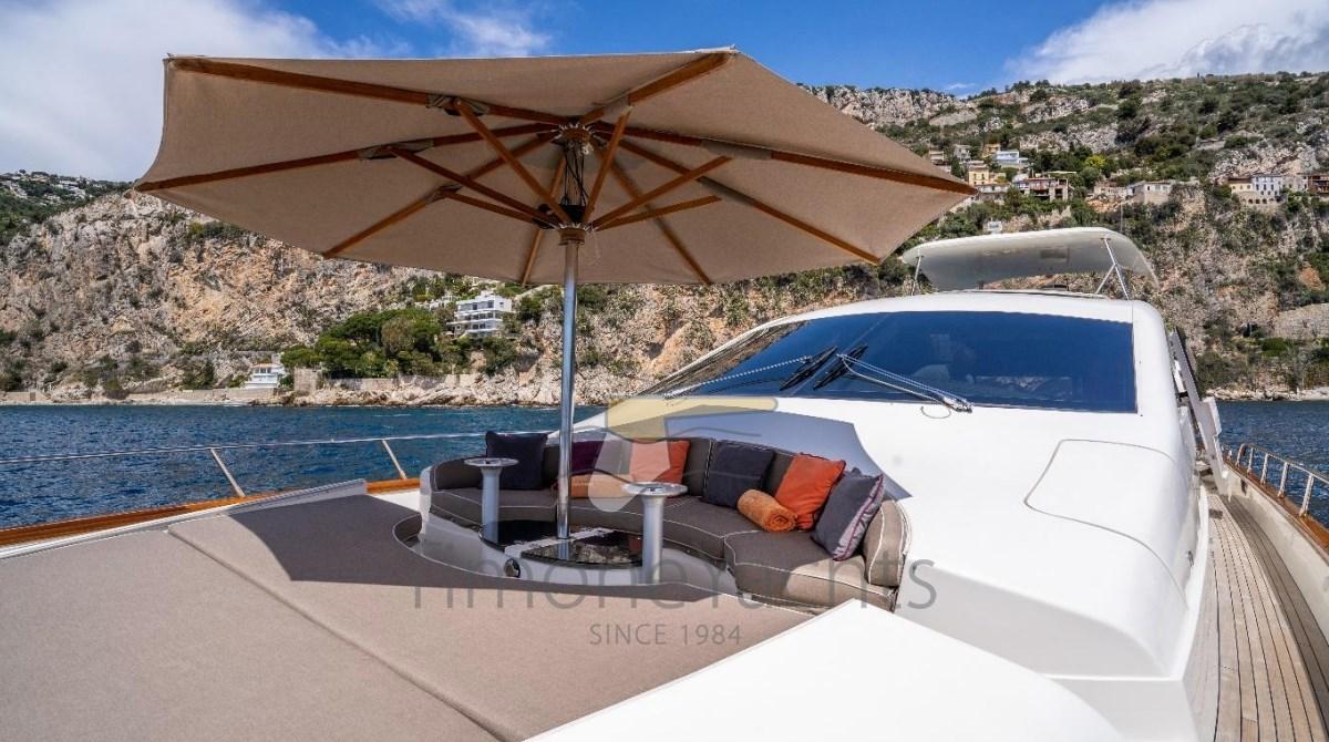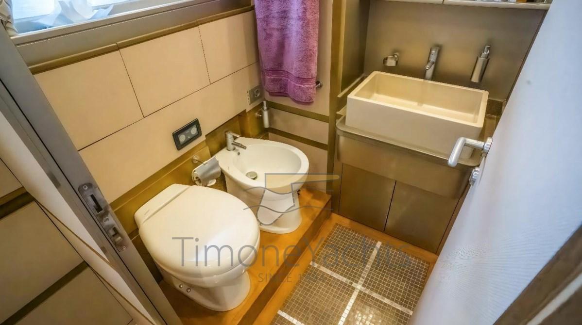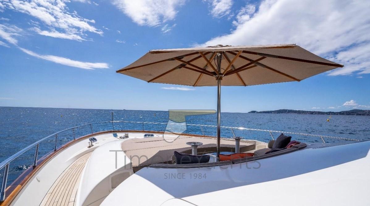 Alarme gaz, Alarme moteur, Alarme de pompe de cale, Alternateur, Eau sous pression, Passavant en teck, Double barre à roue, Flaps hydrauliques, Garage à annexe, Hard top, Éclairage de courtoisie, Passerelle, Pont en teck, Porte latérale, Porte latérale, Cockpit en teck, Prise de quai, Connexion eau sous pression à quai, Annexe (Avion 2 stroke 30 hp), Corne, Winch électrique arrière, Winch électrique avant.