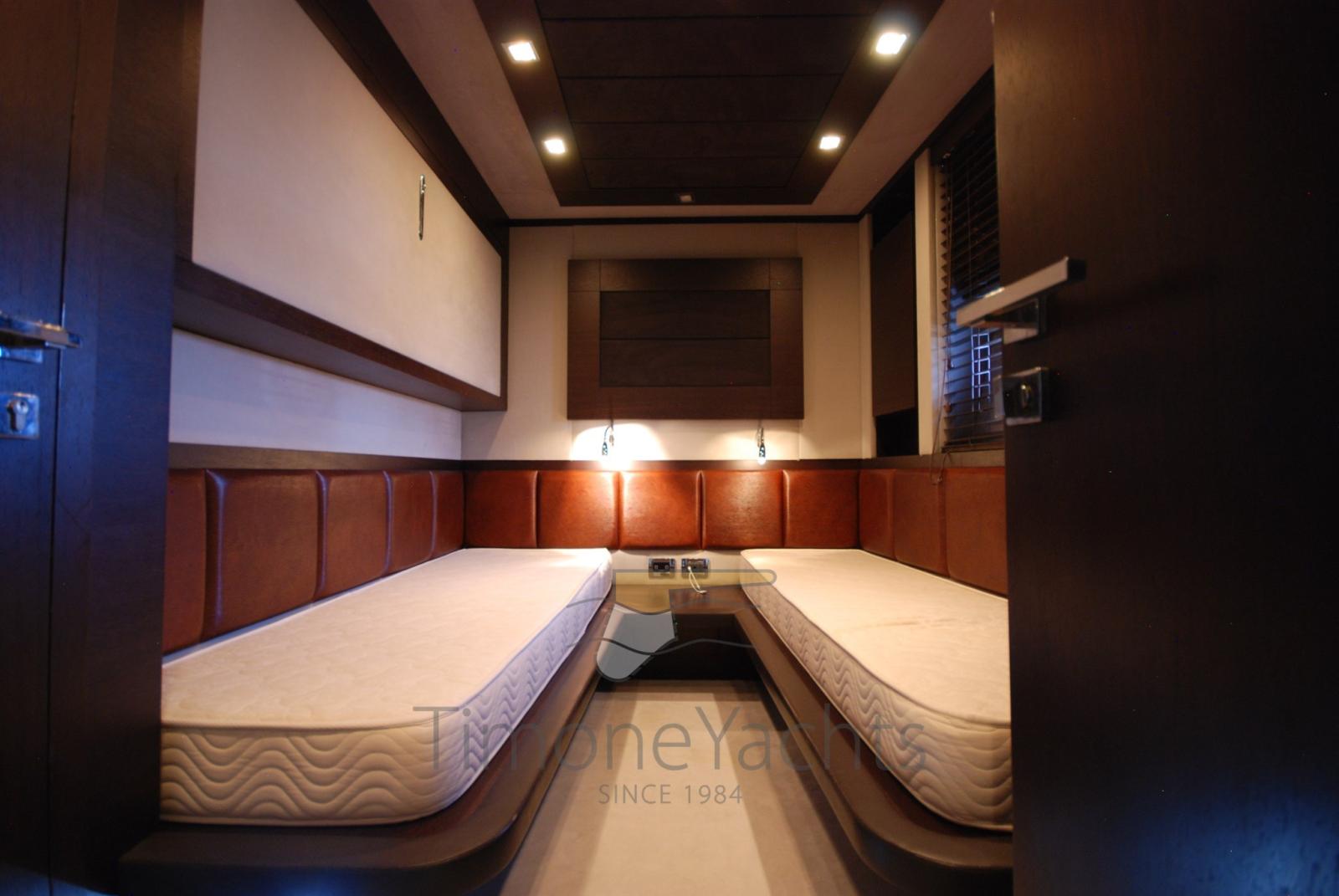 Alarme gaz, Alarme moteur, Eau sous pression, Passavant en teck, Douche de cockpit, Phare de poursuite, Flaps hydrauliques, Garage à annexe, Hard top, Indicateurs de flaps, Lavage de chaine, Passerelle, Porte latérale, Cockpit en teck, Prise de quai, Connexion eau sous pression à quai, Guindeau électrique, table de cockpit, Corne, Winch électrique arrière, Winch électrique avant.