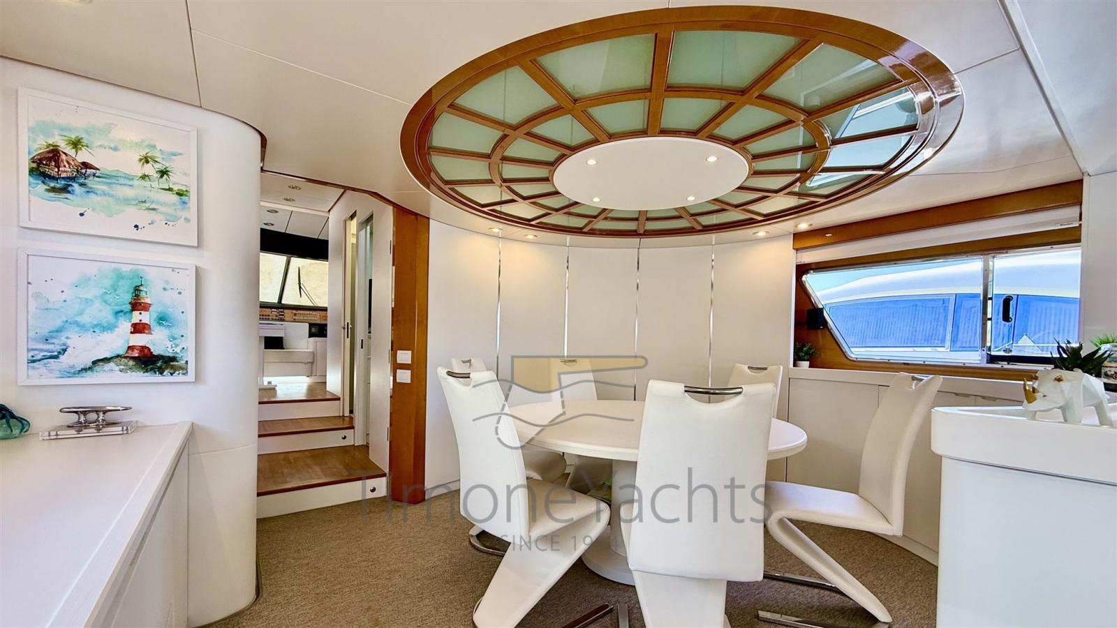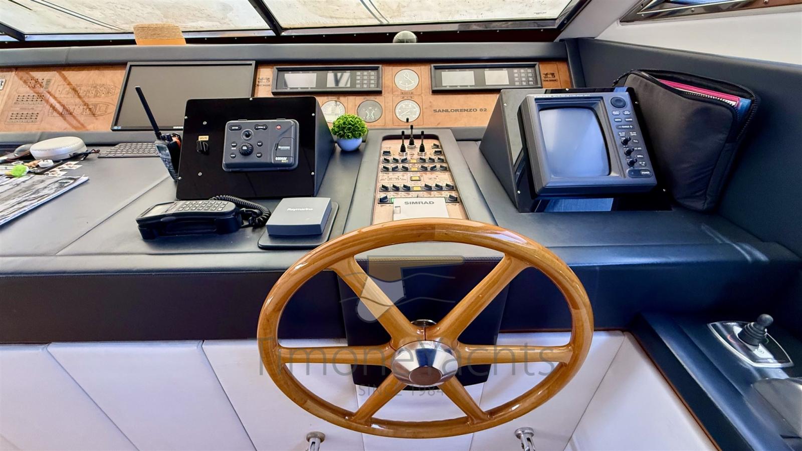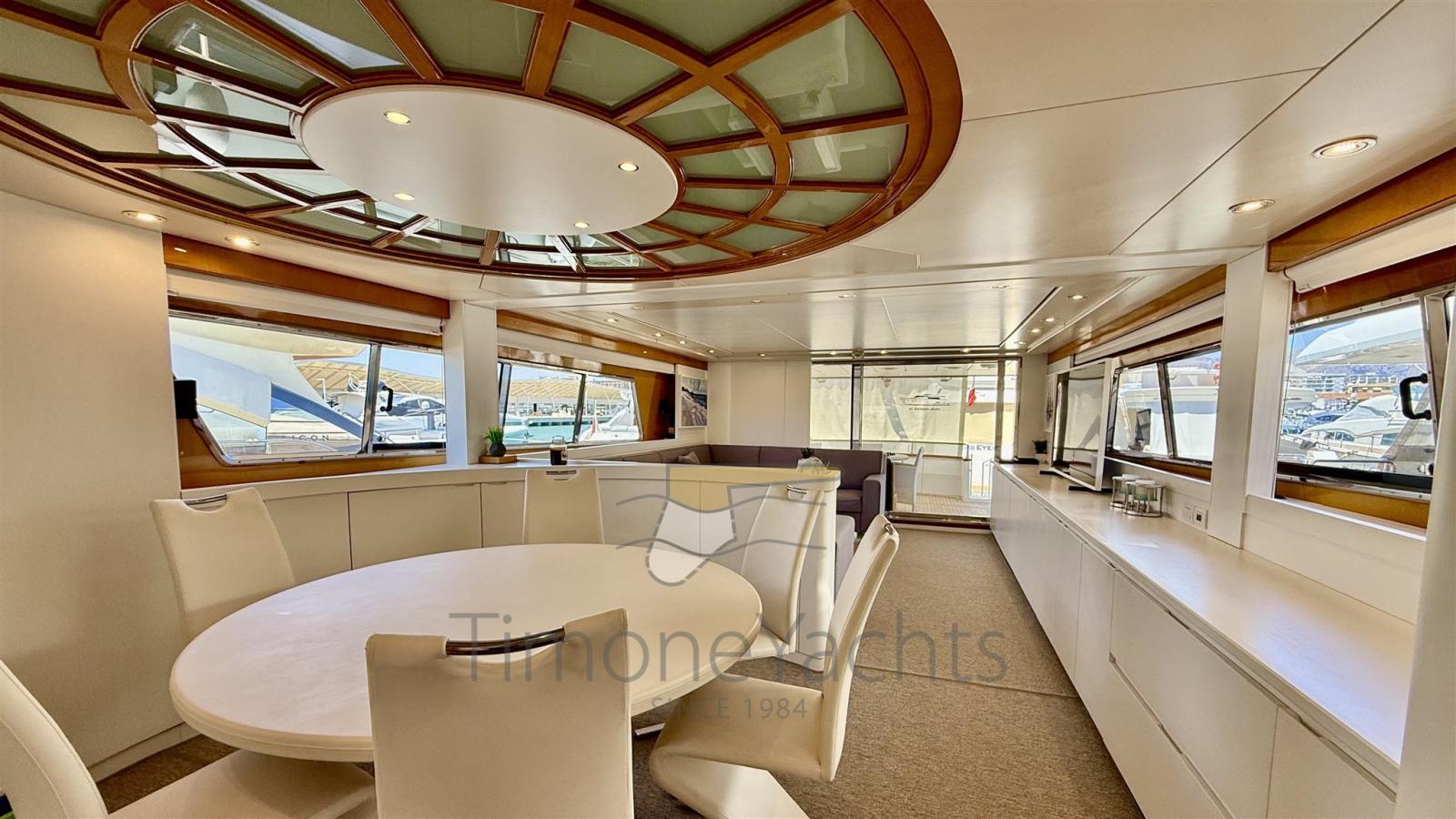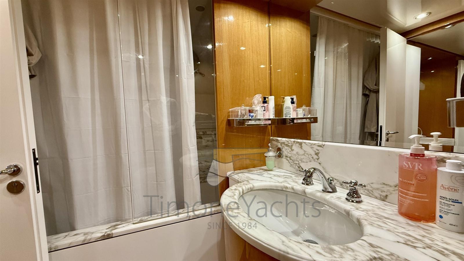 Alarme de pompe de cale, Ouverture du compartiment moteur électrique, Eau sous pression, Passavant en teck, Douche de cockpit, Double barre à roue, Phare de poursuite, Flaps hydrauliques (N°2), Grue de flybridge, Extincteur(s) fixe(s), Lavage de chaine, Passerelle, Plateforme arrière, Pompe de cale automatique, Pont en teck, Porte latérale, Porte latérale, Cockpit en teck, Onduleur, Rollbar, Guindeau électrique, Echelle de bain, Selles pour Annexe, table de cockpit, Corne, Winch électrique arrière.