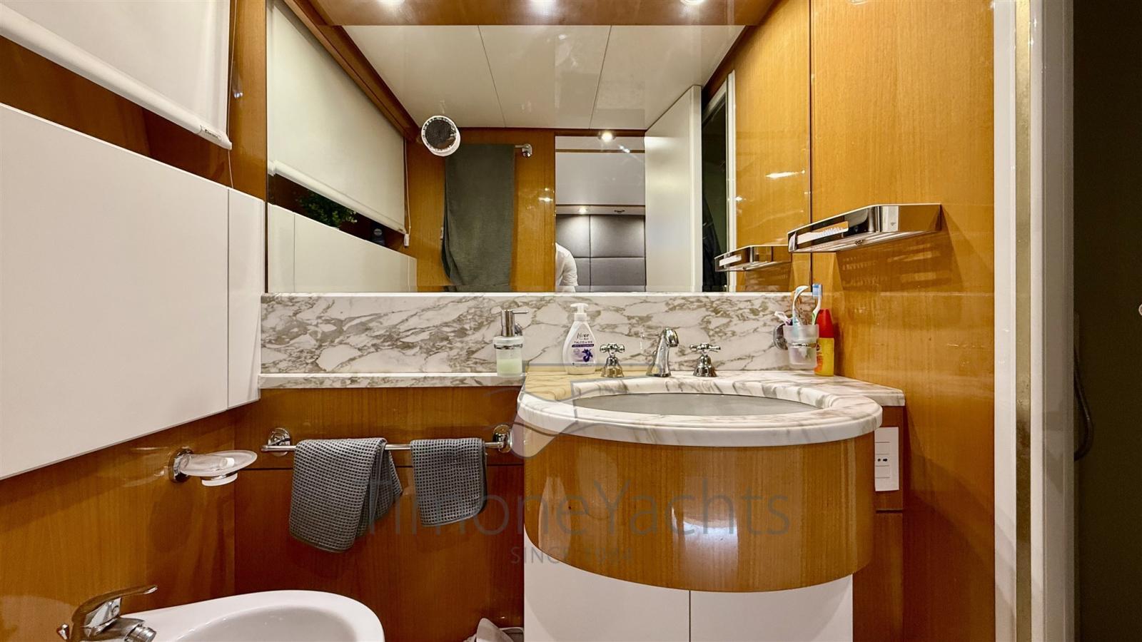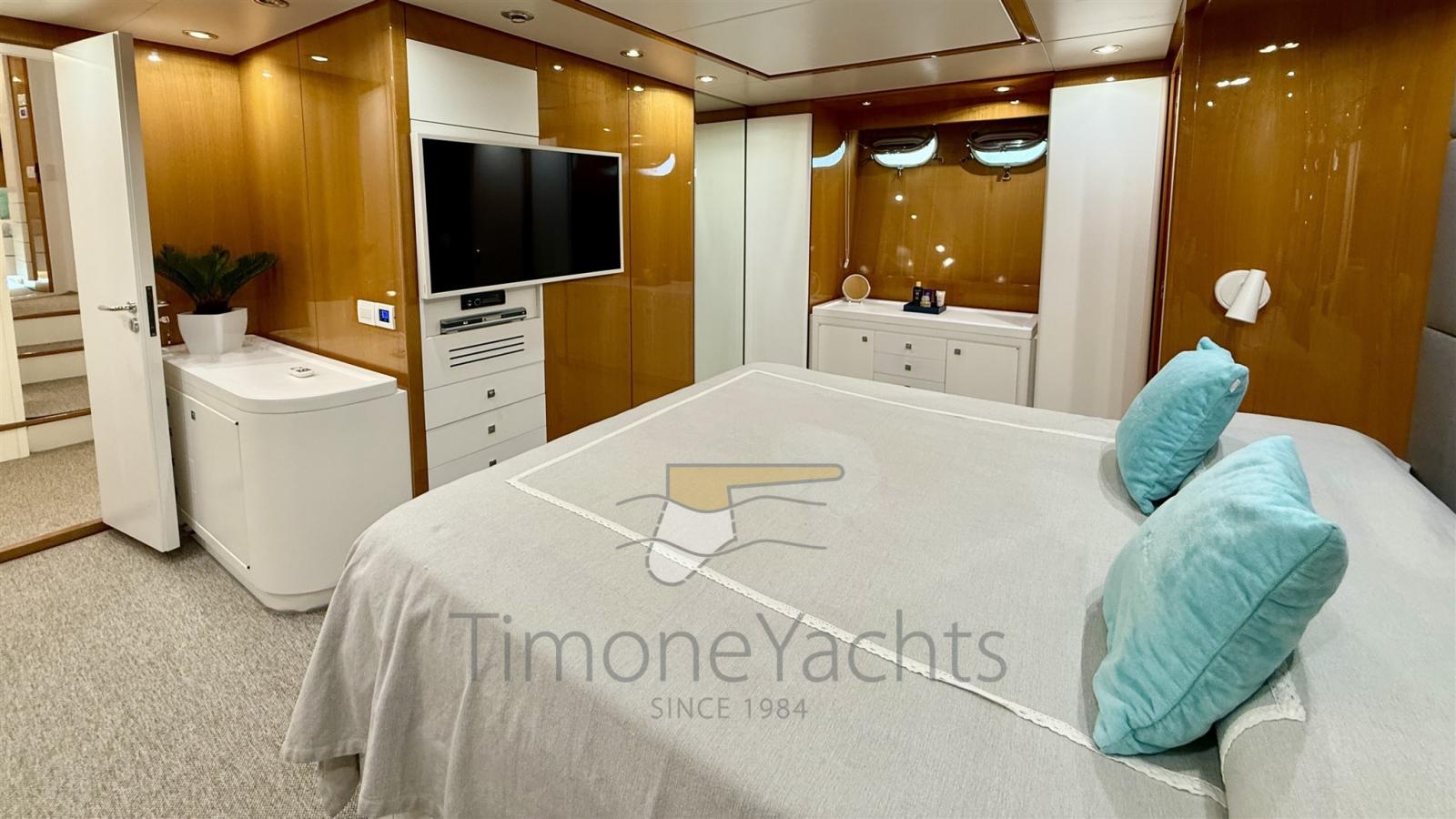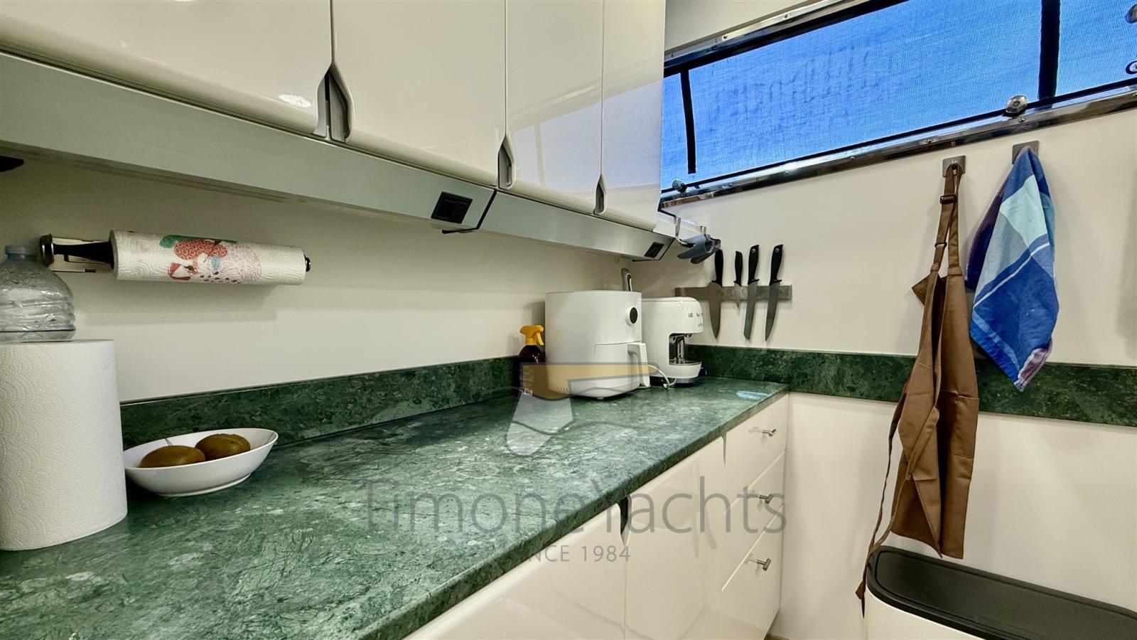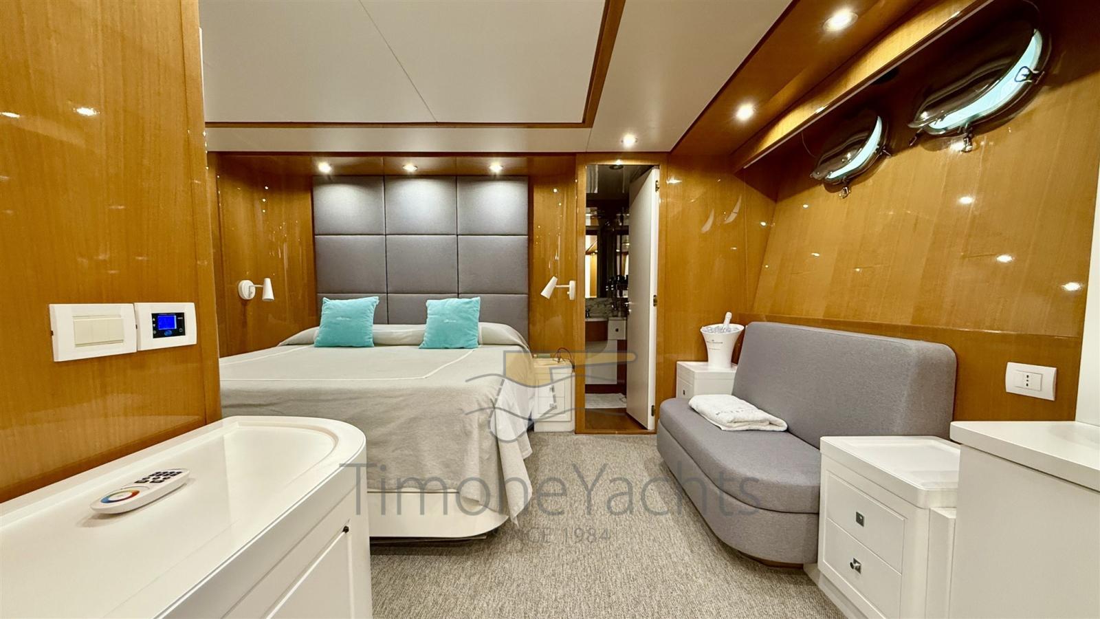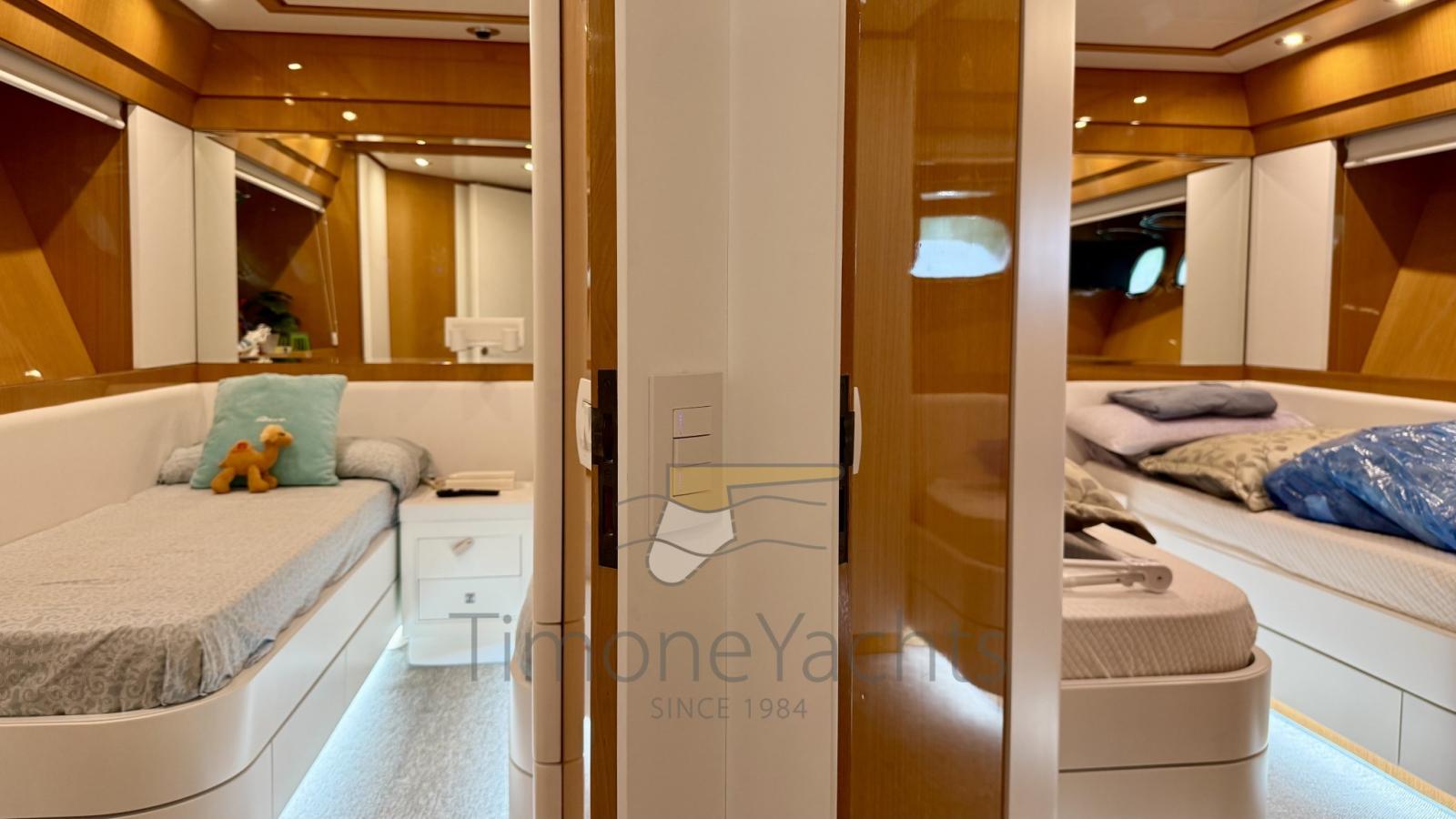 Alarme de pompe de cale, Ouverture du compartiment moteur électrique, Eau sous pression, Passavant en teck, Douche de cockpit, Double barre à roue, Phare de poursuite, Flaps hydrauliques (N°2), Grue de flybridge, Extincteur(s) fixe(s), Lavage de chaine, Passerelle, Plateforme arrière, Pompe de cale automatique, Pont en teck, Porte latérale, Porte latérale, Cockpit en teck, Onduleur, Rollbar, Guindeau électrique, Echelle de bain, Selles pour Annexe, table de cockpit, Corne, Winch électrique arrière.