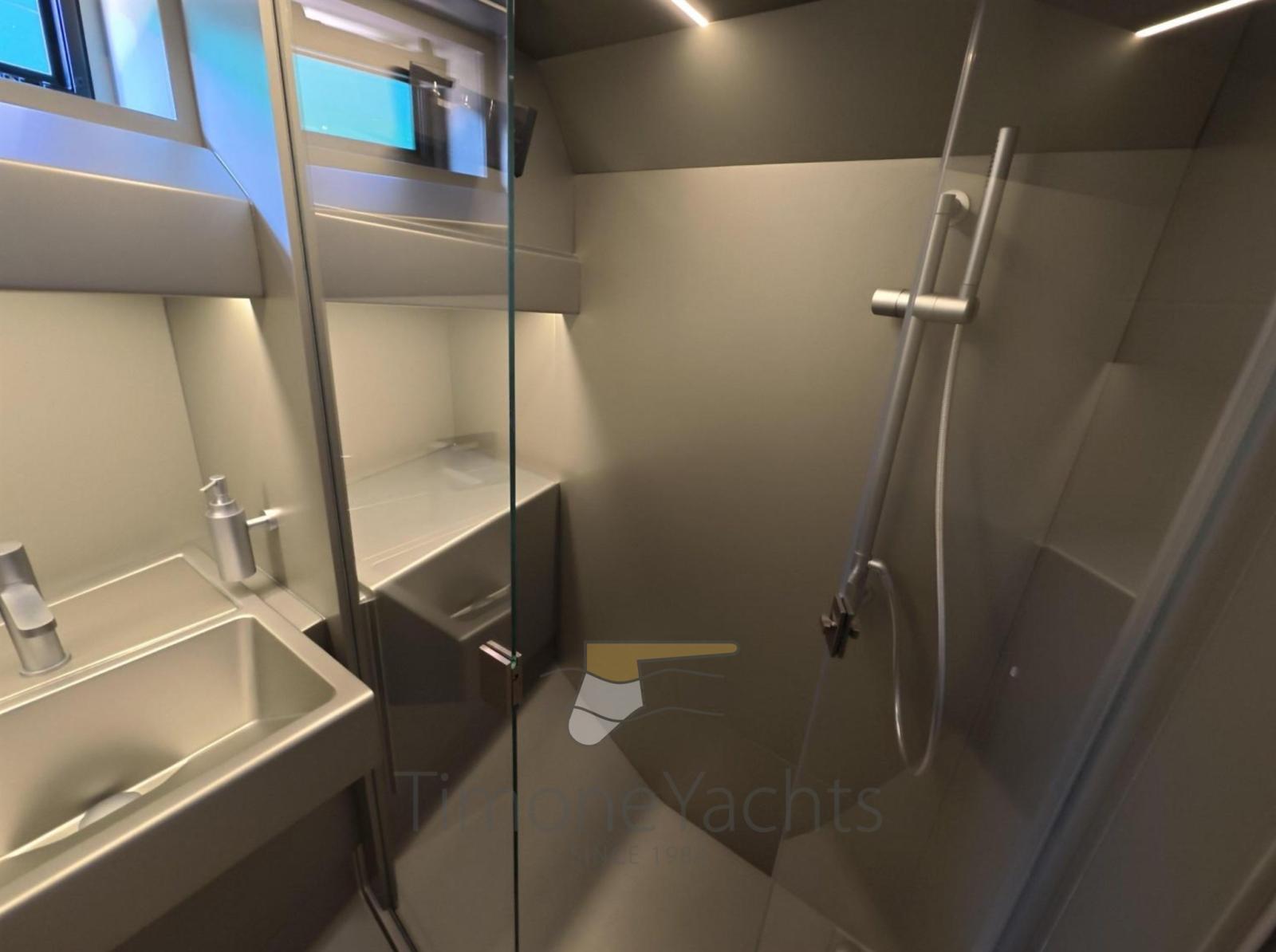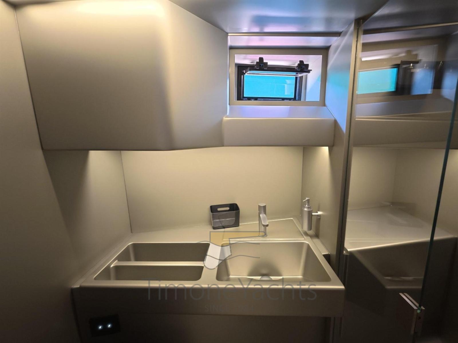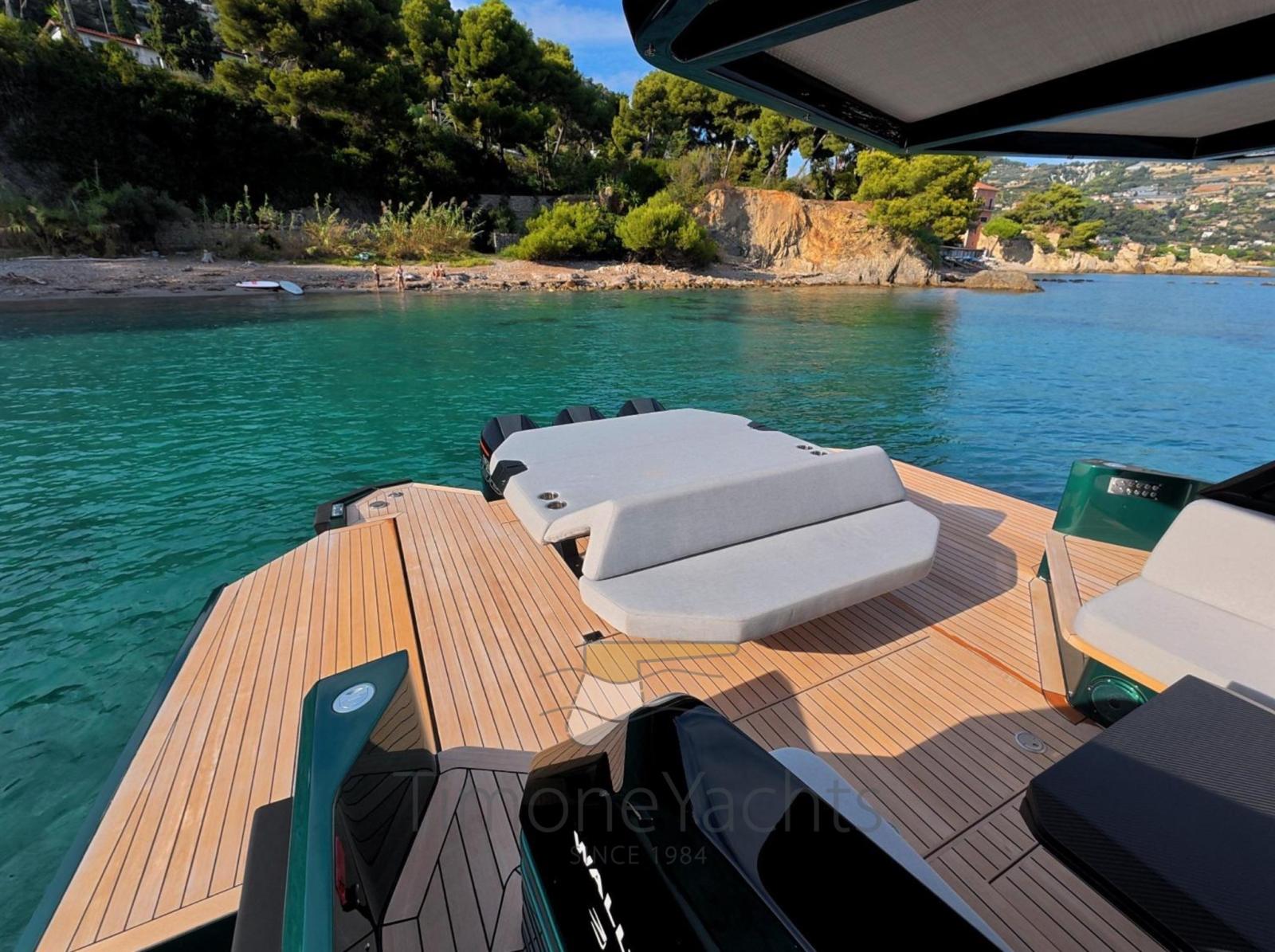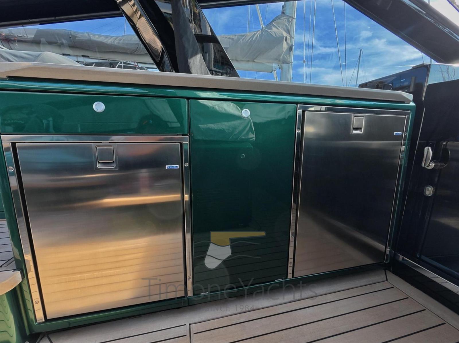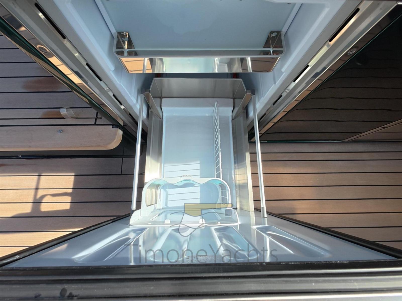 Auto Dynamic Trim Interceptor, Eau sous pression, Passavant en teck, Câble d’alimentation à quai, Couleur spéciale, Douche de cockpit, Phare de poursuite, Hard top, Lavabo dans le cockpit, Spots sous-marins, Passerelle, Pont en teck, Porte latérale, Cockpit en teck, Prise de quai, Rollbar, Guindeau électrique, Echelle de bain, Stabilisateurs (Seakeeper NG3), table de cockpit, Table pliante de salon, Corne.