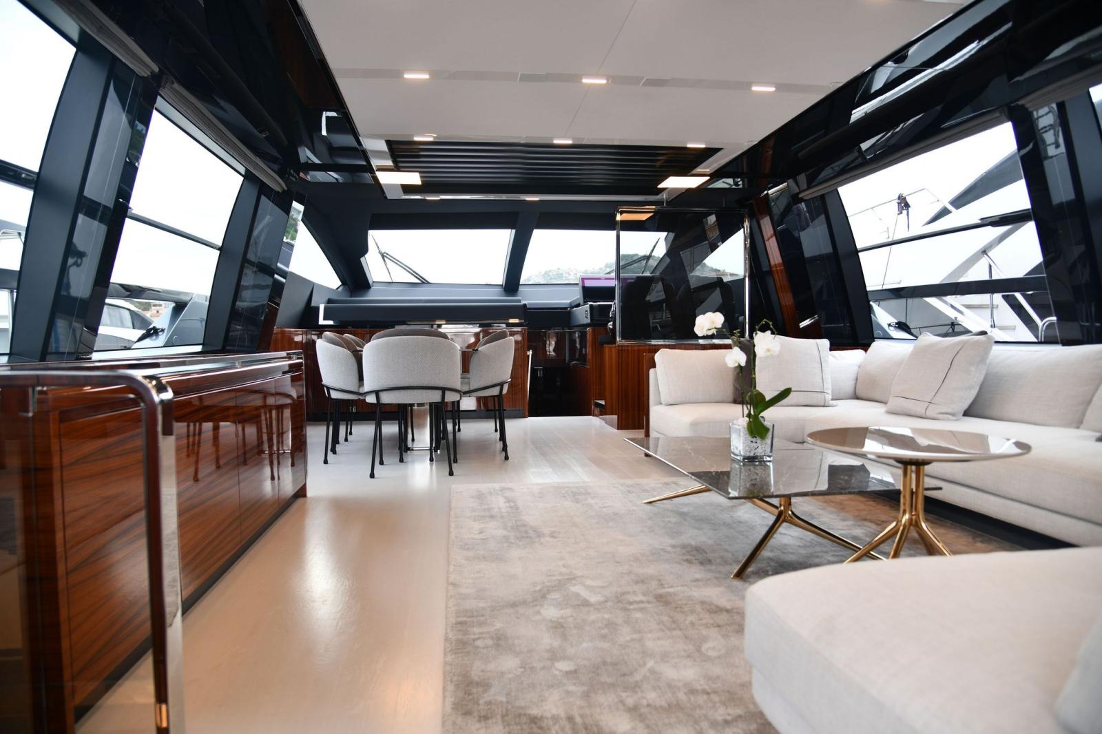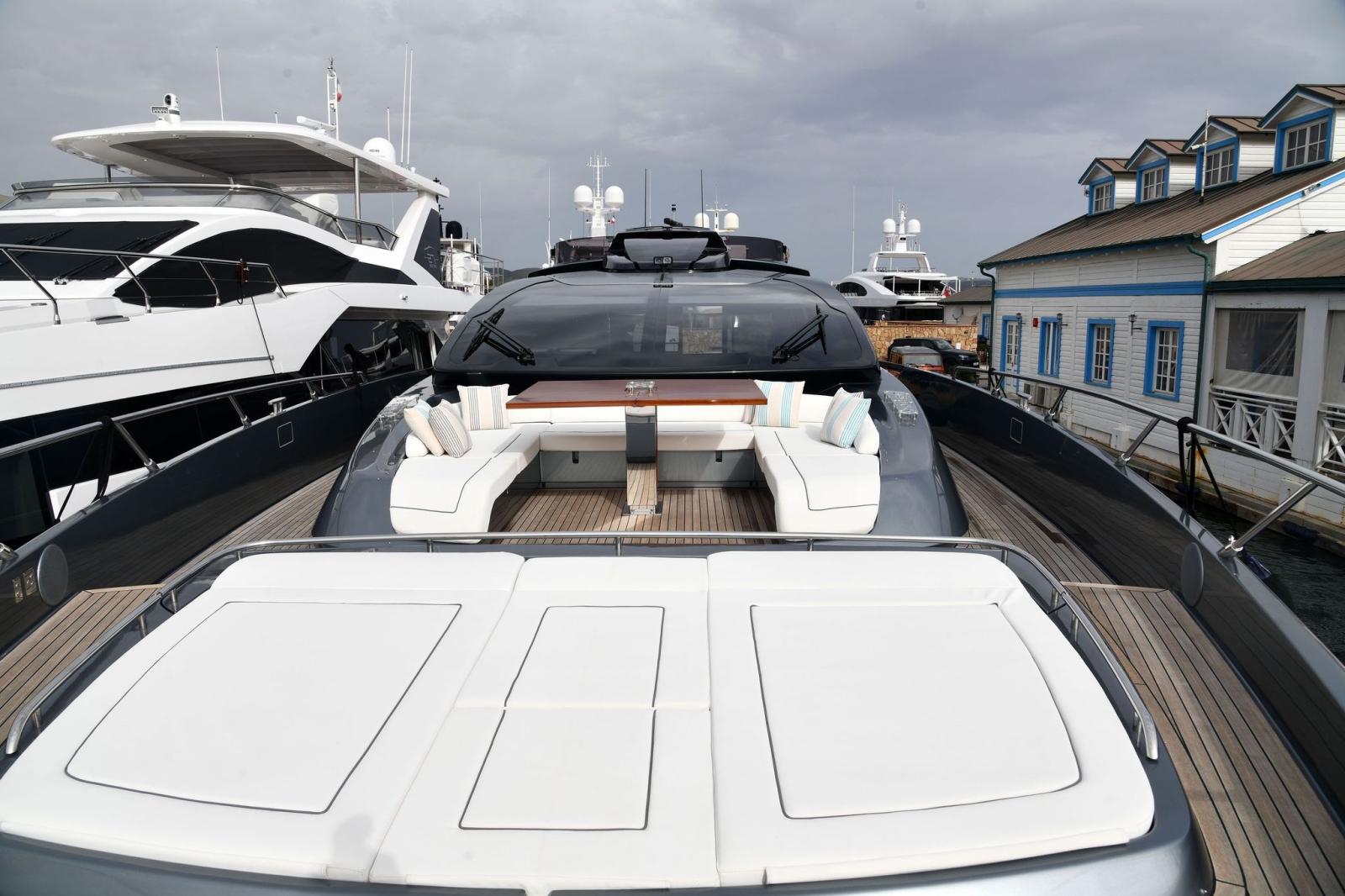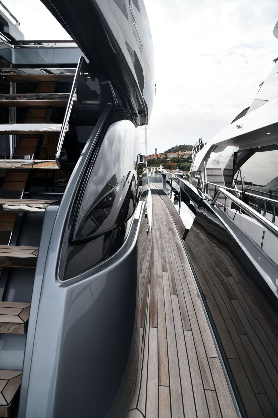 Eau sous pression, 2 Taquets pliants (da ormeggio addizionali), Filères, Filière, Douche de cockpit, Double barre à roue, Garage à annexe, Lavabo dans le cockpit, Spots sous-marins, Passerelle, Pompe de cale automatique, Prise de quai, Connexion eau sous pression à quai, Répétiteur électronique (simrad in crew dinette), Guindeau électrique, Echelle de bain, Stabilisateurs (di assetto), table de cockpit, Corne.