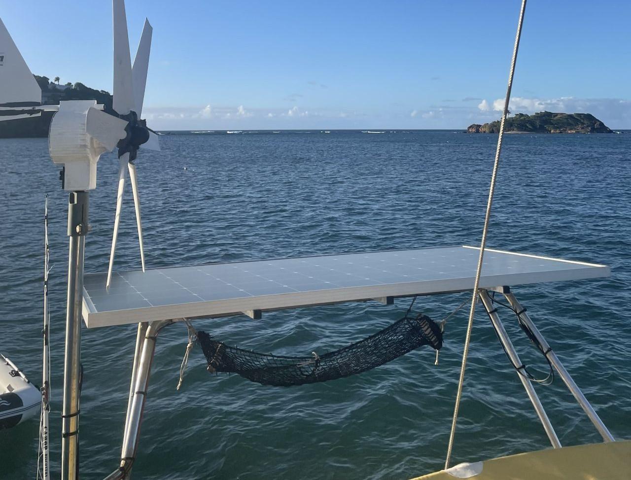 Portique en inox pour panneaux solaires et bossoir d’annexe