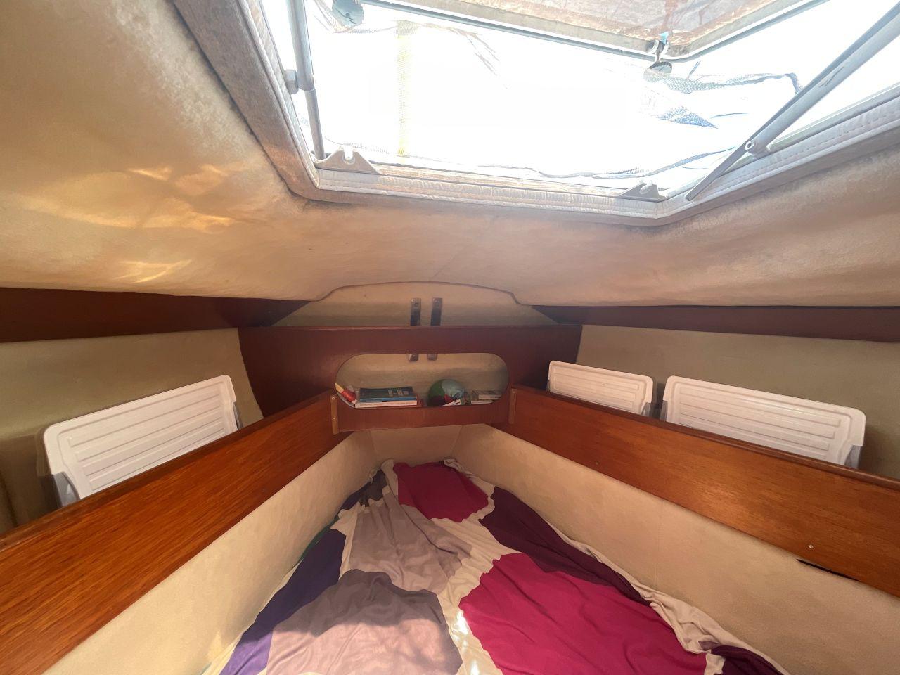 Une cabine avant triangulaire avec rangements