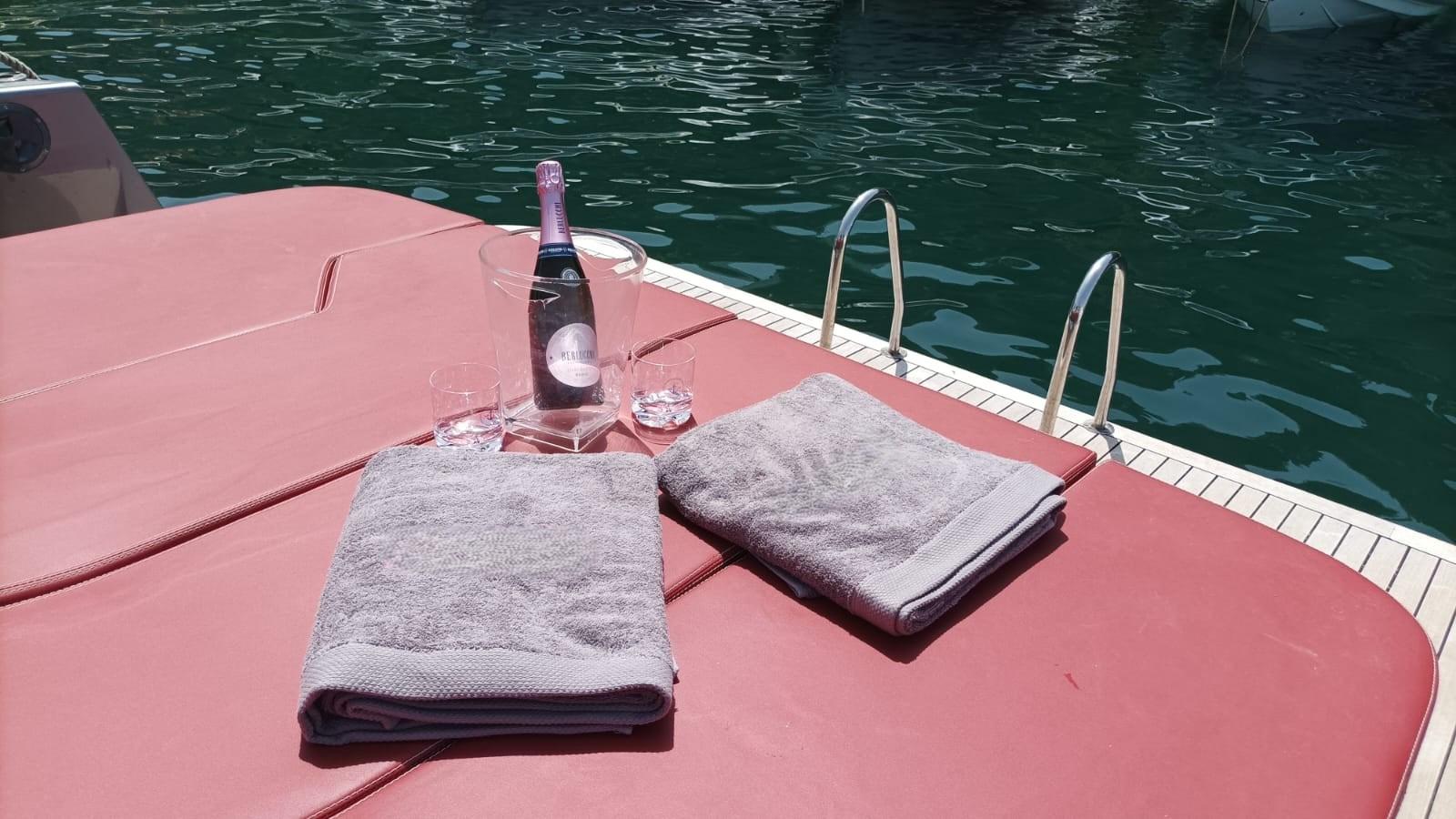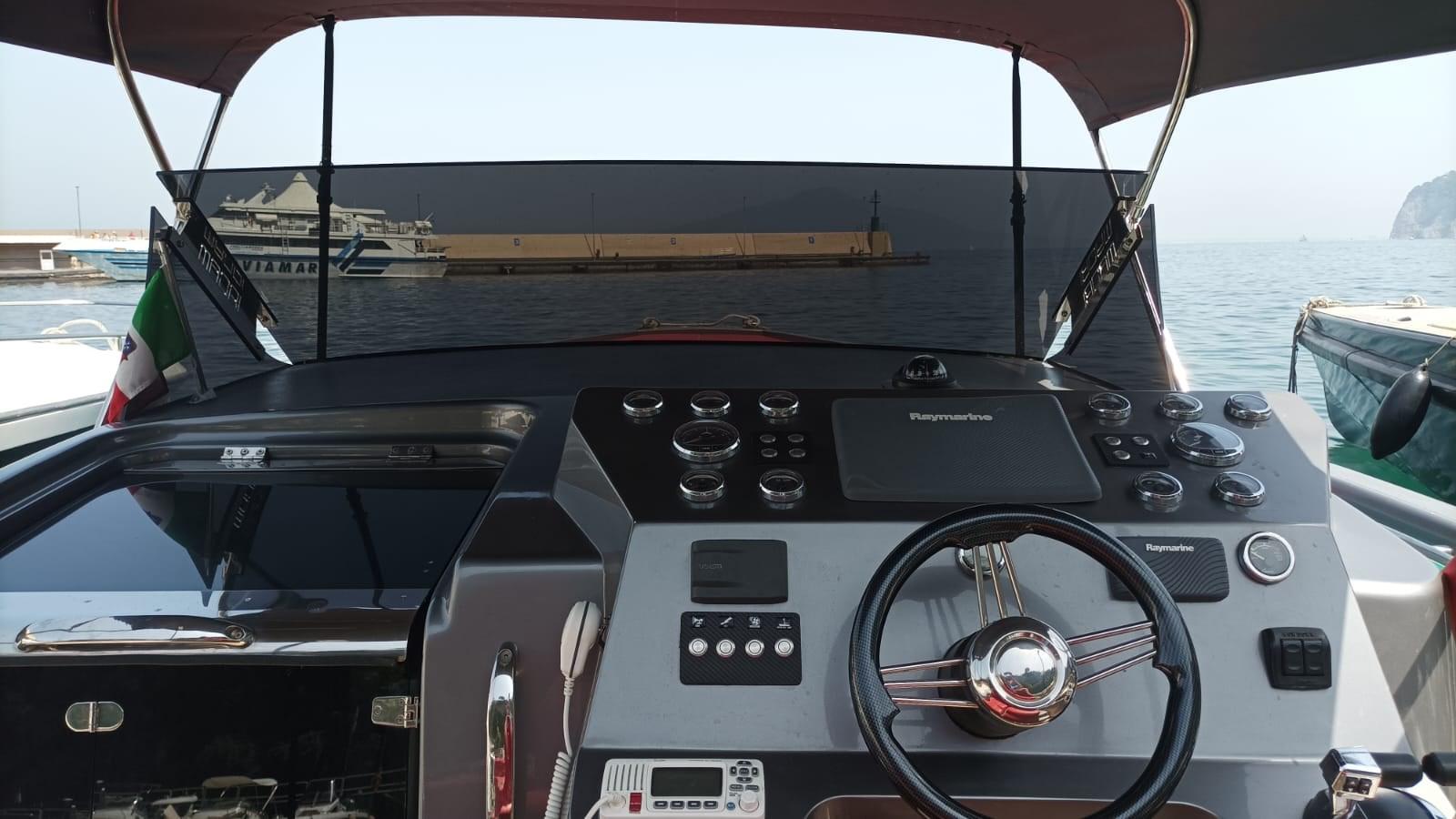 2 Alarme moteur, Alarme de pompe de cale, Ancre (Inox Kg 20), Eau sous pression, 4 Batteries, Couleur spéciale, Douche de cockpit, Flaps hydrauliques, Garage à annexe (a prua), Extincteur(s) fixe(s), Lavage de chaine, Éclairage de courtoisie, Plateforme arrière, 2 Pompe de cale automatique, Porte latérale, Cockpit en teck, Prise de quai, Onduleur, Guindeau électrique (Lewmar), Echelle de bain (elettroidraulica), Chaise support HB (in sala macchine), Corne.
