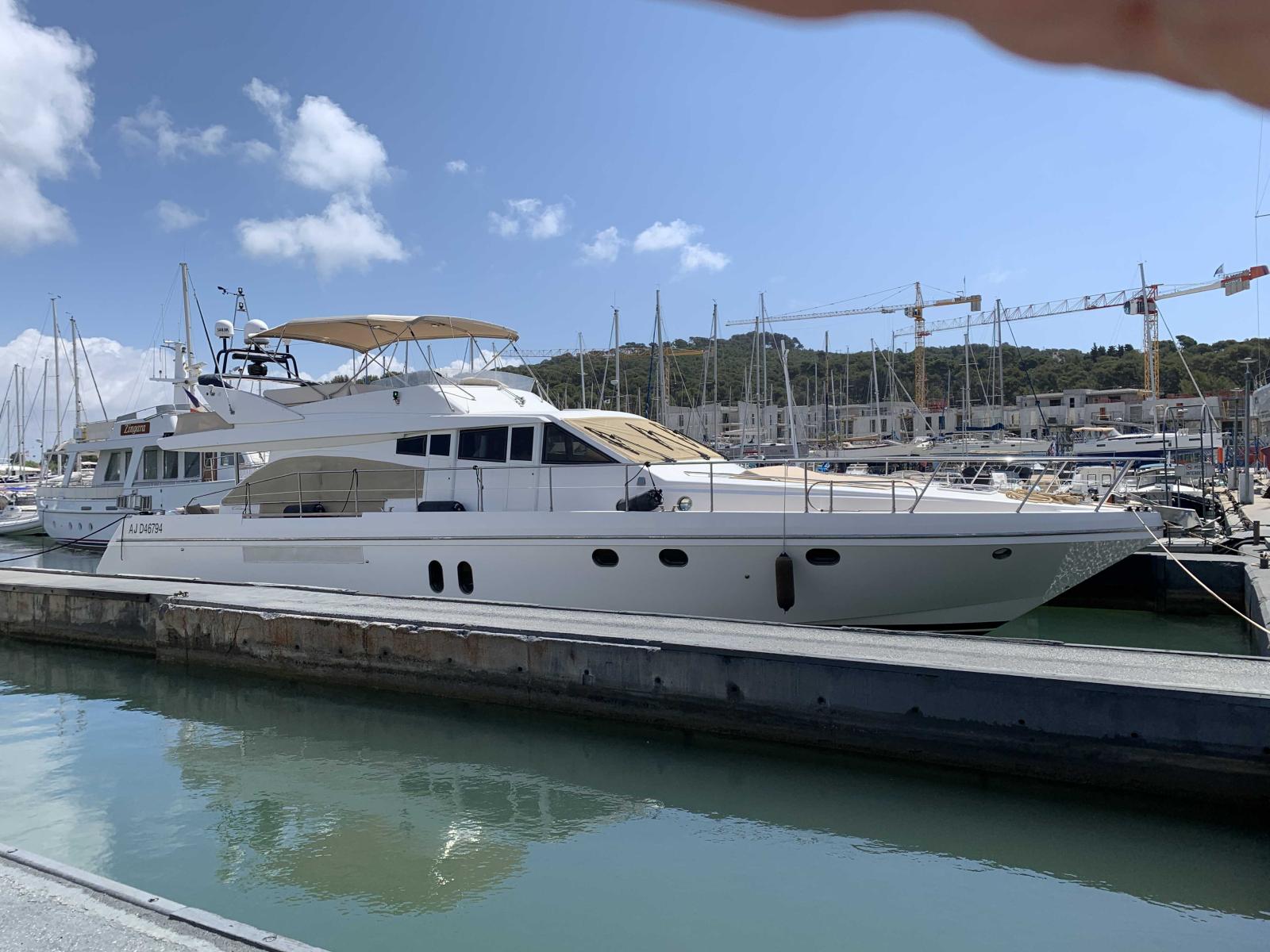 Cette exemplaire est très bien équipé avec entre autre, propulseurs d'étrave et de poupe hydrauliques, climatisation inverter récente, groupe électrogène kholer 17 kVA, grue hydraulique, passerelle hydraulique etc...