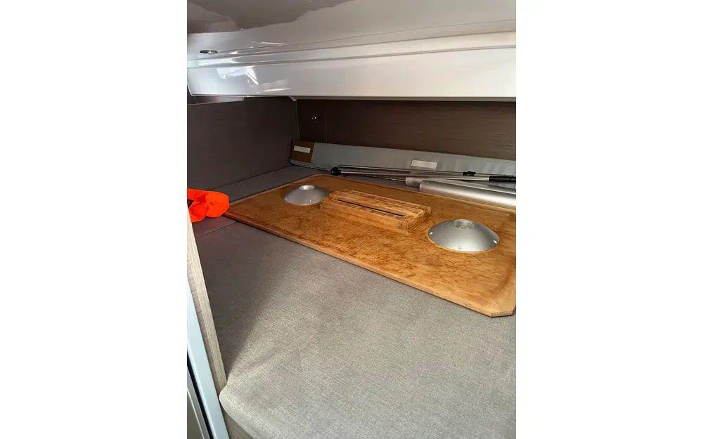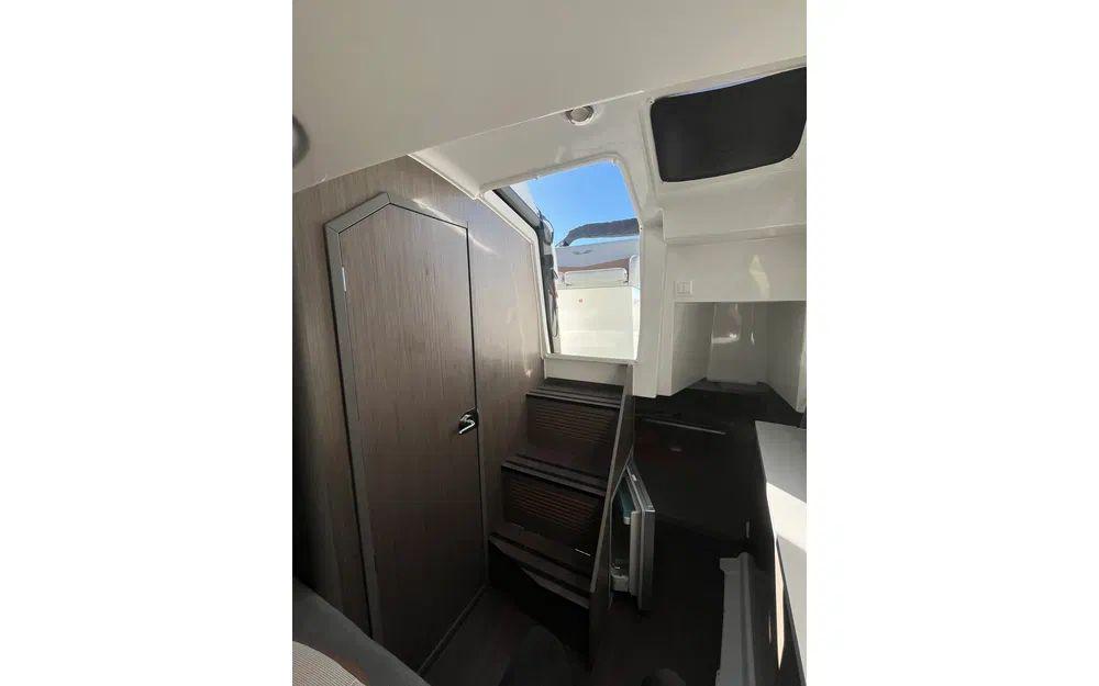 À bord, tout a été imaginé pour votre confort et celui de vos proches : grand bain de soleil avant et arrière pour lézarder au soleil, cockpit chaleureux, plateforme de bain pour plonger avec classe, et même une douchette (le sel, c’est bien, mais rincer, c’est mieux !). Son intérieur n’est pas en reste avec un couchage pour deux, un carré transformable, et l’indispensable WC Marin et chauffe-eau.