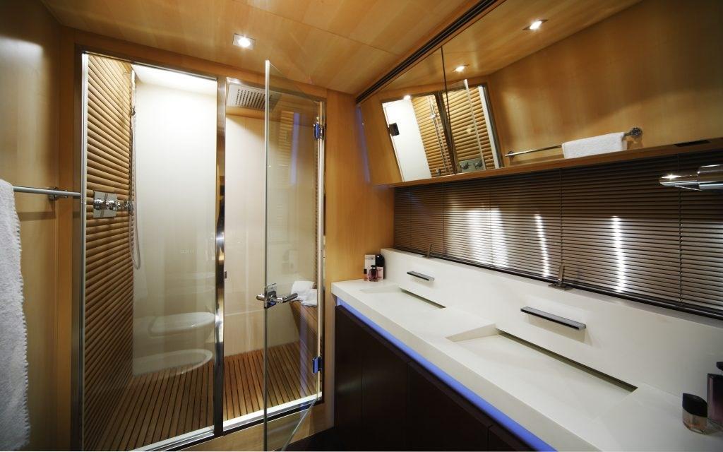 Alarme gaz, Alarme moteur, Alarme de pompe de cale, Alternateur, Ouverture du compartiment moteur électrique, Aspiration des Eaux Usées depuis le Pont, Eau sous pression, Passavant en teck, Câble d’alimentation à quai, Couleur spéciale, Douche de cockpit, Phare de poursuite, Flaps hydrauliques, Garage à annexe, Grue pour jet-ski, Hard top, Extincteur(s) fixe(s), Indicateurs de flaps, Lavage de chaine, Lavabo dans le cockpit, Éclairage de courtoisie, Spots sous-marins, Moniteur de batterie, Défenses, Passerelle (Idraulica), Plateforme arrière, Pompe de cale automatique, Pompe de Lavage du Pont, Cockpit en teck, Prise de quai, Connexion eau sous pression à quai, Onduleur, Rollbar, Guindeau électrique, Echelle de bain, Système de filtration des eaux usées, table de cockpit, Table pliante de salon, Corne, Winch électrique arrière, Winch électrique avant.