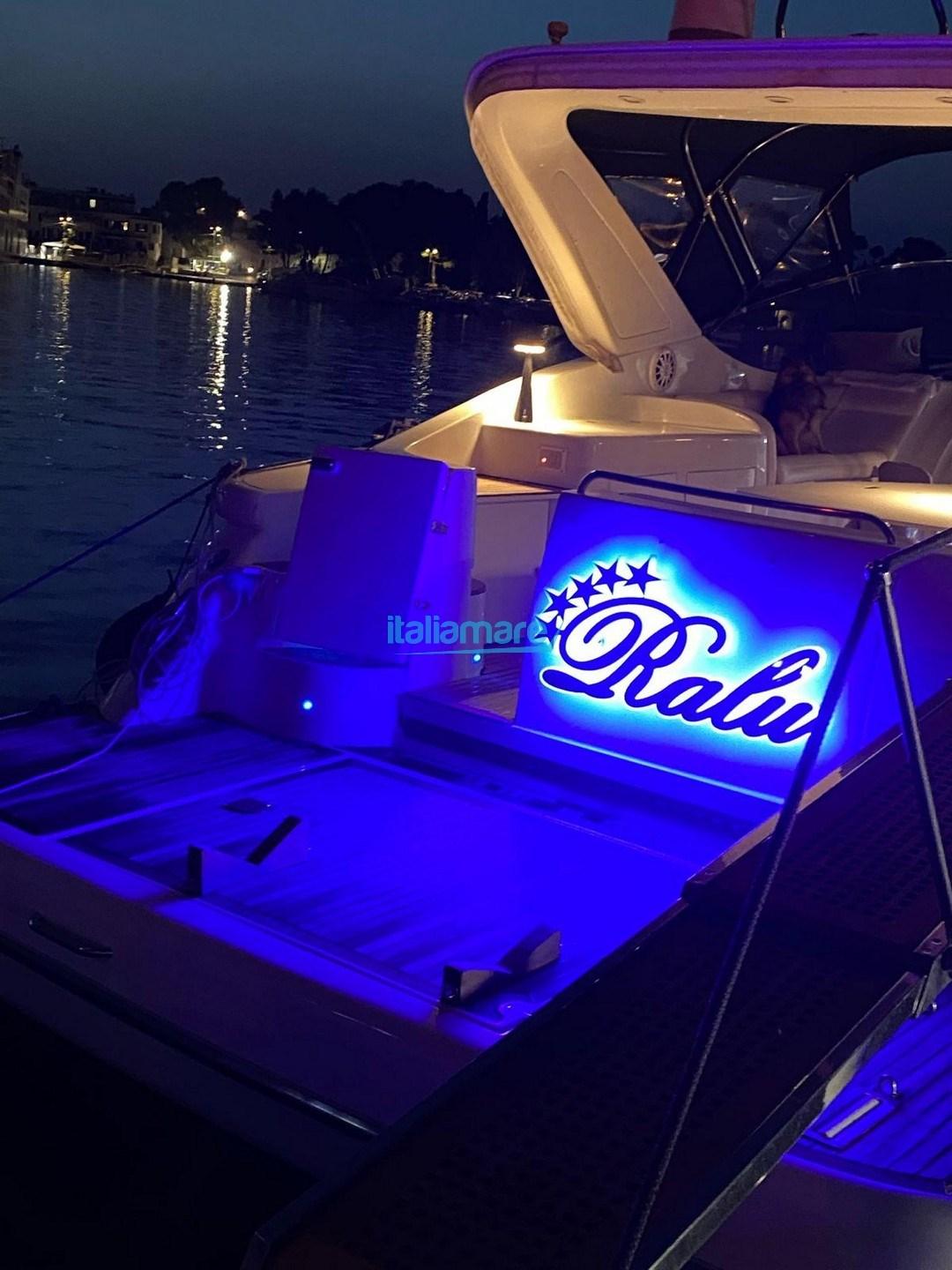 Alarme moteur, Alarme de pompe de cale, Eau sous pression, Douche de cockpit, Flaps électriques, Extincteur(s) fixe(s), Indicateurs de flaps, Éclairage de courtoisie, Passerelle, Plateforme arrière, Pompe de cale automatique, Pompe de cale manuelle, Cockpit en teck, Prise de quai, Connexion eau sous pression à quai, Guindeau électrique, Echelle de bain, table de cockpit.