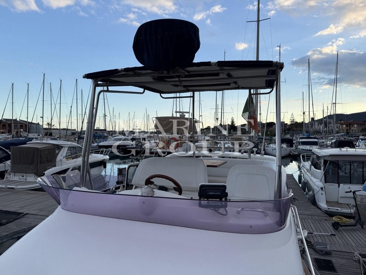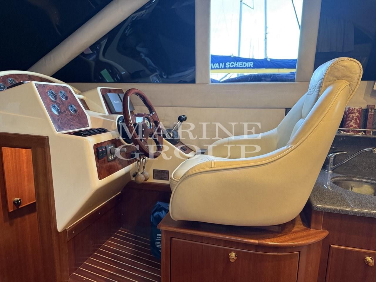 Douche de cockpit, Double barre à roue, Phare de poursuite, Flaps électriques, Moteur d'annexe, Passerelle, Plateforme arrière, Pont en teck, Porte latérale, Cockpit en teck, Prise de quai, Guindeau électrique, Echelle de bain, Corne, T-Top, Winch électrique avant.