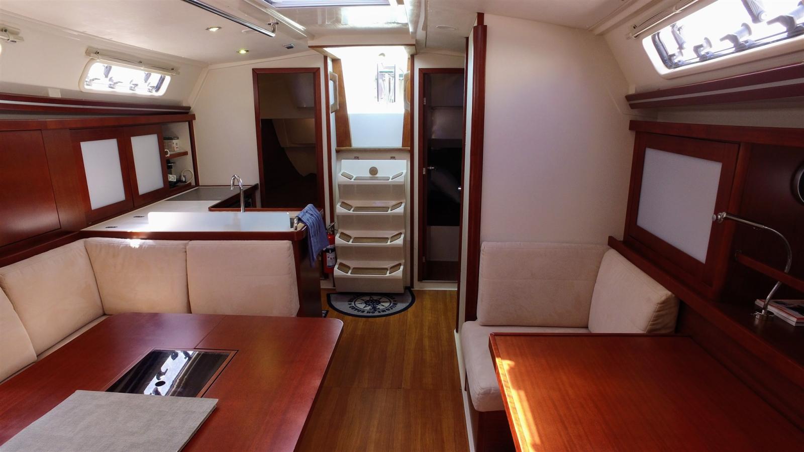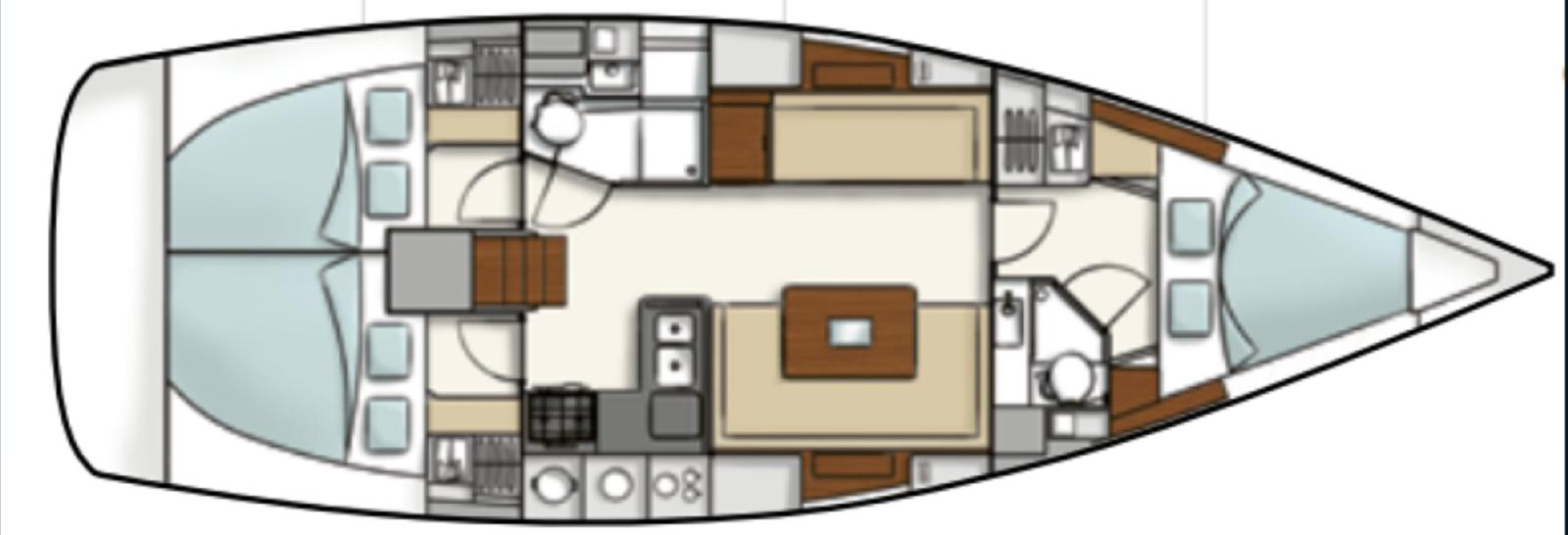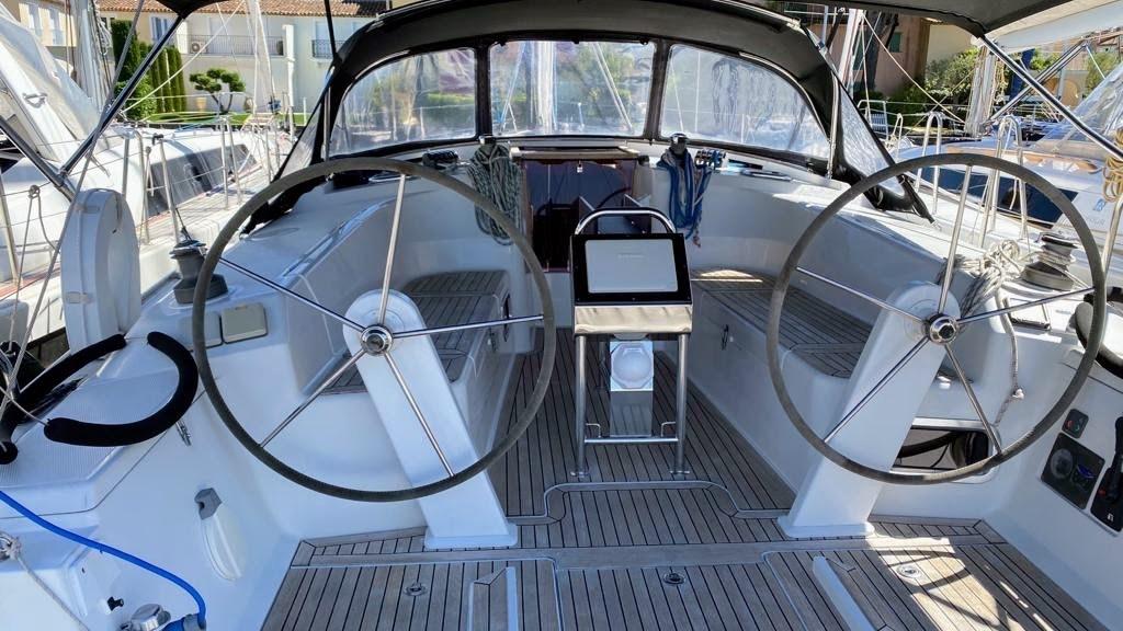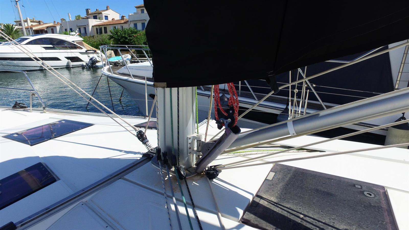 Alarme moteur, Ancre (Chaîne inox), Eau sous pression, 3 Batteries (2 service 300amp de 2021), Chargeur de batterie (40 Amp Dolphin), Filères, Douche de cockpit, Double barre à roue, Moteur d'annexe (2,3 CV), Plateforme arrière, Pompe de cale automatique, Pompe de cale manuelle, Cockpit en teck, Prise de quai, Guindeau électrique, Gréement monotoron (de 2024 et gréement courant de 2023), Echelle de bain, Chaise support HB, table de cockpit, Annexe, 4 Winch, Windex.