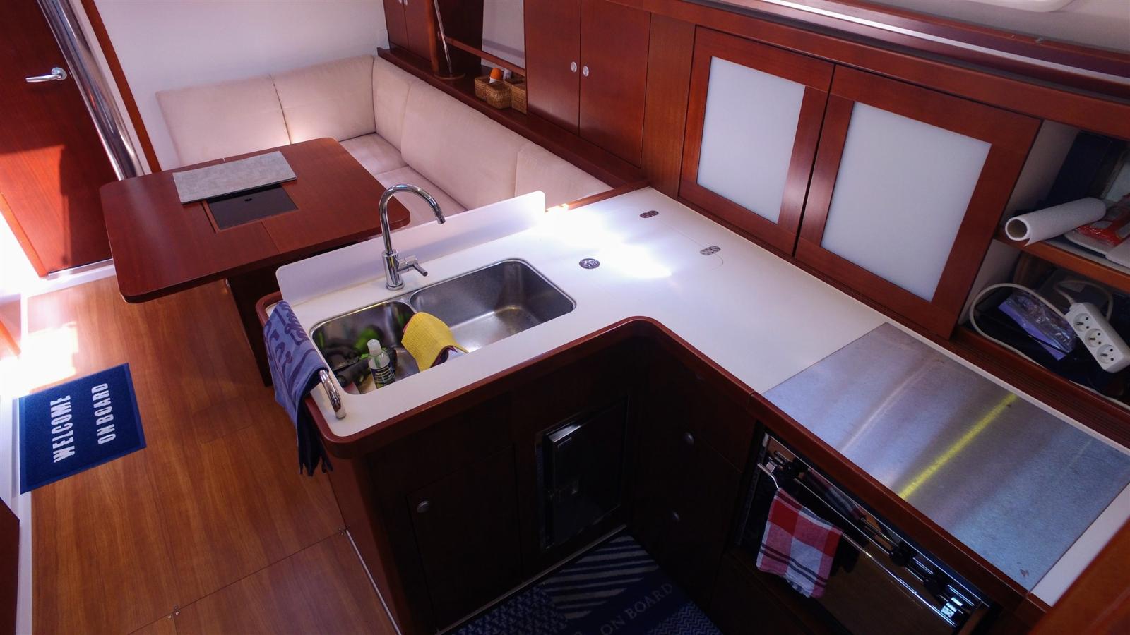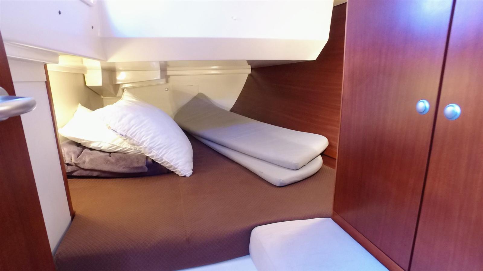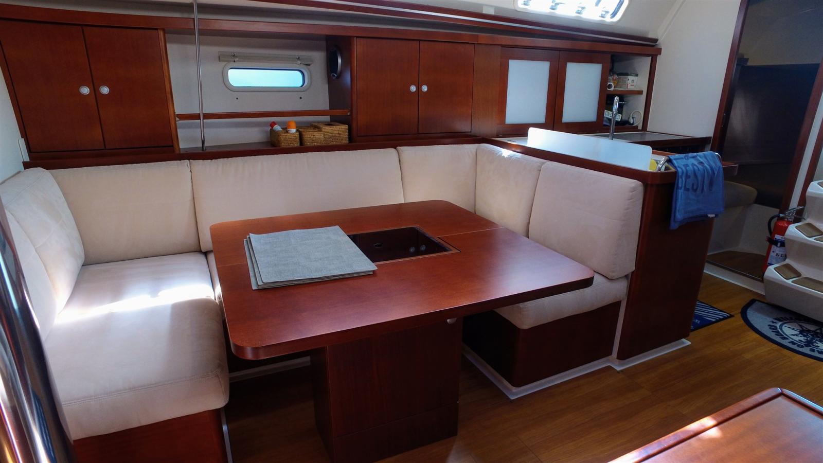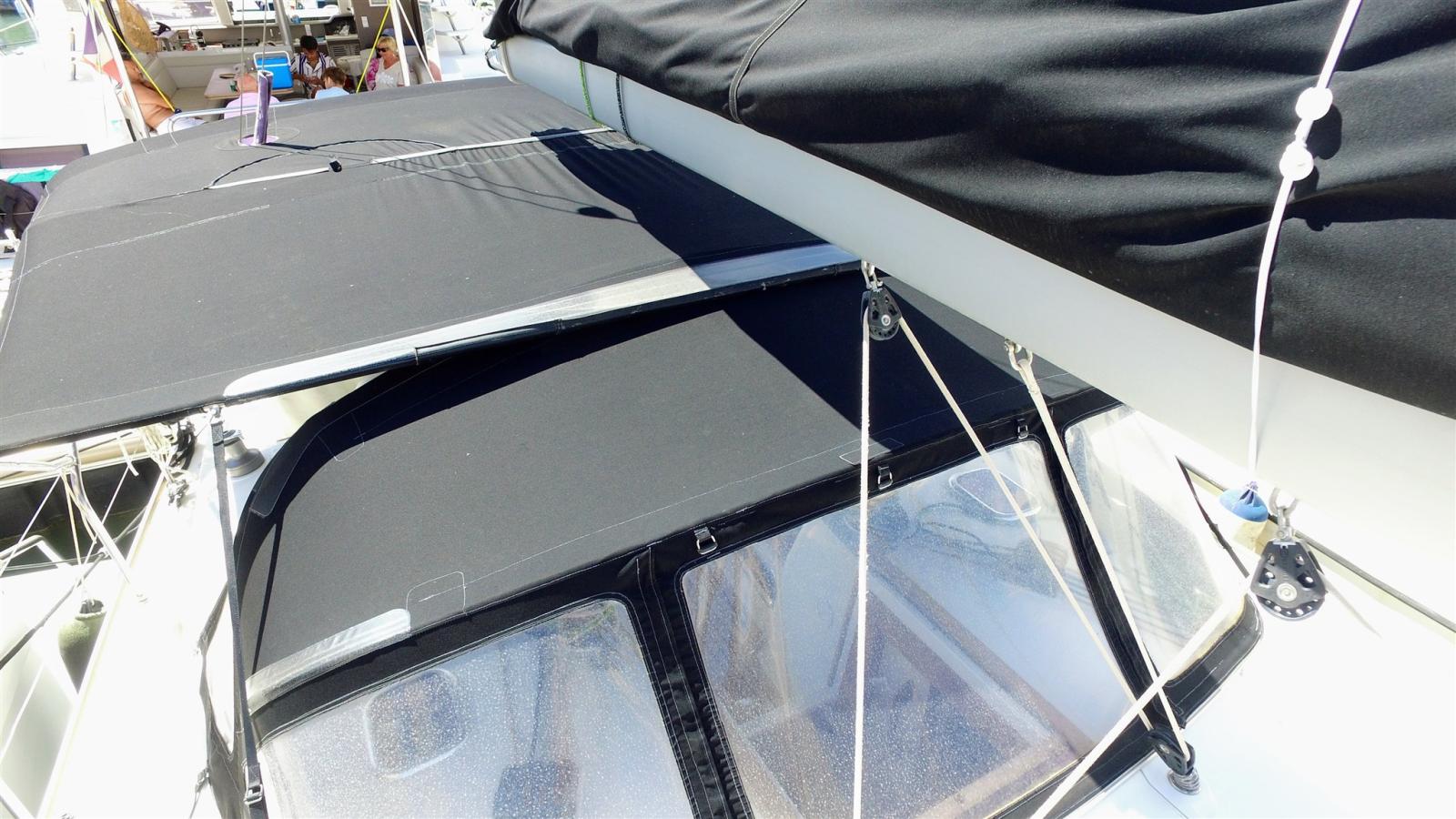 Alarme moteur, Ancre (Chaîne inox), Eau sous pression, 3 Batteries (2 service 300amp de 2021), Chargeur de batterie (40 Amp Dolphin), Filères, Douche de cockpit, Double barre à roue, Moteur d'annexe (2,3 CV), Plateforme arrière, Pompe de cale automatique, Pompe de cale manuelle, Cockpit en teck, Prise de quai, Guindeau électrique, Gréement monotoron (de 2024 et gréement courant de 2023), Echelle de bain, Chaise support HB, table de cockpit, Annexe, 4 Winch, Windex.