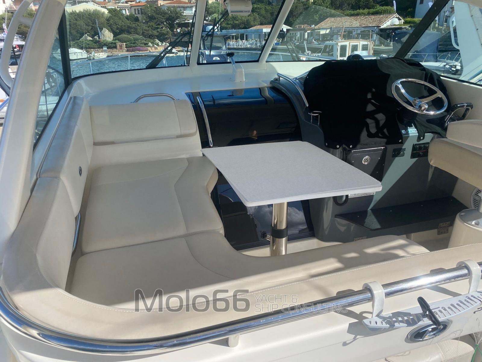 Tangons de pêche, Bancs pliants (2 a poppa), Porte-cannes (4 sui trincarini - 8 su hardtop), Bac à vif (da 190 lt), Bac à poissons (2 in pozzetto da 258 lt con maceratore).