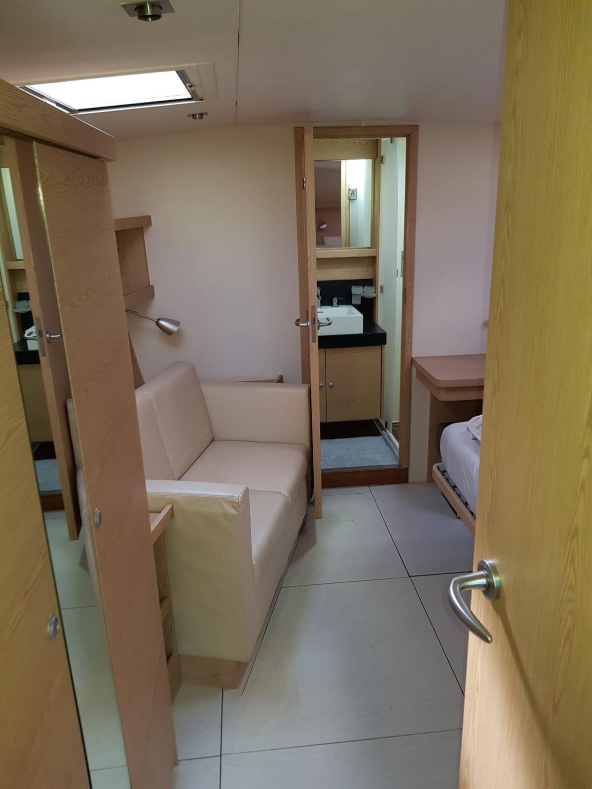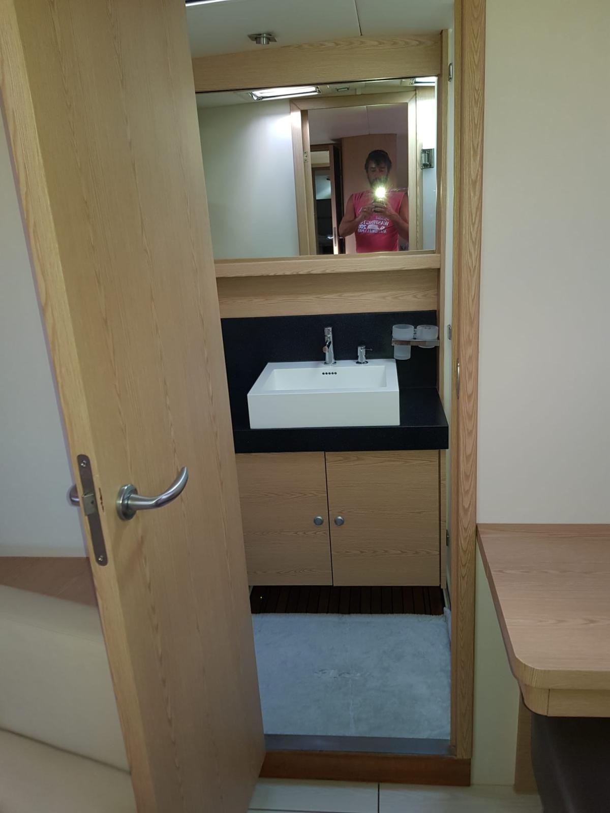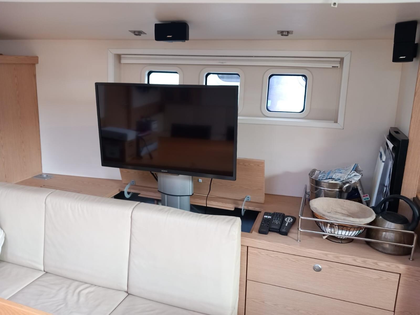 Eau Chaude, BBQ/ Grill, Ballon d'eau chaude, 2 Coffre-fort, Air Conditionné, Connexion à internet, Dessalinisateur (150 lt/h), Cuve à eaux noires, Indicateur du réservoir de carburant, Jauge de Réservoir d’Eau, Jauge de Réservoir d’Eaux Usées, Plancher intérieur en bois, Prises interieures 12v, Prises interieures 220v, Voltmètre, 3 Toilettes électriques (acqua dolce).