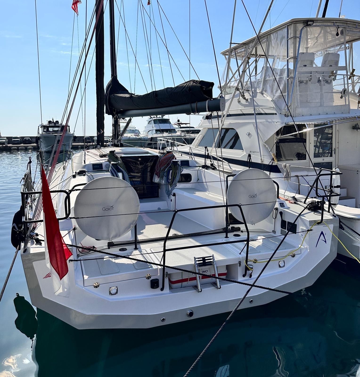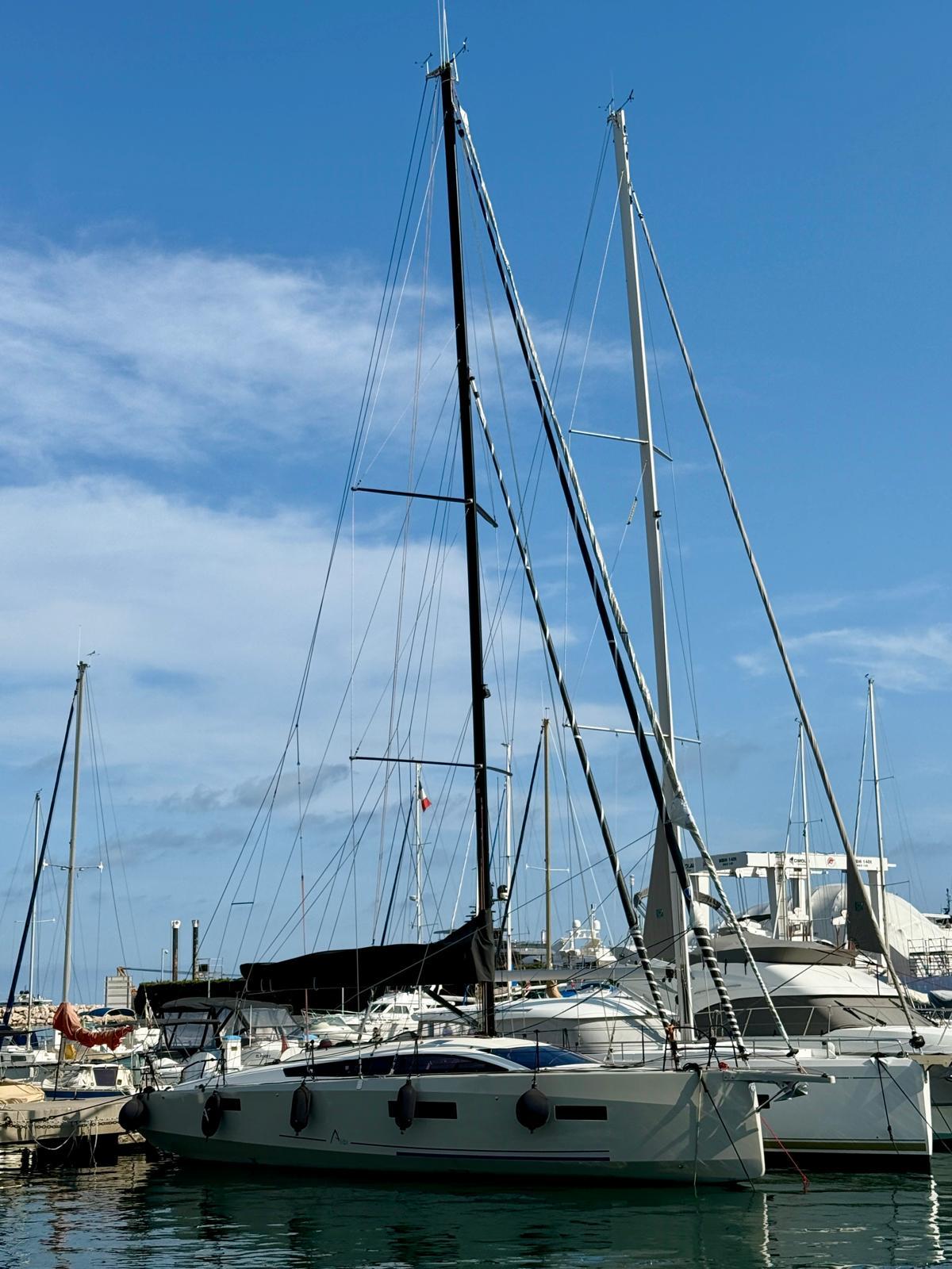 Mis à l’eau en 2023 pour son unique propriétaire, ce RM 1180 se présente dans un état exemplaire et une configuration hautement équipée. Mât et bôme laqués noir mat, voiles DFI complètes (GV, génois, trinquette, code 0, spi asymétrique), enrouleurs Flatdeck, propulseur d’étrave rétractable, winch électrique et accastillage thermolaqué noir confèrent à ce voilier une allure racée et un confort de manœuvre remarquable. L’intérieur, clair et fonctionnel, offre climatisation Blue Cool, convertisseur 2000 W, batterie Gel additionnelle et pack électronique Pochon complet. Coque Gris Soie, finitions soignées et entretien irréprochable. Visible proche de Monaco et disponible immédiatement.