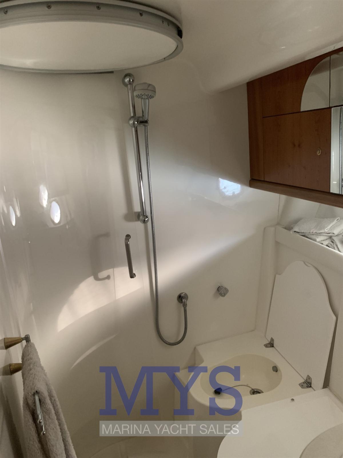 1 Salle de bain complète avec lavabo, douche et WC marins électriques