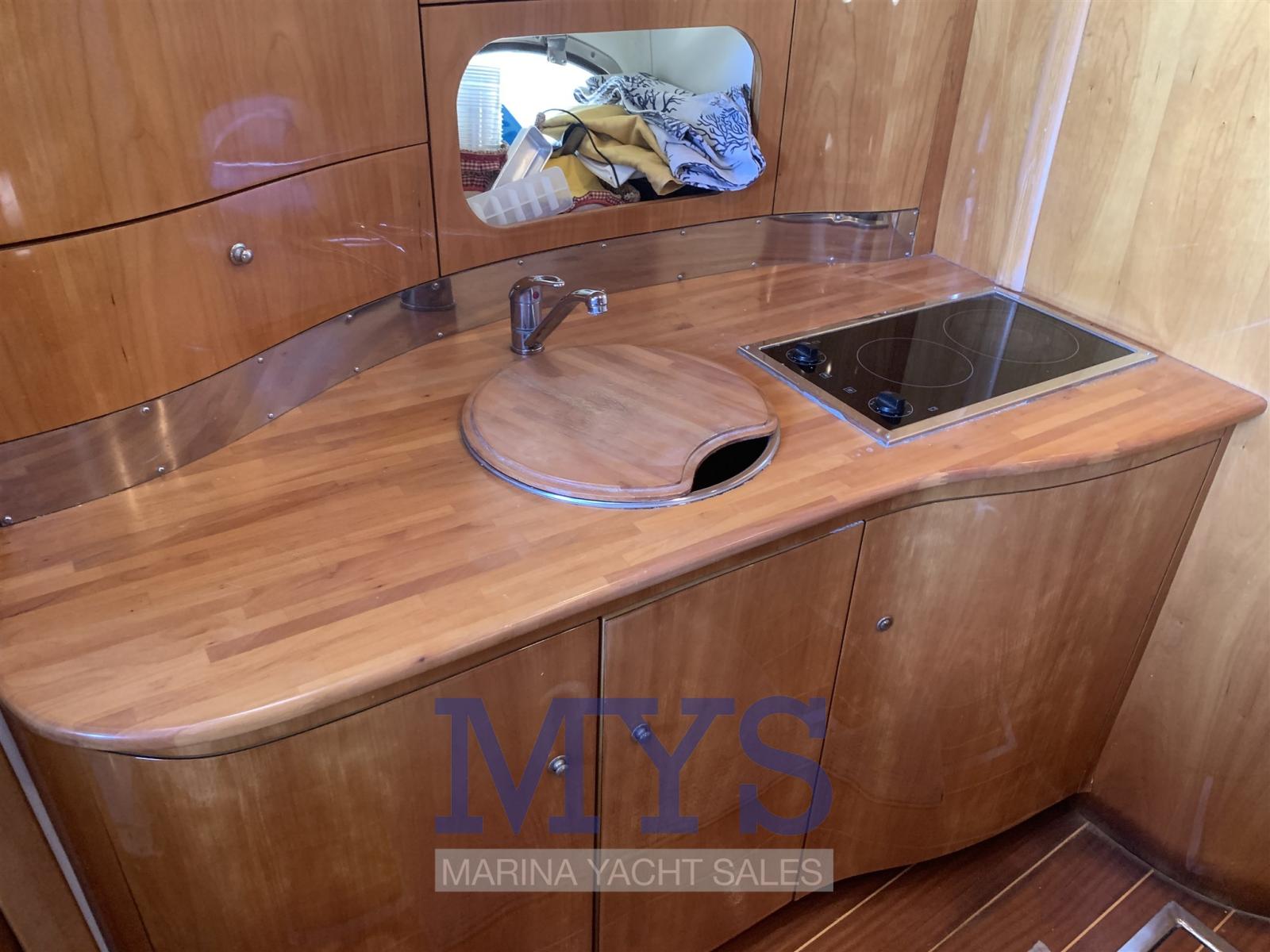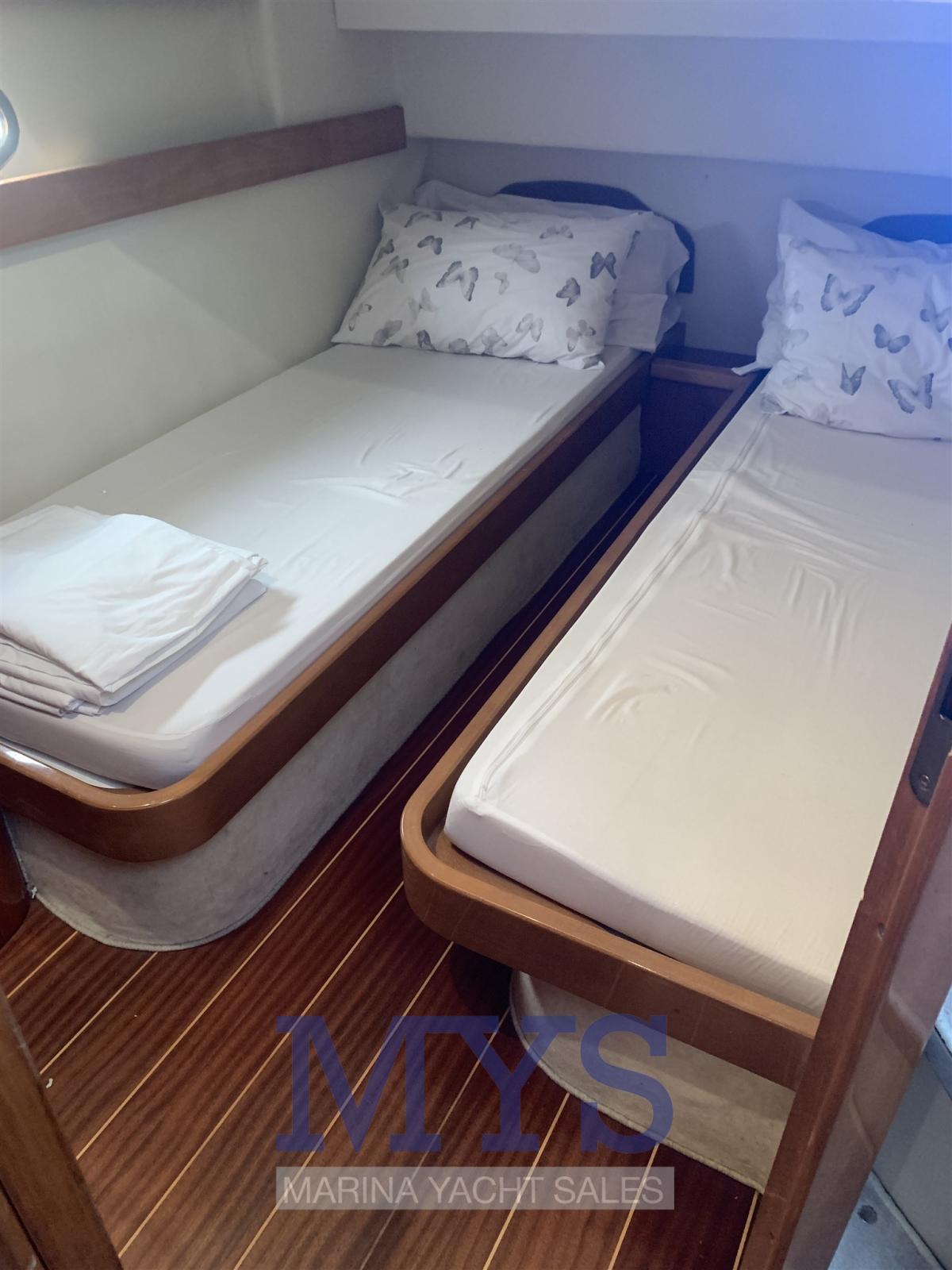 Alarme moteur, Eau sous pression, Douche de cockpit, Flaps hydrauliques, Indicateurs de flaps, Éclairage de courtoisie, Passerelle, Pompe de cale automatique, Cockpit en teck, Prise de quai, Connexion eau sous pression à quai, Rollbar, Guindeau électrique, Echelle de bain, table de cockpit, Corne.