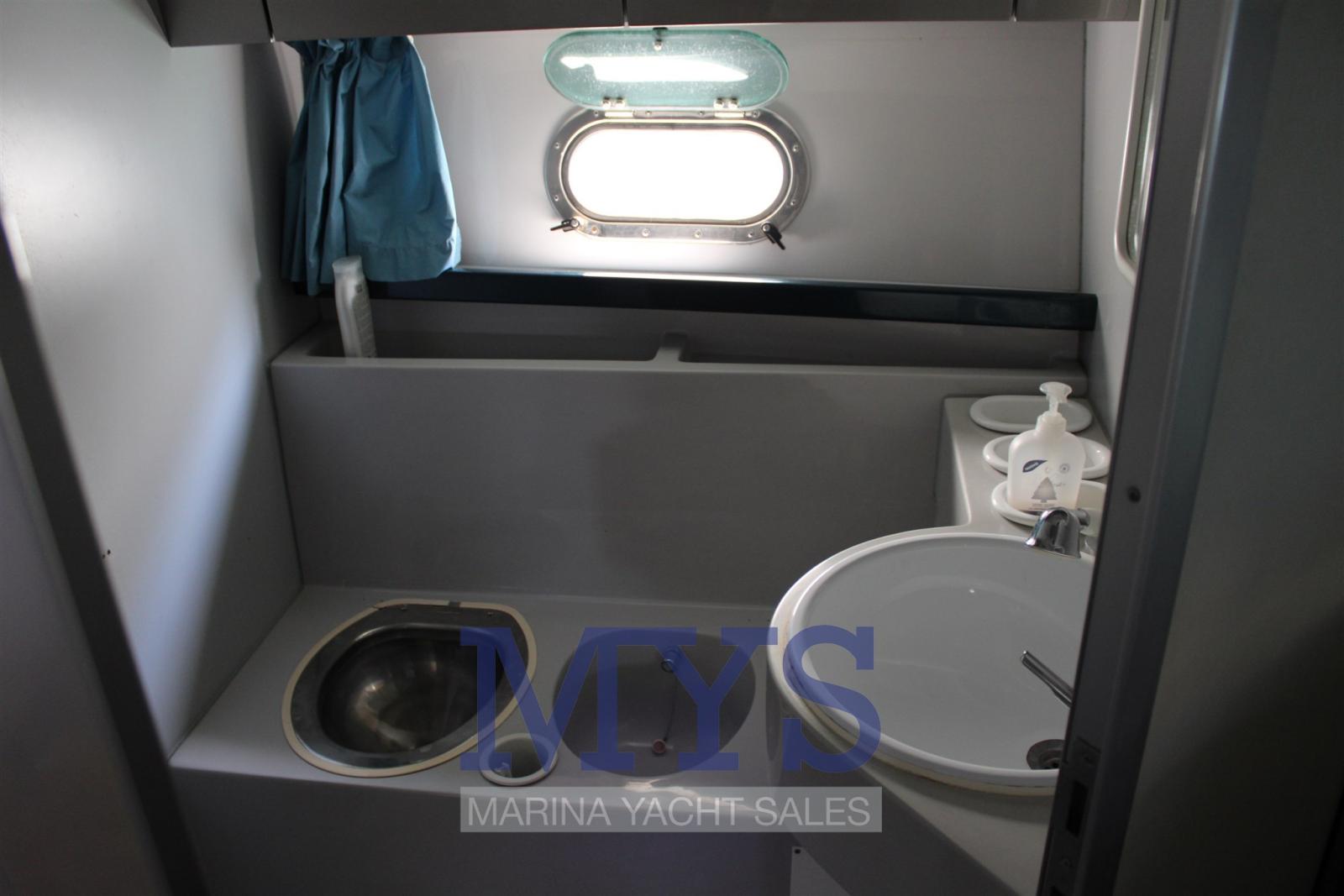 1 cabine double principale à l’avant avec salle de bain complète avec lavabo, douche, bidet et WC marins électriques