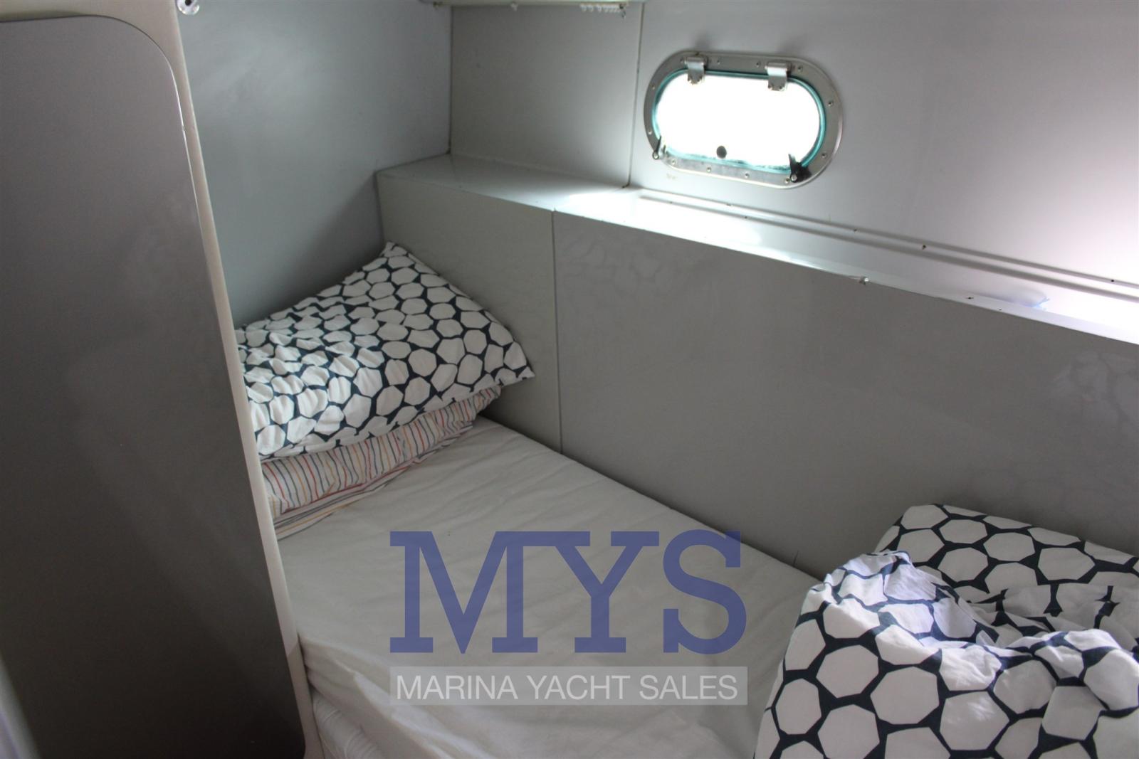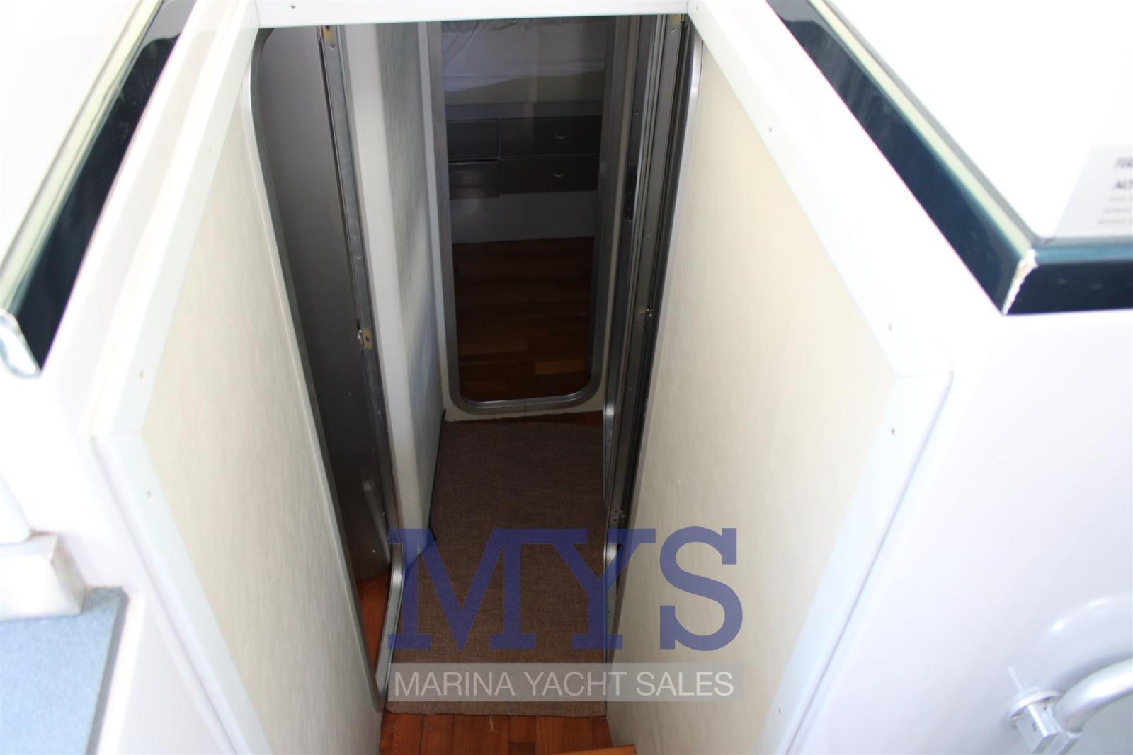 Alarme moteur, Eau sous pression, Douche de cockpit, Double barre à roue, Flaps hydrauliques, Extincteur(s) fixe(s), Indicateurs de flaps, Éclairage de courtoisie, Passerelle, Plateforme arrière, Pompe de cale automatique, Porte latérale, Cockpit en teck, Prise de quai, Connexion eau sous pression à quai, Répétiteur électronique, Rollbar, Guindeau électrique, Echelle de bain, Corne.