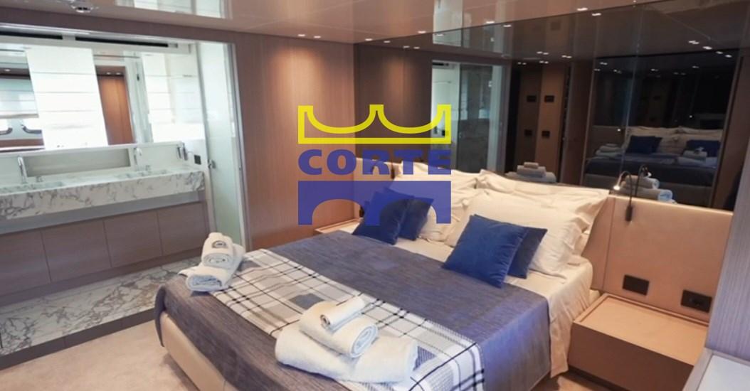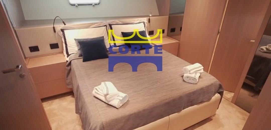 Teppan-yaki dans le bar mobile sur le flybridge, caméras et feux d’ancrage, système de positionnement dynamique Volvo, n° 3 prises étanches 220 V, TV derrière le rétroviseur dans le salon et la cabine propriétaire, table à manger avec plateau en marbre blanc de Carrare, meuble de bar avec réfrigérateur et machine à glaçons, n° 3 rideaux occultants manuels dans la cabine propriétaire, douche à colonne en acier inoxydable sur le flybridge, toit ouvrant électrique à lattes pour toit rigide, auvent pour la zone arrière du flybridge, auvent d’étrave avec poteaux en acier inoxydable, climatisation sur le flybridge, plate-forme élévatrice arrière hydraulique, système électrique de levage / abaissement pour table volante avec dessus en teck, système manuel de levage / abaissement pour table avant avec dessus en teck (complet avec coussin pour la transformation en terrasse), armoire de barre 60 cm plus longue que la norme, projecteur avec commande de direction, deuxième poste de commande de cockpit avec joystick VOLVO IPS, système Internet Wi-Fi 4G avec antenne pour la réception wifi du port, pack audio/vidéo GOLD.