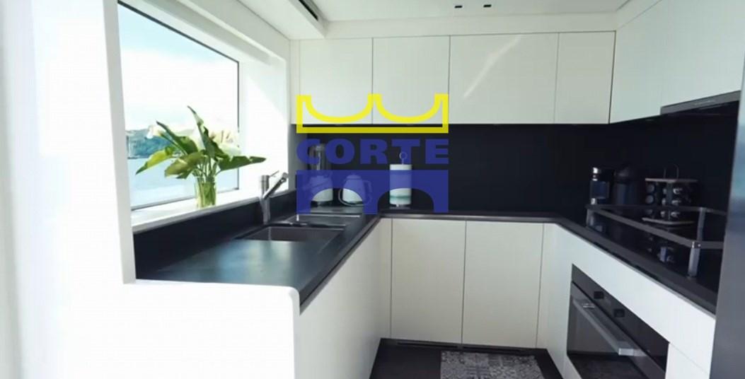 Cuisine, Four (90 cm), Réfrigérateur extérieur, Machine à glaçons (nel mobile bar sul fly), Lave-vaisselle, Lave-linge, Plaque vitrocéramique (85 cm), Winecooler (18 bottiglie).