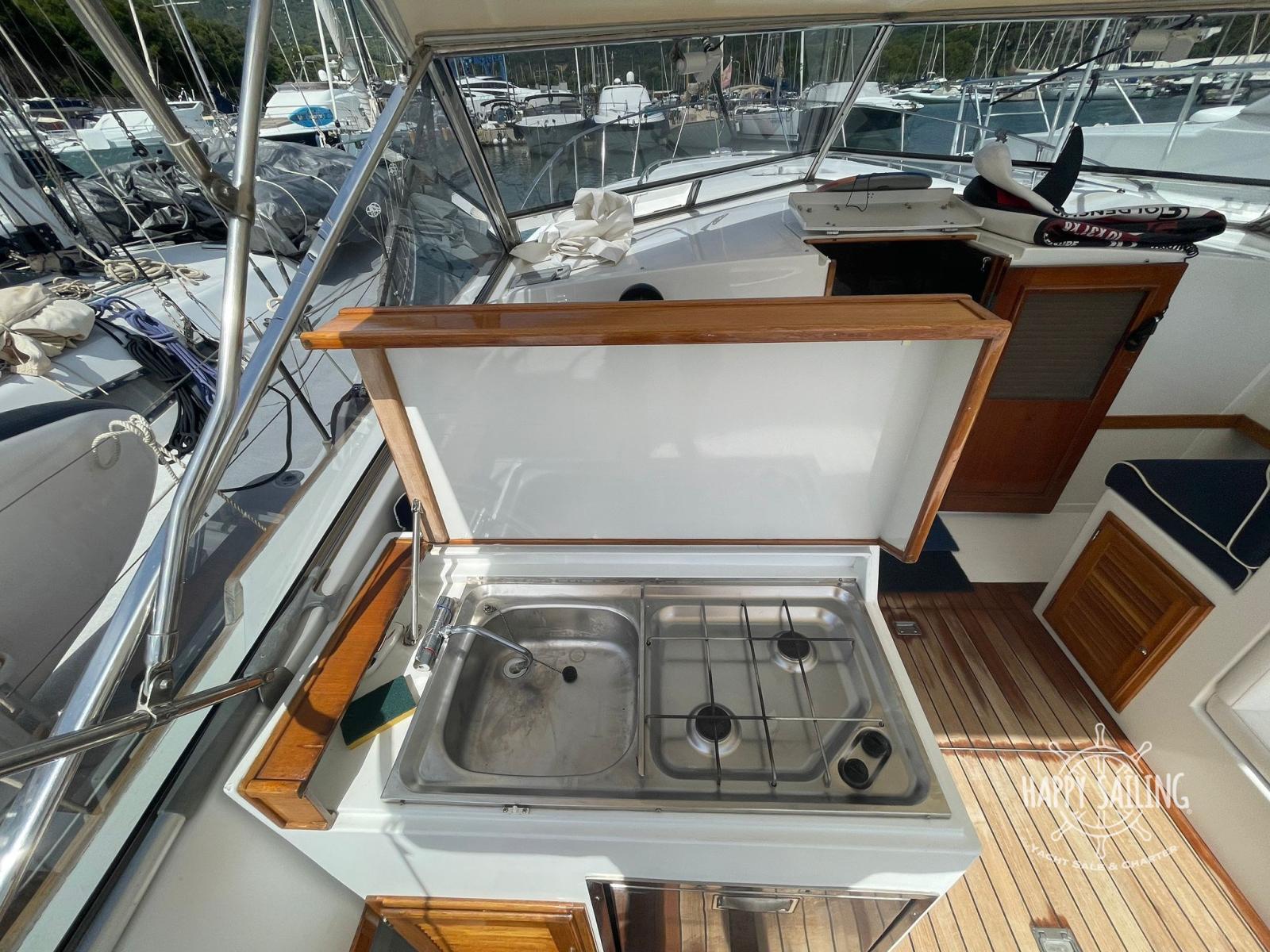 Eau sous pression, 4 Batteries, Douche de cockpit, Prise de quai, Guindeau électrique, Echelle de bain.