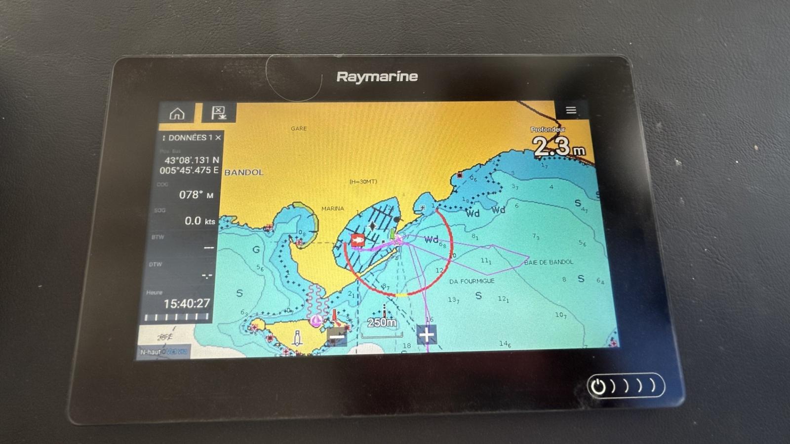 Bateau ayant été peu utilisé. Toiles de tour, bain de soleil avant, coussins de cockpit, très très belle plage arrière.