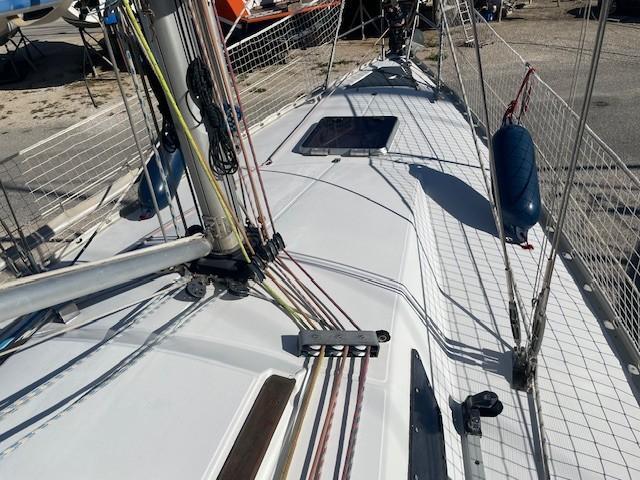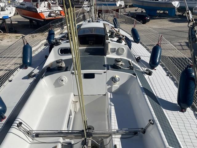SELECTION 37 est une construction des chantiers JEANNEAU sur plans Joubert/Nivelt, inspiré de carène ONE TONNER, très rapide sur l’eau et très exigeant. Sur le pont on peut remarquer la double descente qui permet de profiter d’une plus grande surface de travail en course. L’accastillage est très complet, le cockpit est bien dessiné avec ses larges hiloires inclinées. A l’intérieur VERSION « ROYALE TFV » avec ses 2 cabines (7 couchages), salle d’eau, cuisine, table à cartes.. Voilier bien entretenu, pont et cockpit repeint en 2024. A visiter à PORT MARITIMA – MARTIGUES.