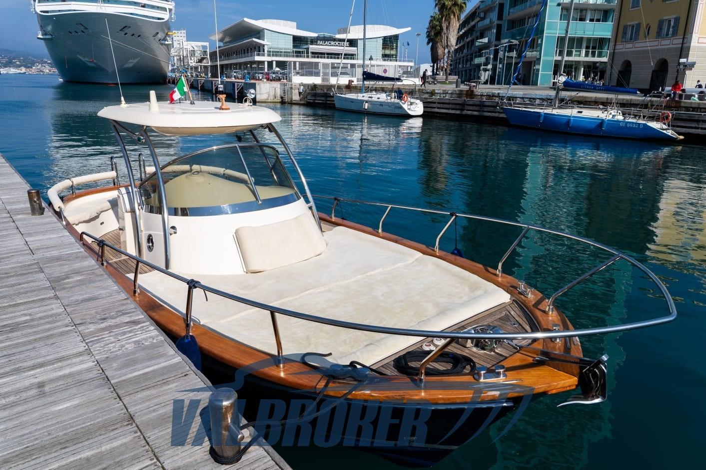 Eau sous pression, Lavabo dans le cockpit, Éclairage de courtoisie, Plateforme arrière (teak), Cockpit en teck, Rollbar, Guindeau électrique, Echelle de bain.