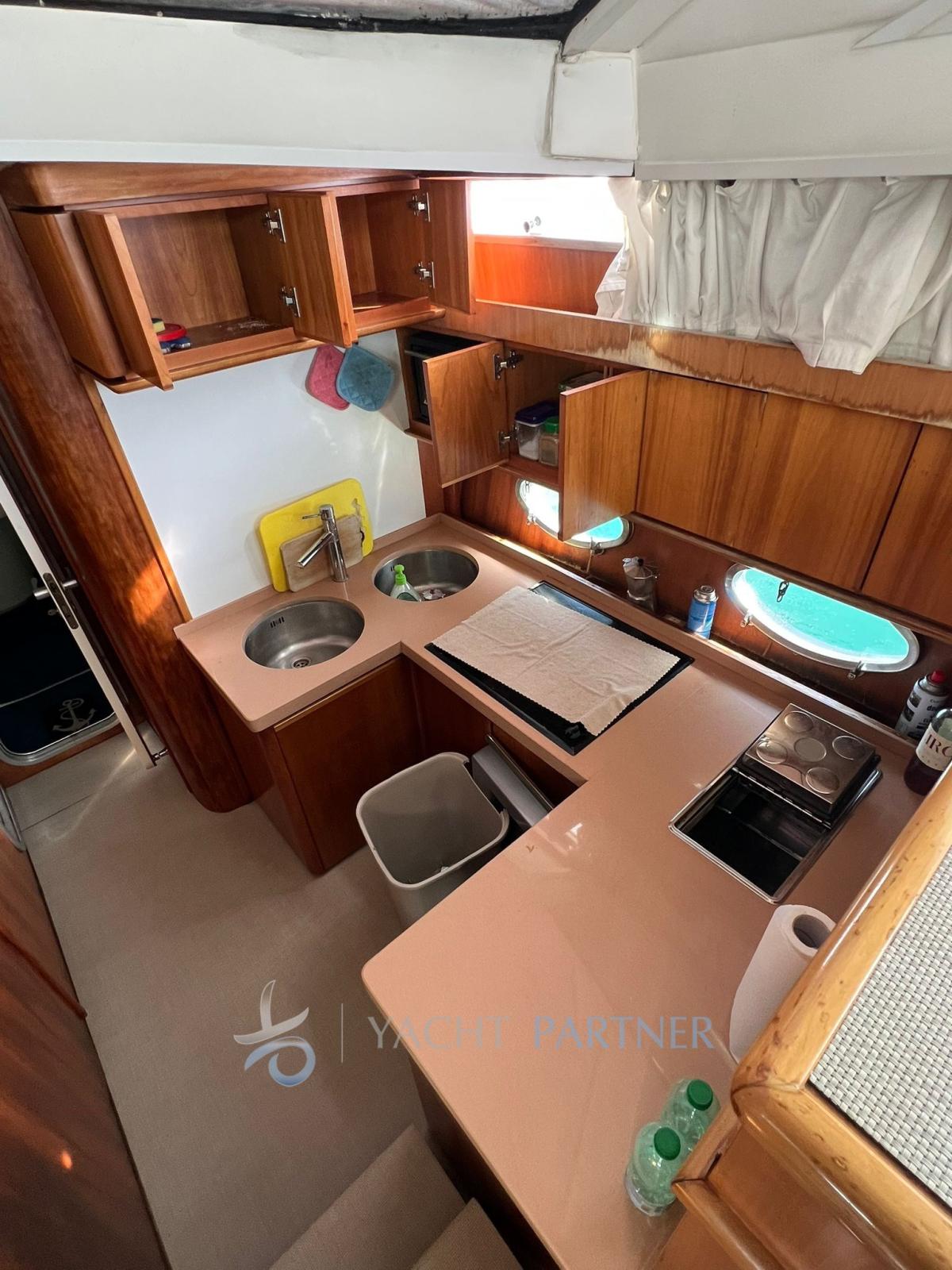 Alarme moteur, Alarme de pompe de cale, Alternateur, Eau sous pression, Passavant en teck, Douche de cockpit, Flaps électriques, Éclairage de courtoisie, Défenses, Pompe de cale manuelle, Pont en teck, Prise de quai, Guindeau électrique, Echelle de bain, table de cockpit.