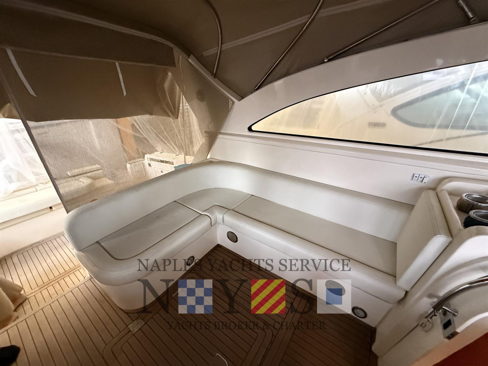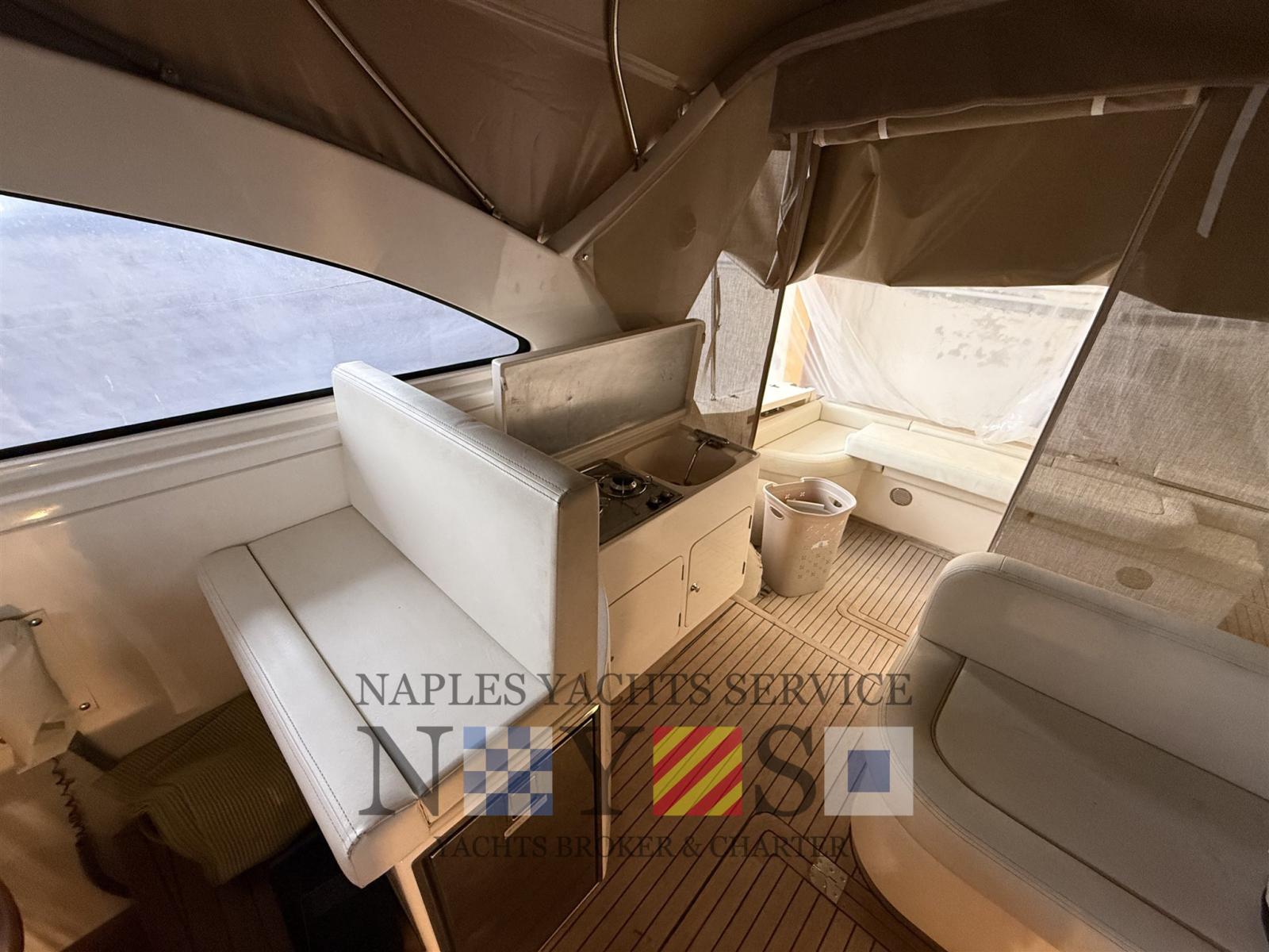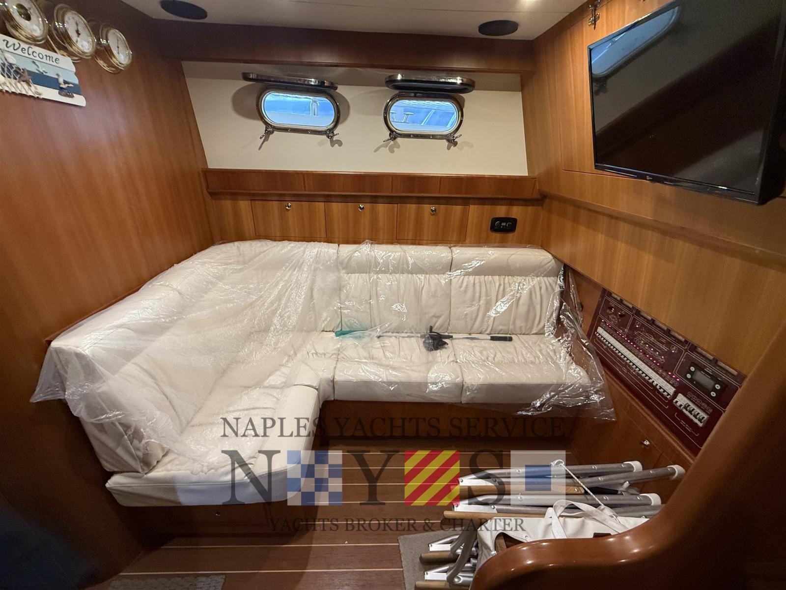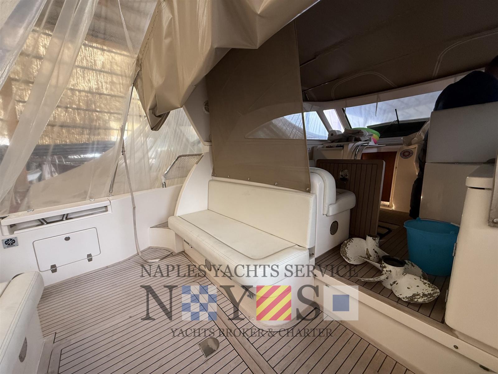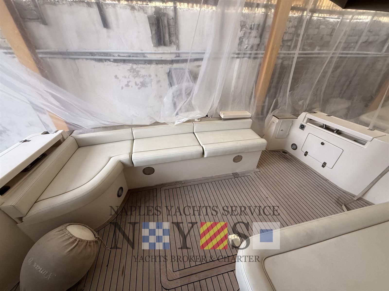 Alarme moteur, 2 Eau sous pression, 4 Batteries, Douche de cockpit, Flaps hydrauliques, 5 Éclairage de courtoisie, Passerelle, Plateforme arrière, Pont en teck, Porte latérale, Prise de quai, Onduleur, Guindeau électrique.