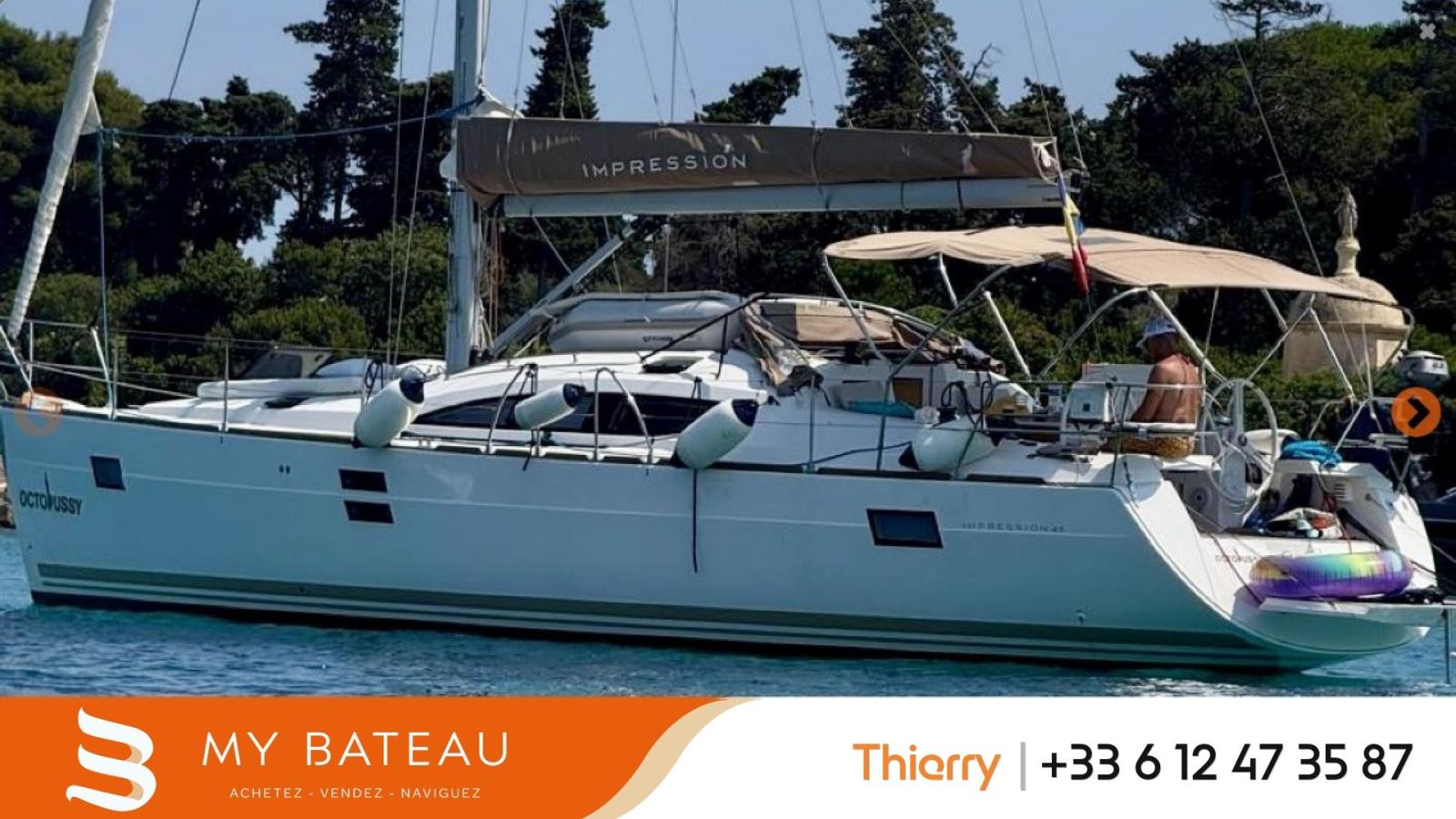 ELAN YACHT Impression 45, Version Deck Saloon, panneaux solaires, électronique complète et performante signée B&G, incluant pilote automatique. Propulseur d’étrave, construction slovène réputée pour ses voiliers performants et lumineux. Disposition intérieure : 4 cabines et 2 salles de bains. REPRISE, FINANCEMENT ET PLACE DE PORT POSSIBLES ! Contact Thierry 06.12.47.35.87.