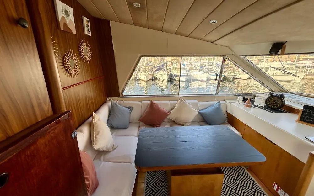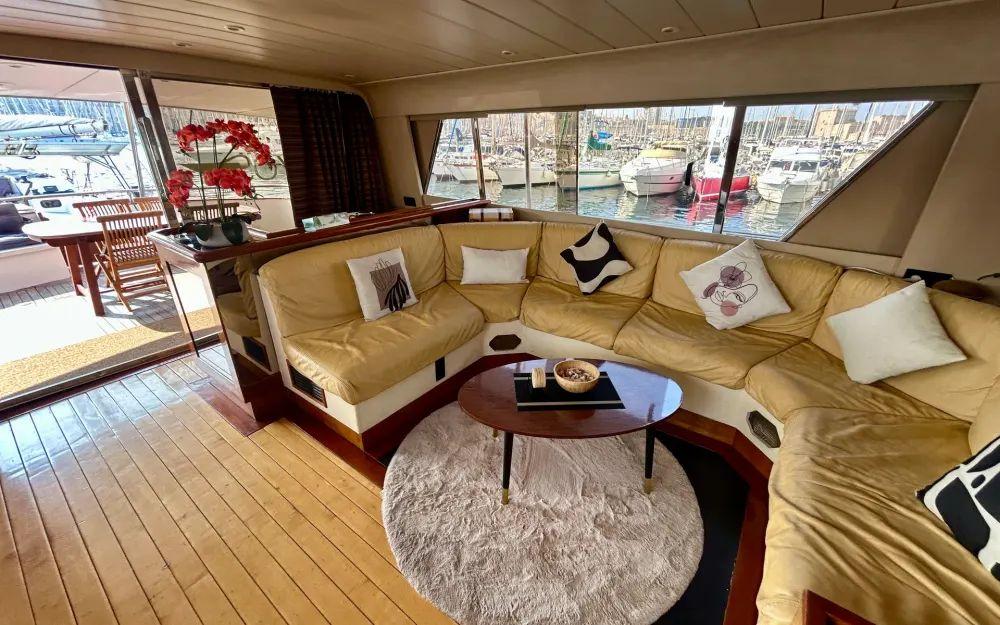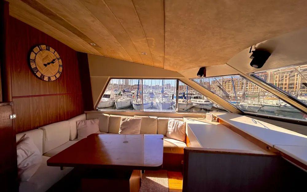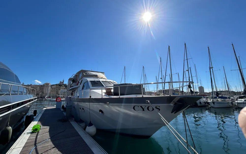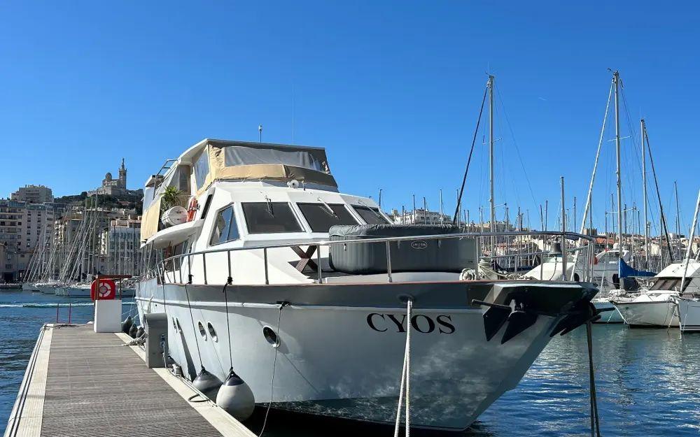 Son allure racée dissimule une structure solide et une motorisation fiable, entretenue avec soin.Sous pavillon français, le CYOS se dresse aujourd’hui dans l’un des ports les plus emblématiques de Méditerranée : le Vieux-Port de Marseille, où chaque lever de soleil lui confère une lumière nouvelle.