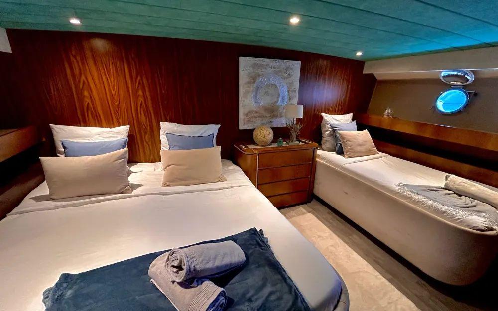 Ce yacht peut accueillir jusqu’à douze passagers en navigation et cinquante à quai, ouvrant la voie à de multiples projets : croisière privée, réception élégante, ou hébergement exclusif.Quelques travaux de modernisation sont à prévoir, mais l’essentiel est là : la structure, l’âme et la prestance d’un grand yacht classique.
