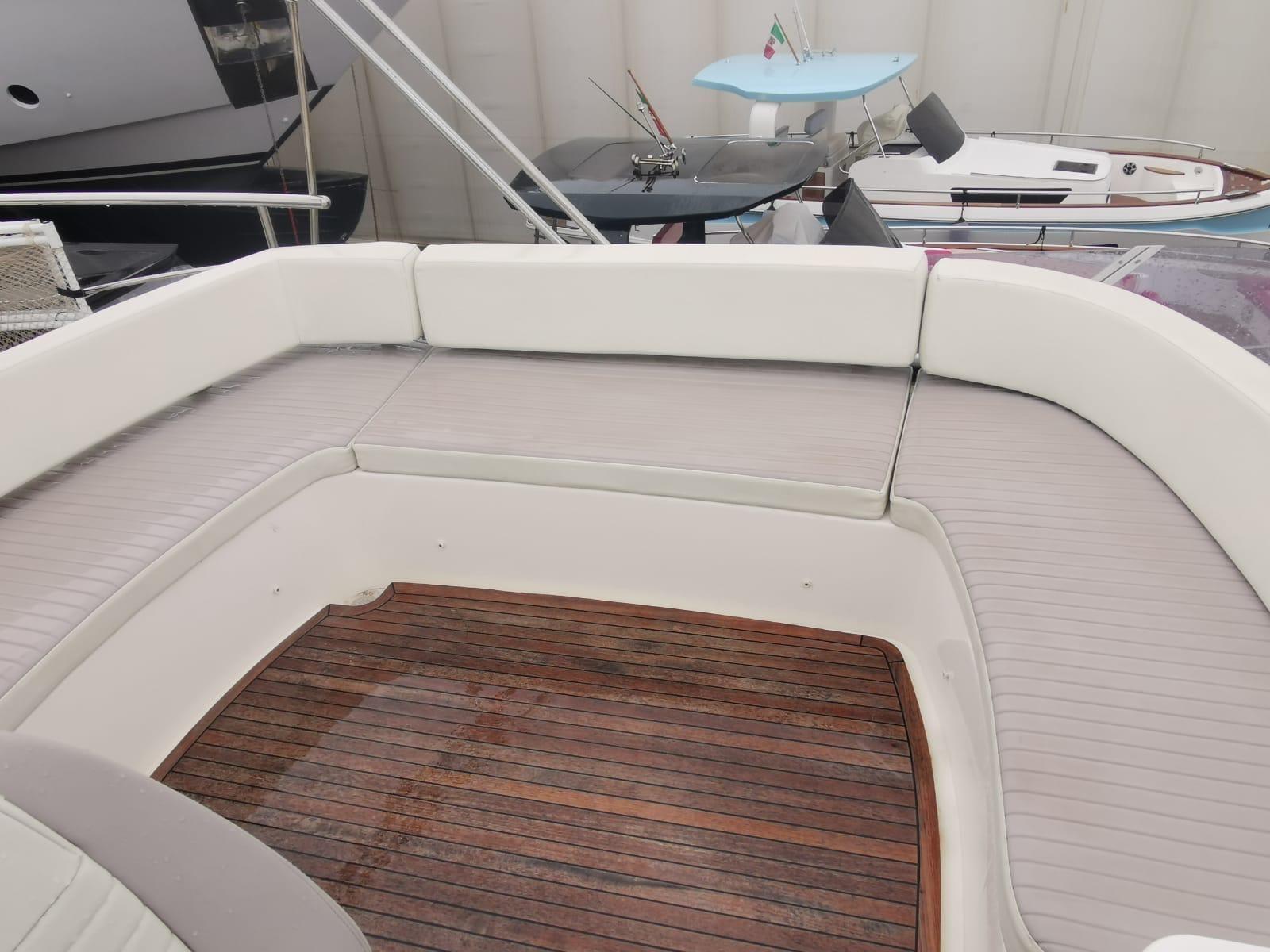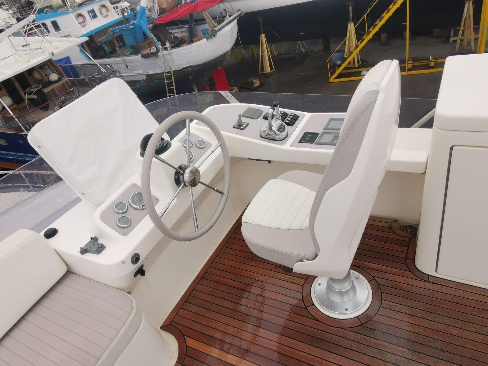 Eau sous pression, Douche de cockpit (a poppa e sul fly), Double barre à roue, Passerelle (idraulica), Cockpit en teck, Prise de quai, Connexion eau sous pression à quai, Echelle de bain, table de cockpit, Winch électrique arrière, Winch électrique avant.