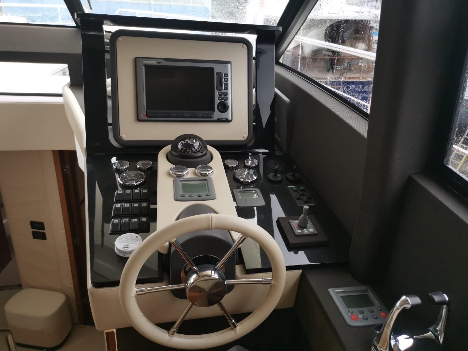 Indicateur d'angle de barre, Commande électrique, Ordinateur fixe de bord, Compteur de chaîne, Moniteur, Plotter GPS (Raymarine), Radar (80 miglia (long range)).