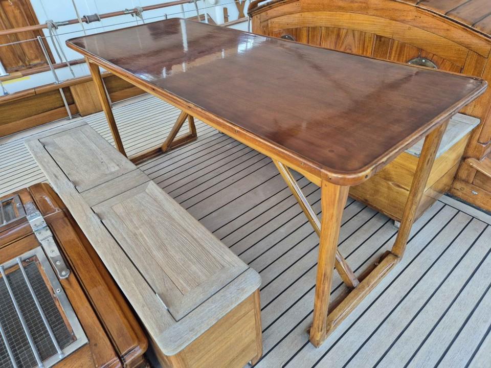 Ce voilier est une parfaite illustration du talent de Fred Shepherd, et son propriétaire actuel en témoigne avec passion — une relation qui dure depuis près d’un demi-siècle. Avec ses 24 mètres de long (soit 80 pieds), MILENA se situe dans une dimension idéale : un couple expérimenté peut la manœuvrer sans personnel dédié, ou avec un équipage réduit. Et lors des régates, son gréement bermudien en ketch permet une navigation efficace sans nécessiter une équipe nombreuse.