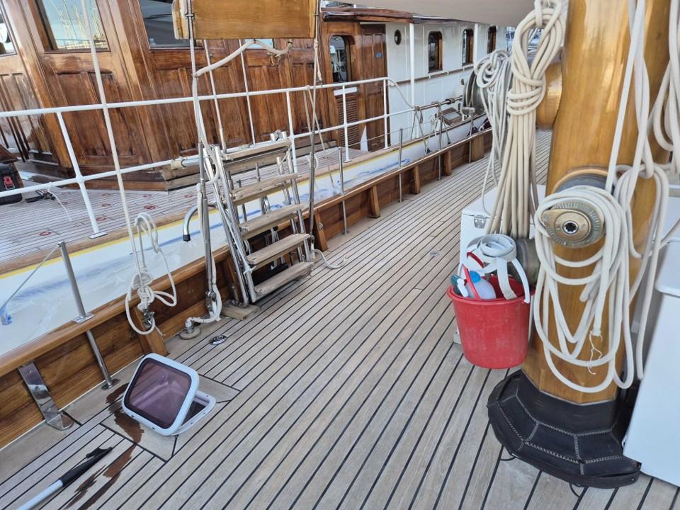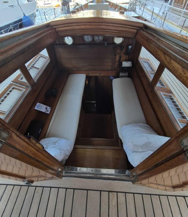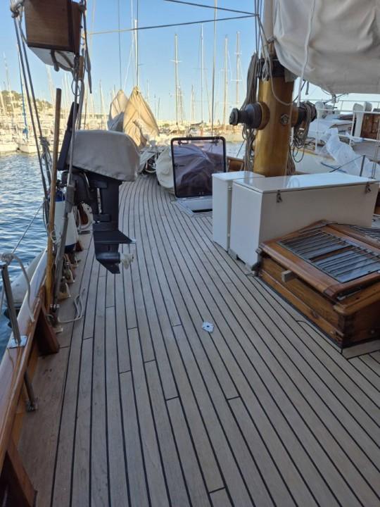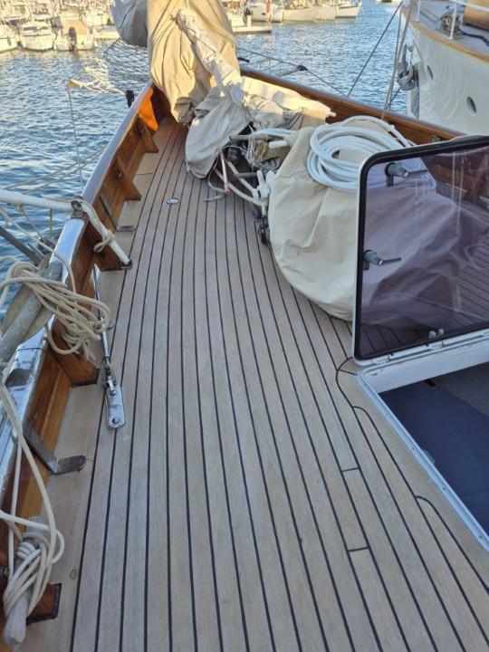 MILENA incarne l’essence même du yacht classique idéal. Elle se distingue par son allure noble et son histoire remarquable. Élégante sans être fragile, robuste sans sacrifier la finesse, elle offre une habitabilité généreuse pour sa catégorie. Chaque élément est harmonieusement pensé : le pont est épuré, les aménagements intérieurs respirent le confort et le raffinement. Sa navigation est fluide, rapide et plaisante.