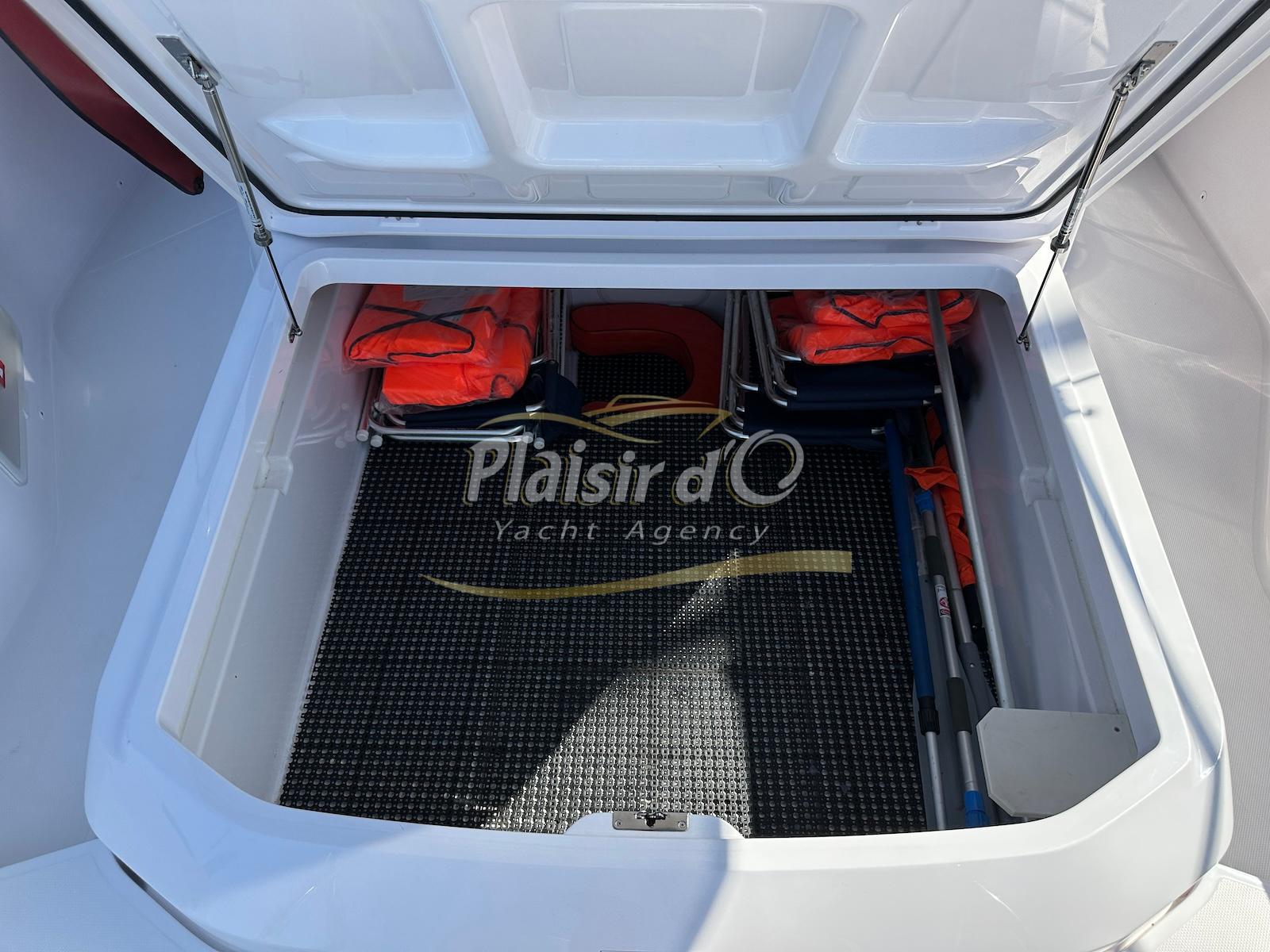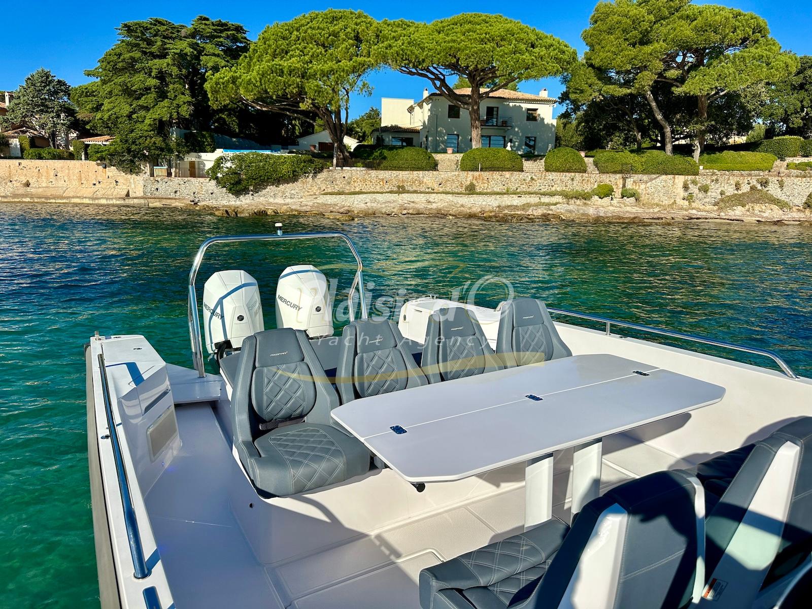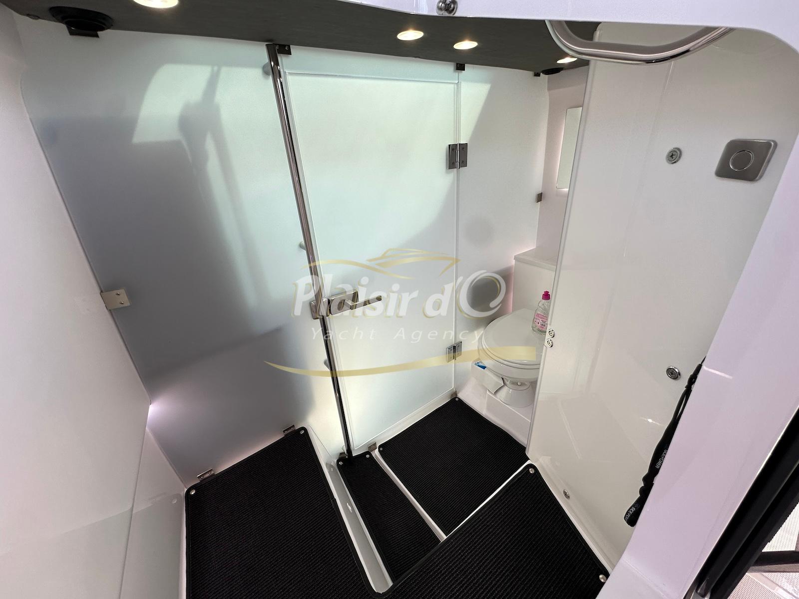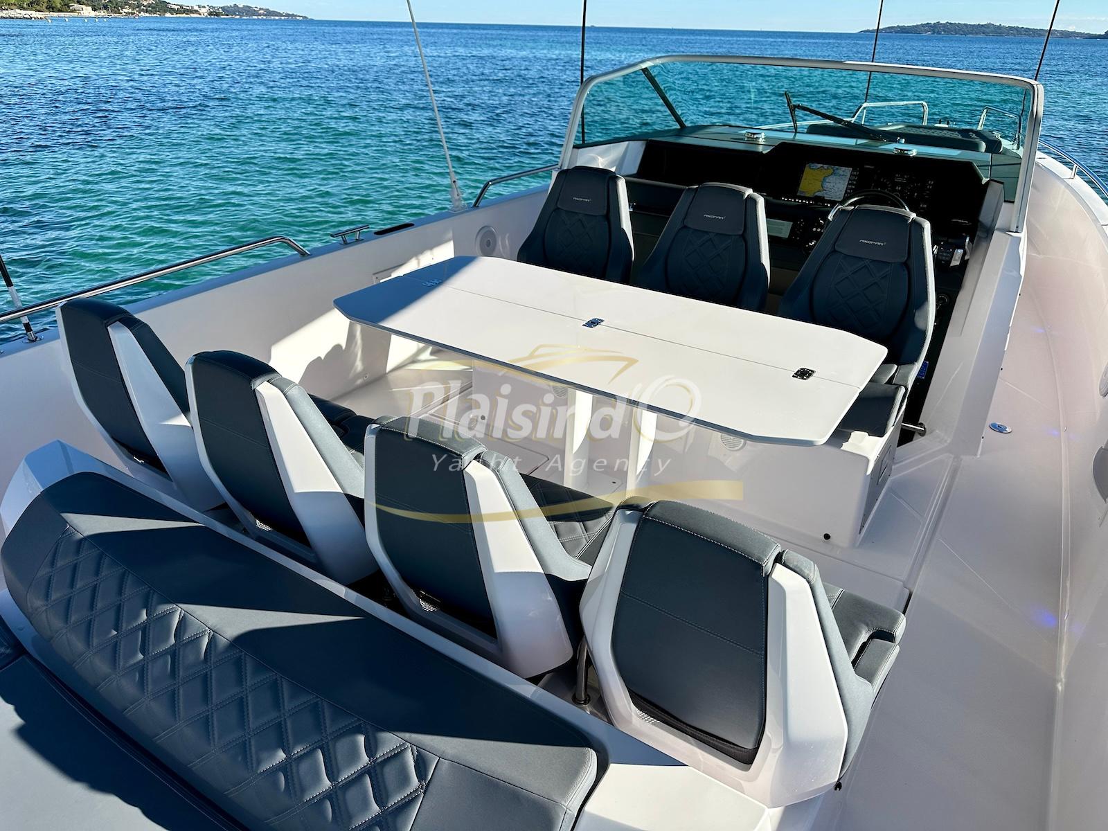 Full option : Double écran SIMARD IDS, système Fusion, VHF, Guindeau électrique avec télécommande sans fil, propulseur d'étrave avec télécommande sans fil, flaps, mat de ski, taud de soleil avec mats carbones, table de cockpit, mouillage Inox, ancre ultra Inox, WC électrique, douchette de cockpit...