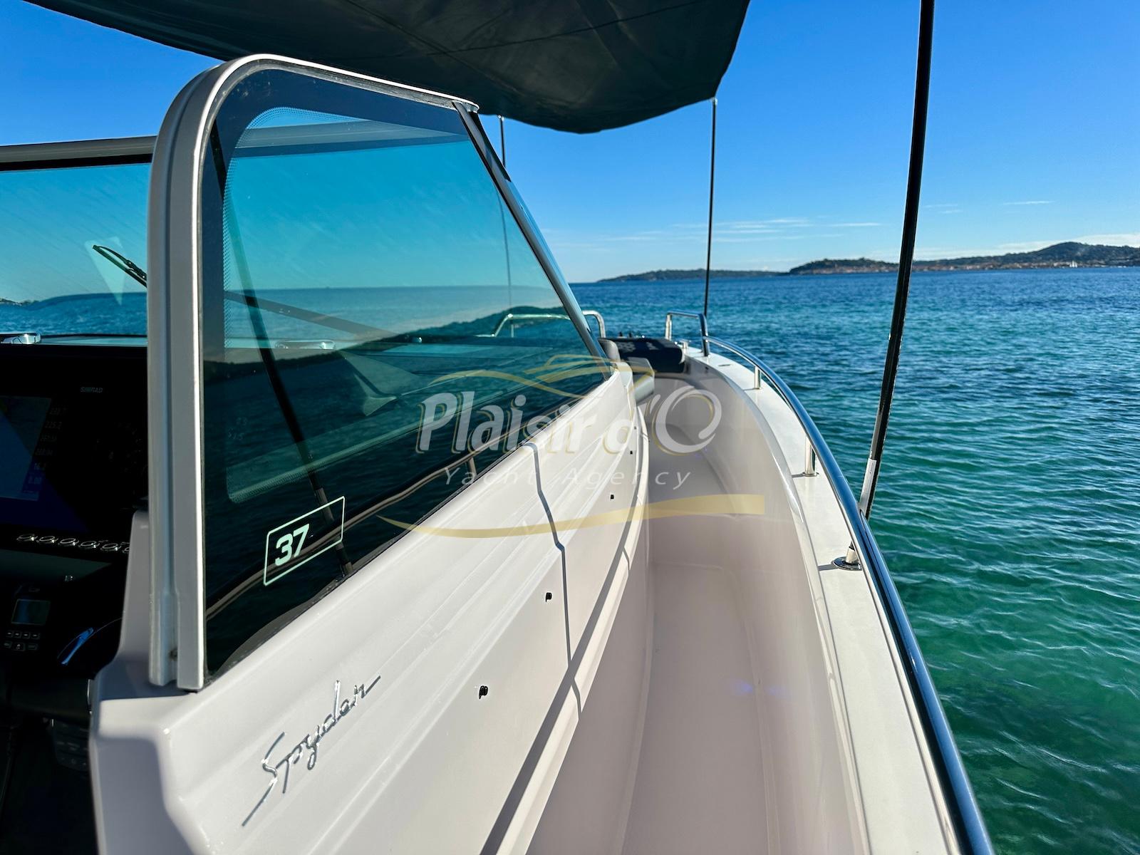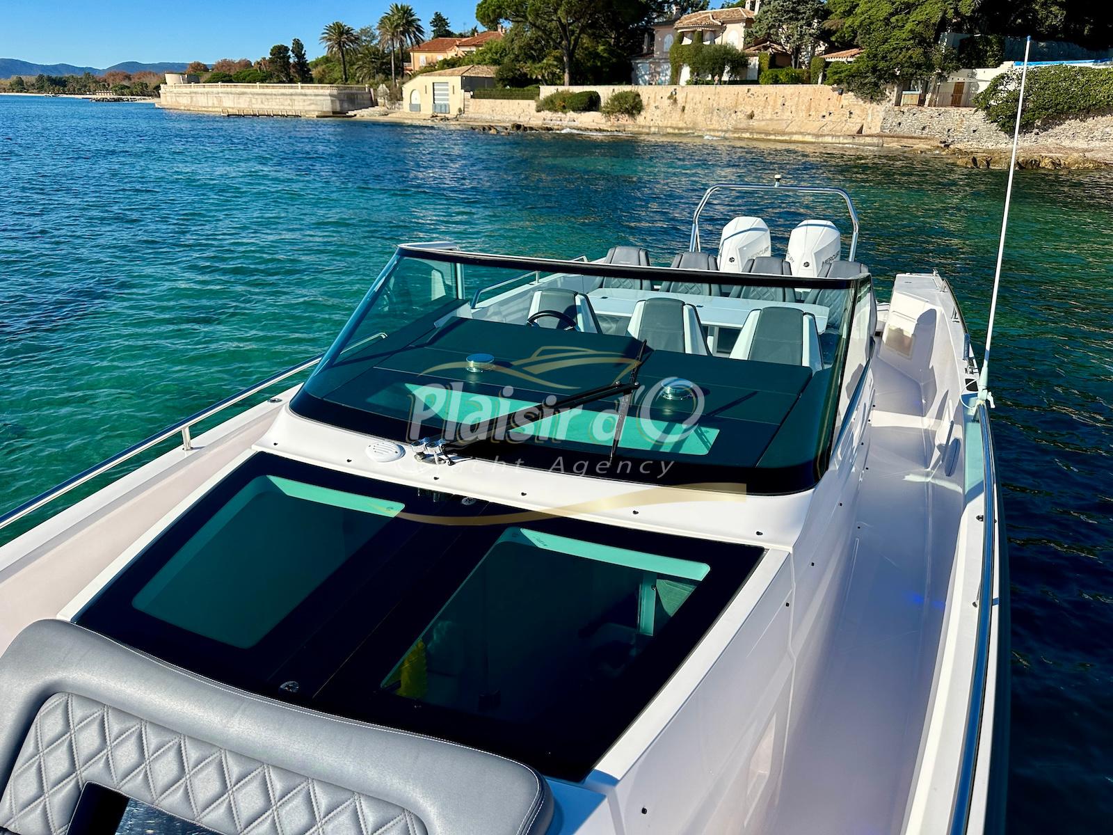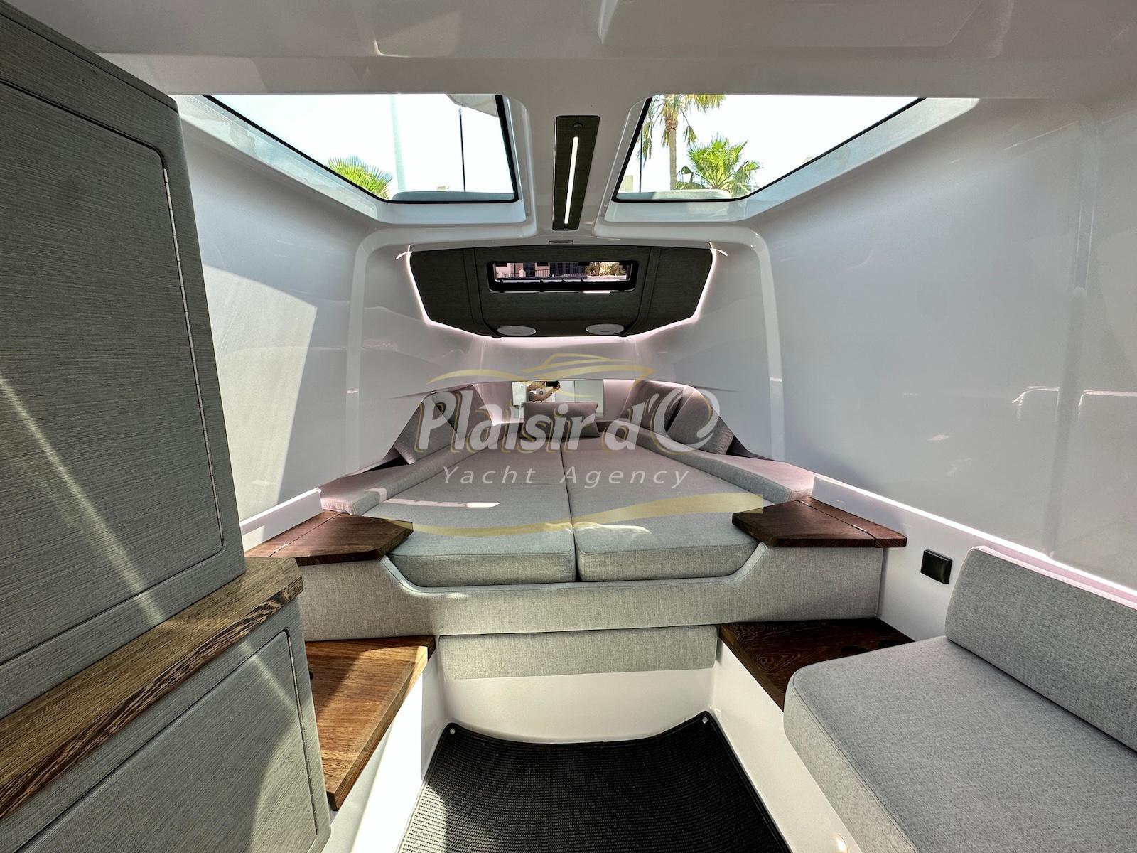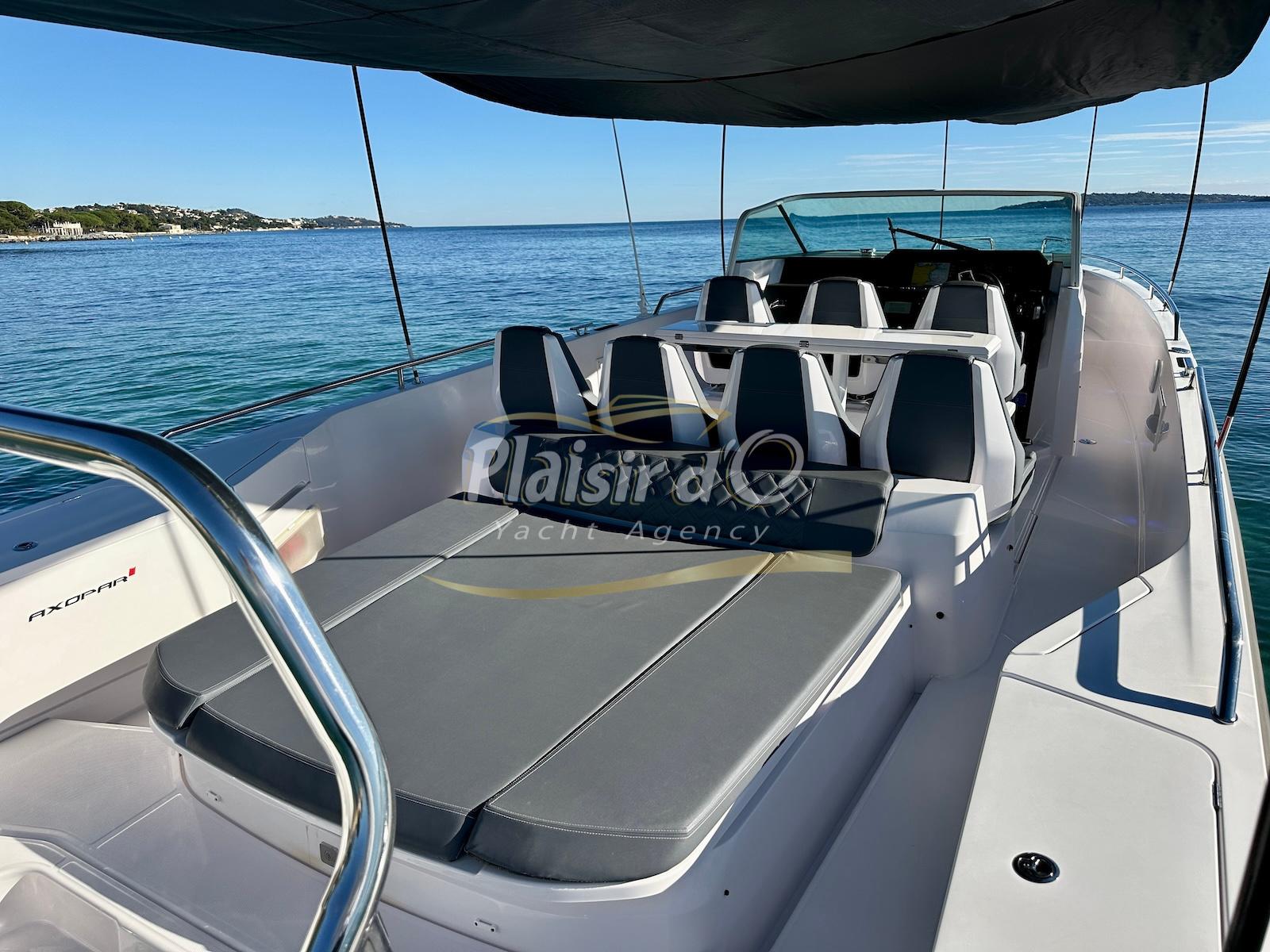 L'Axopar 37 SPYDER se caractérise par ses qualités marines et ses grands espaces de vie modulables avec une carène exceptionnelle.