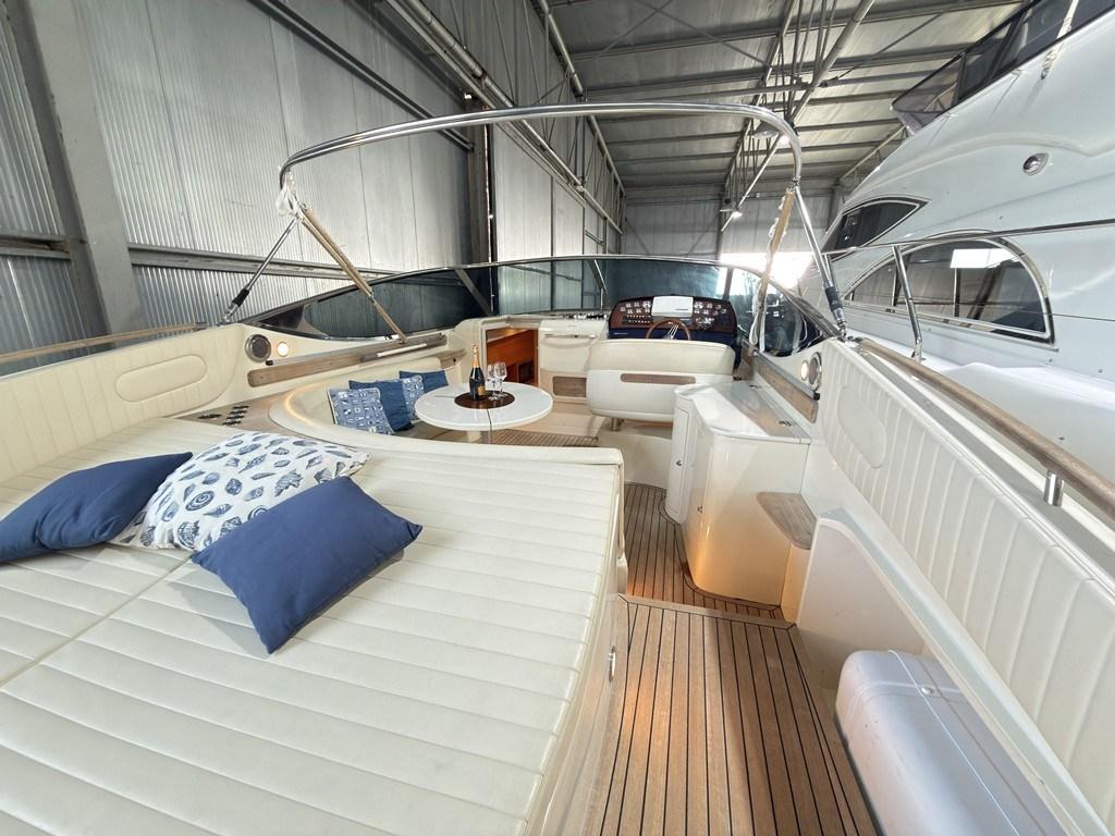 Eau sous pression, Câble d’alimentation à quai, Couleur spéciale (Fascia blu nelle fiancate), Douche de cockpit, Flaps électriques, Lavabo dans le cockpit, Éclairage de courtoisie, Passerelle (a scomparsa), Cockpit en teck, Prise de quai, Guindeau électrique.