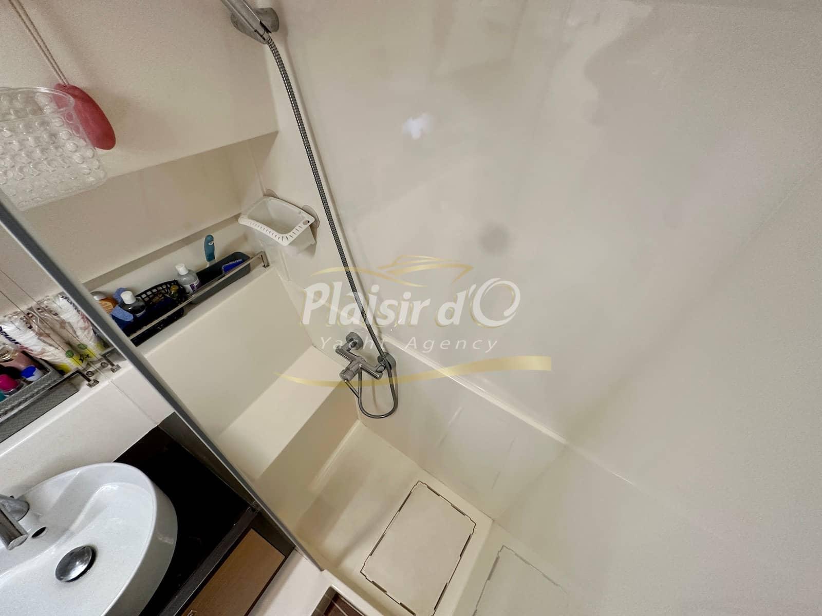 Version 2 cabines et une salle d’eau avec cabine de douche séparée.