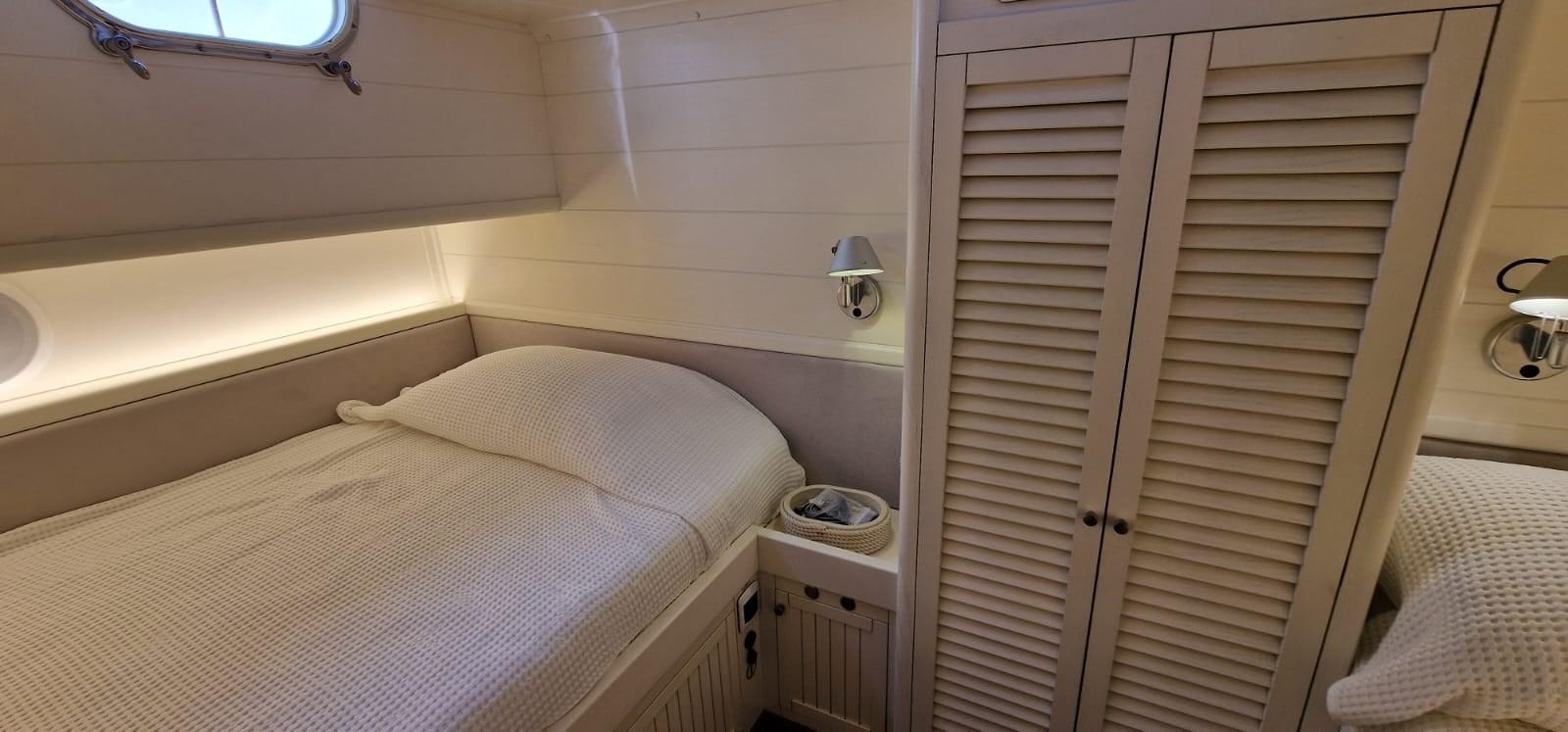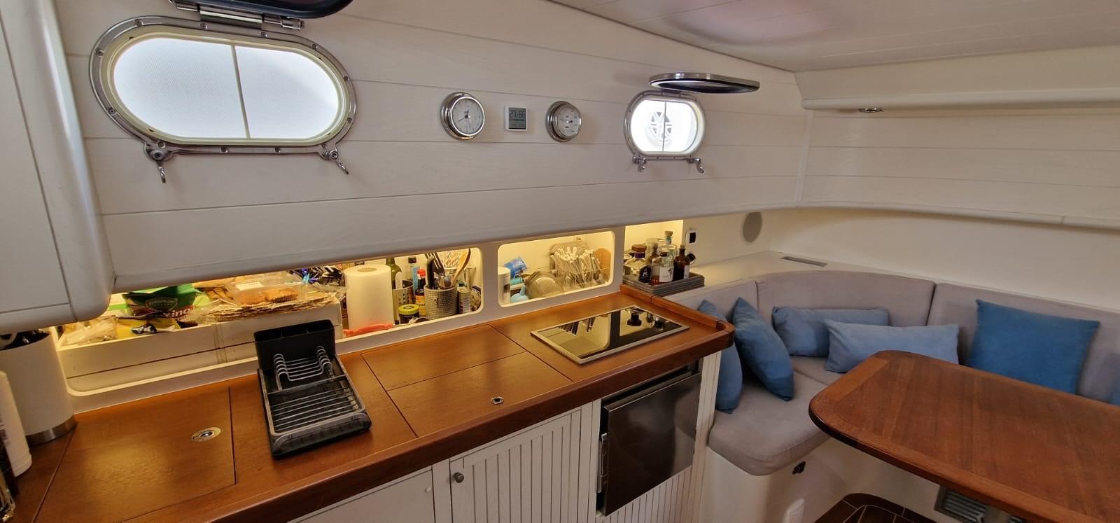 Alarme gaz, Alarme moteur, Alarme de pompe de cale, Eau sous pression, Passavant en teck, Douche de cockpit, Flaps hydrauliques, Bossoirs, Extincteur(s) fixe(s), Indicateurs de flaps, Éclairage de courtoisie, Spots sous-marins, Défenses, Passerelle, Plateforme arrière, Pompe de Vidange du Réservoir d’Eaux Usées, Pompe de cale automatique, Pont en teck, Cockpit en teck, Prise de quai, Connexion eau sous pression à quai, Guindeau électrique, Guindeau Hydraulique, Echelle de bain, table de cockpit, T-Top, Winch électrique avant.