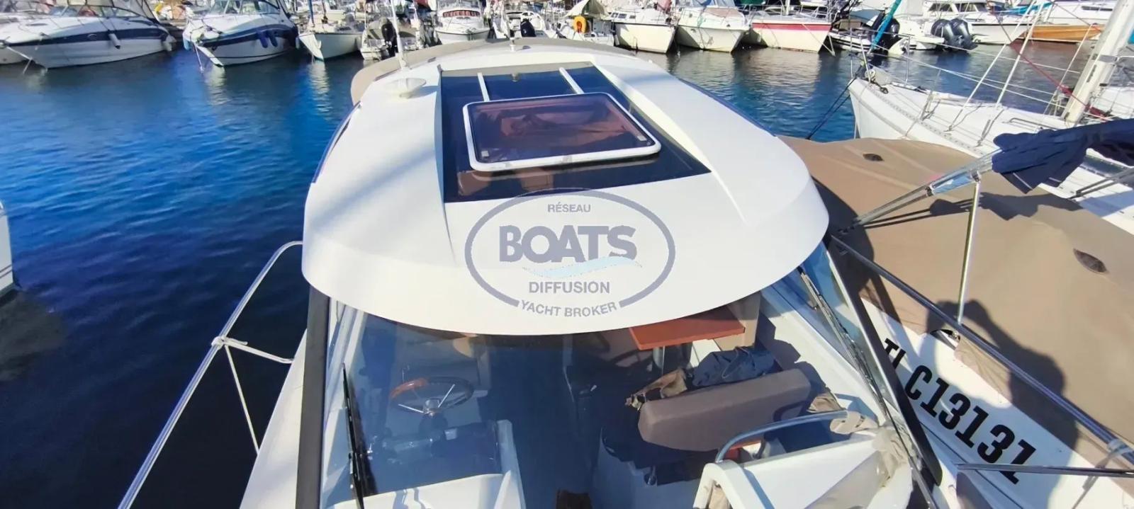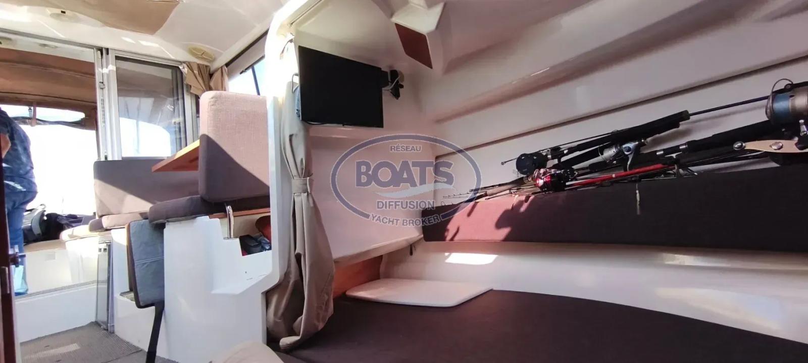 Ce Merry Fisher 755 est en excellent état , les selleries et les boiseries sont très propres . Ce bateau est polyvalent grace à ses bains de soleil pour les sorties détentes mais il saura se transformer en allié efficace pour la pêche avec son vivier et sa prise eau de mer .