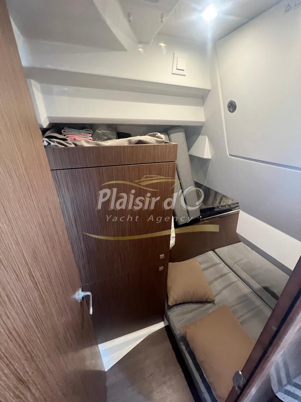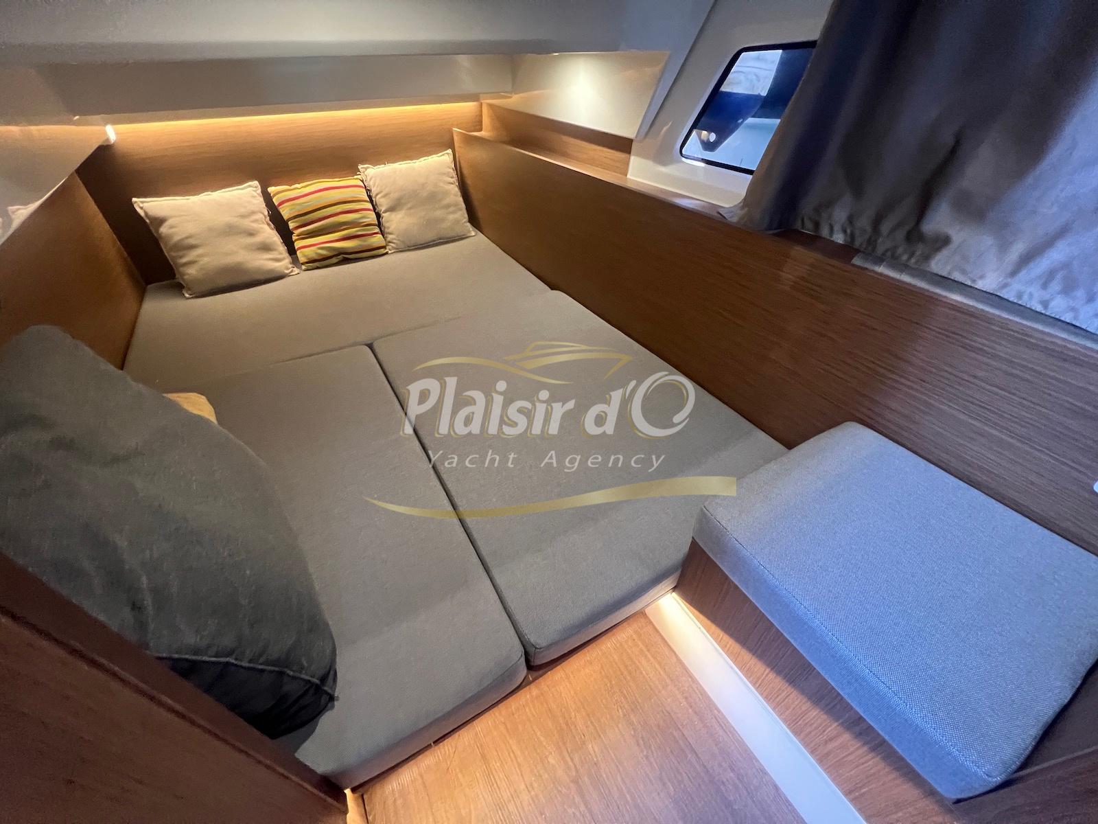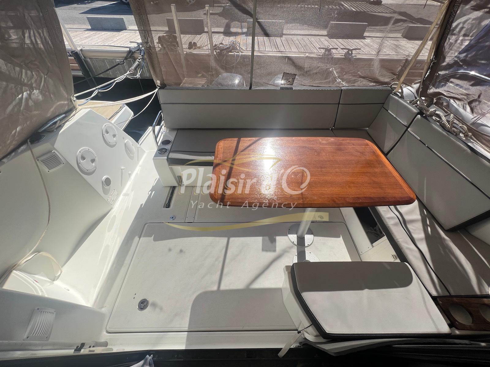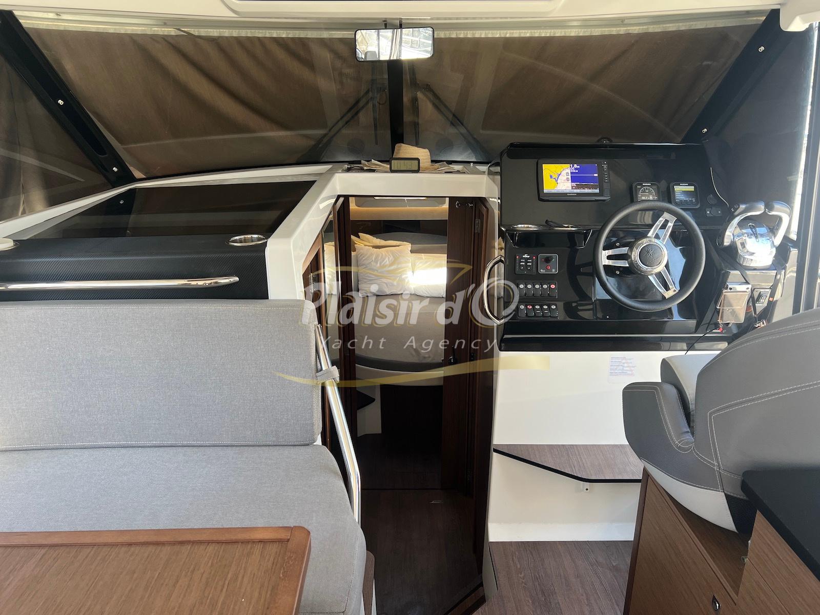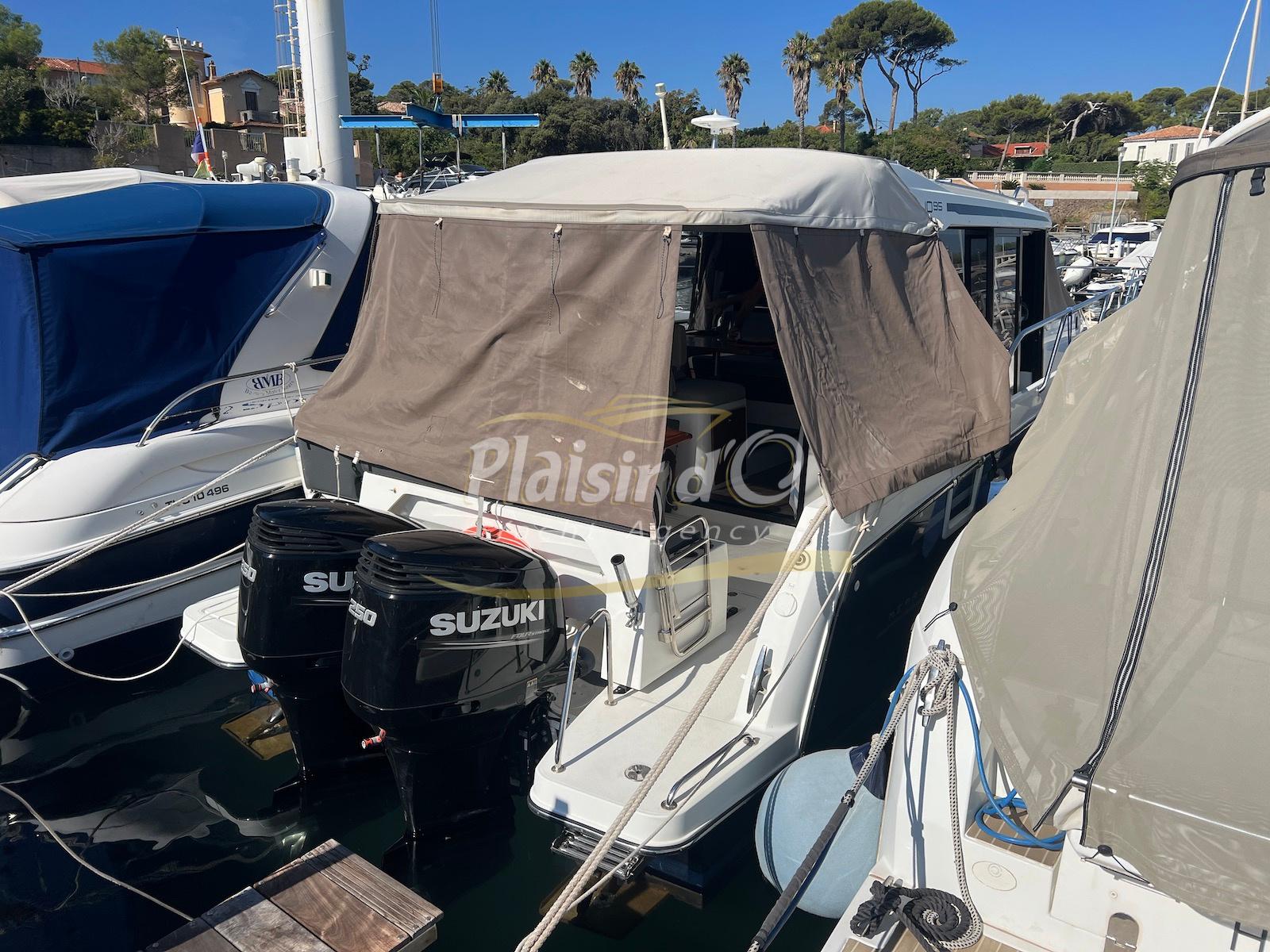 Nombreuses options : chauffage Webasto, propulseur d’étrave, flaps Lenco, taud de camping micro perforé, taud de pare brise complet, bain de soleil avant et arrière…