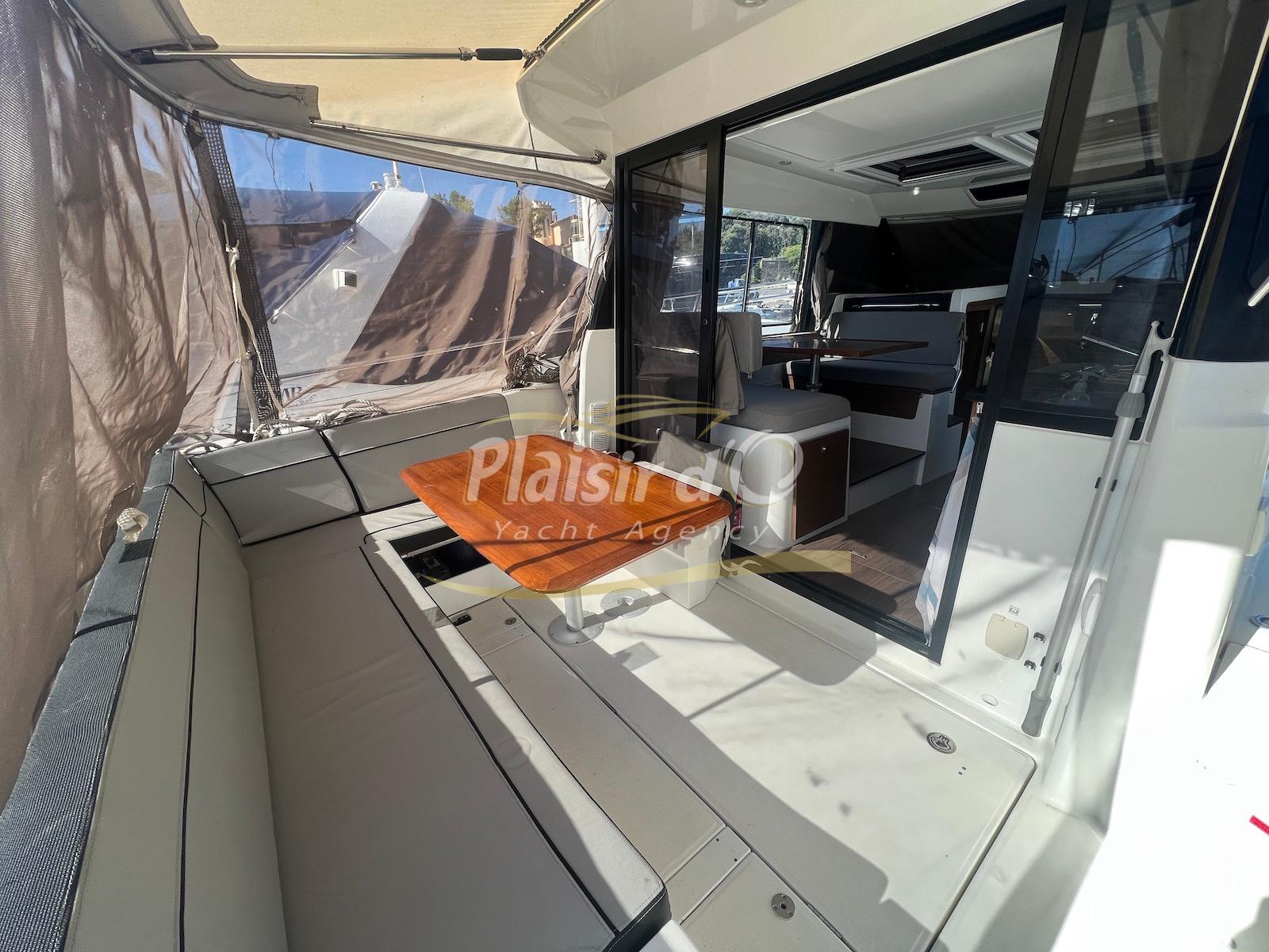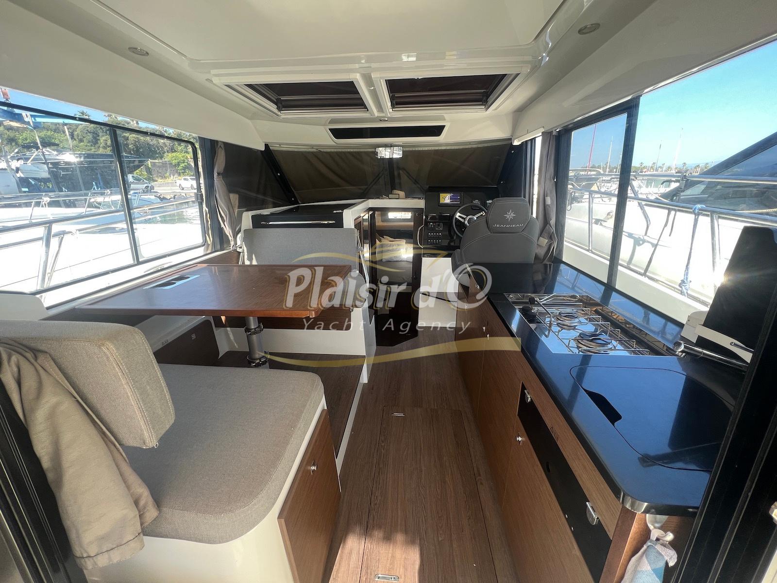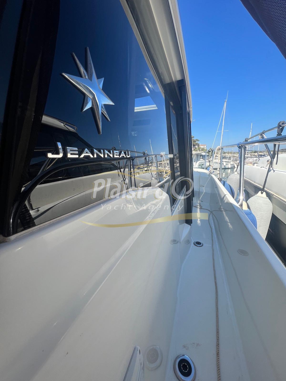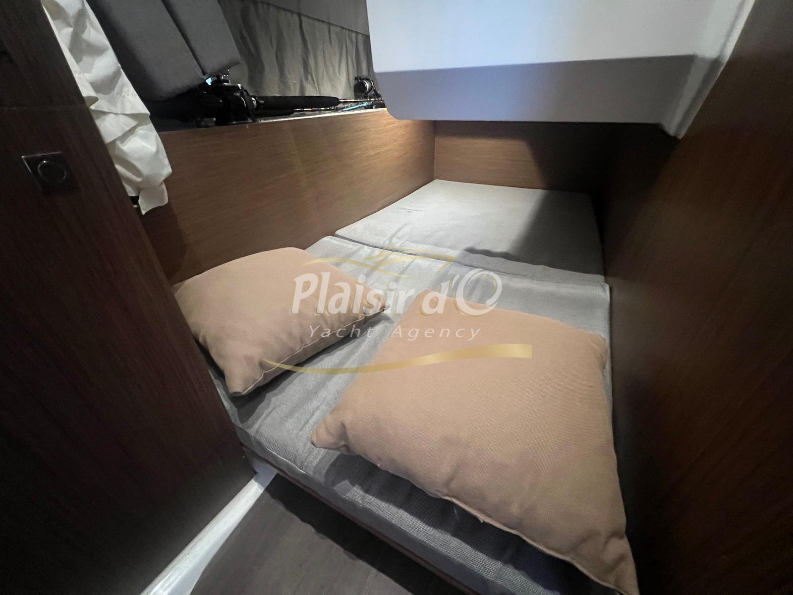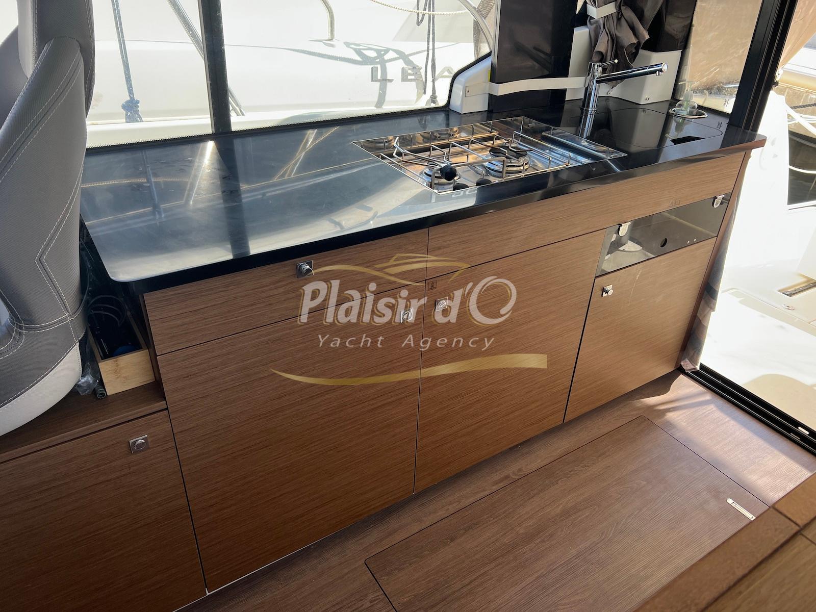 Nombreuses options : chauffage Webasto, propulseur d’étrave, flaps Lenco, taud de camping micro perforé, taud de pare brise complet, bain de soleil avant et arrière…