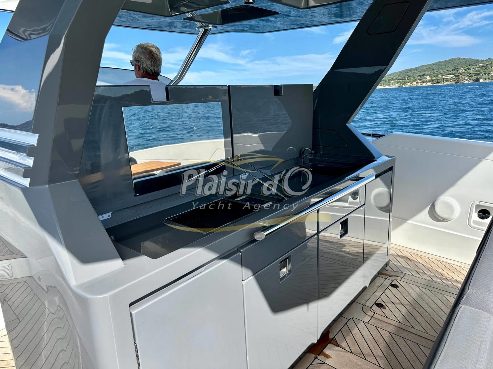 Full options : cockpit teck véritable, table de cockpit teck, plateforme hydraulique immangeable, climatisation, générateur, inverter, pilote automatique, GPS/sondeur Garmin, système hifi Fusion Upgrad avec 2 amplificateurs et 8 hps + sub, compteur de chaine, guindeau électrique, 3 réfrigérateurs, ice Maker, micro onde, grill, extensions de T-TOP avec mats en carbone …
